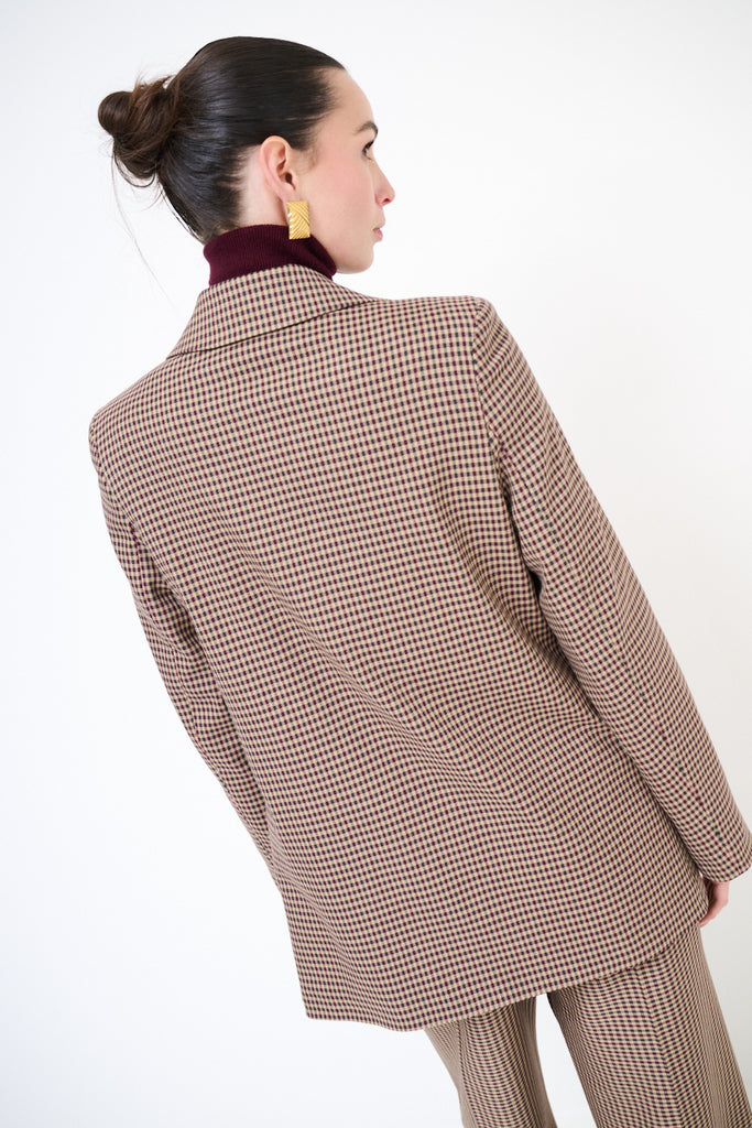 - A silhueta oversized oferece um visual descontraído, mas estruturado