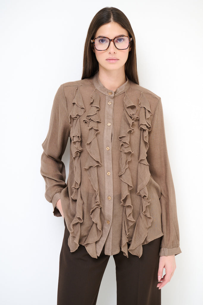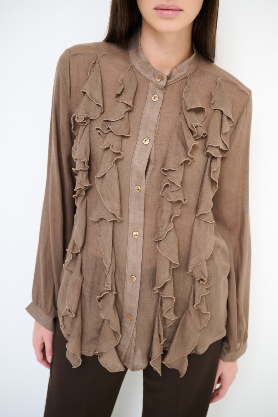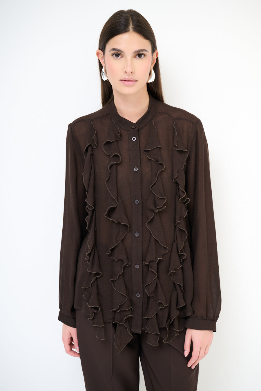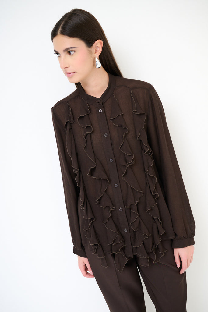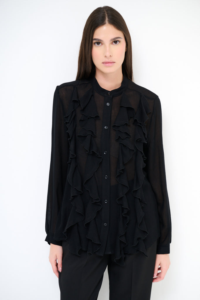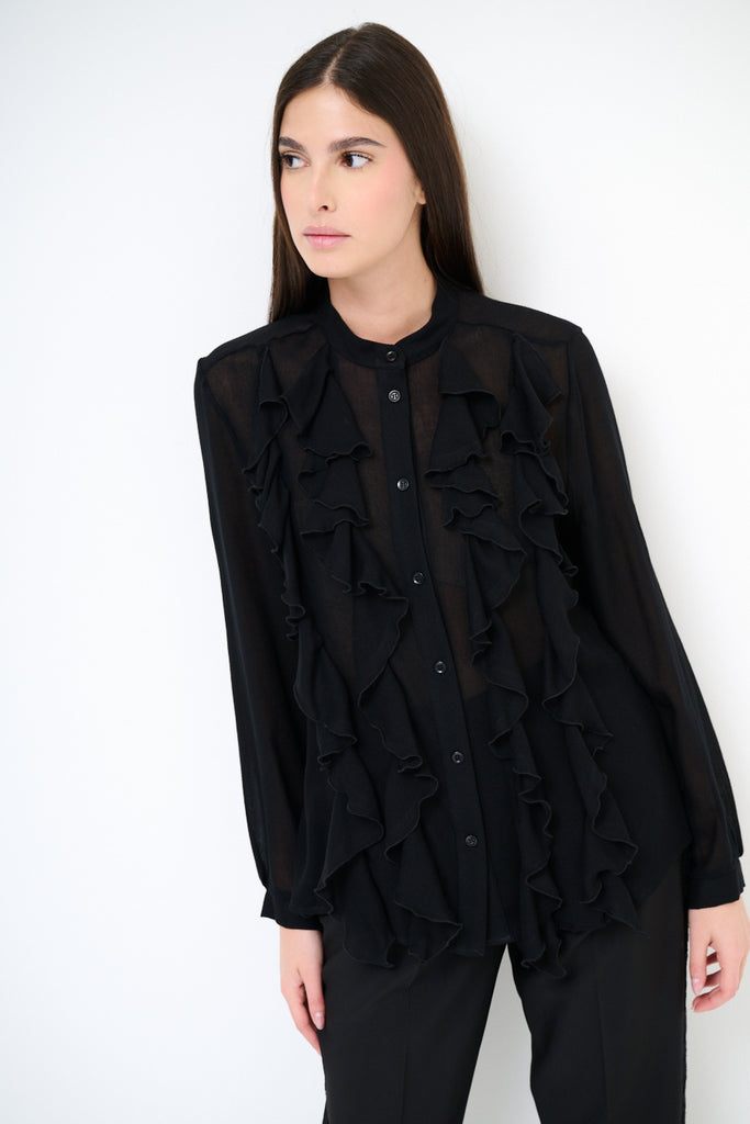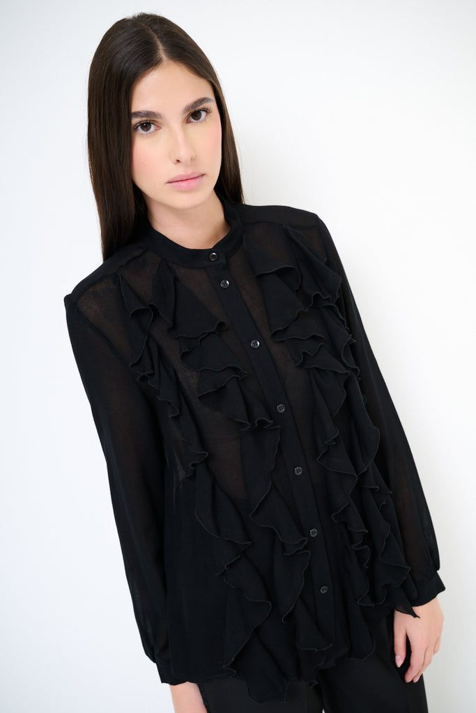- Mangas compridas com detalhes em renda acrescentando sofisticação e textura