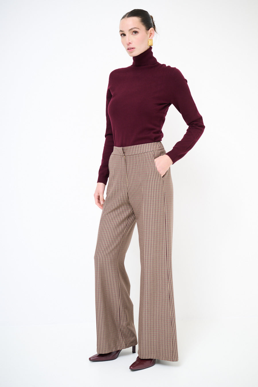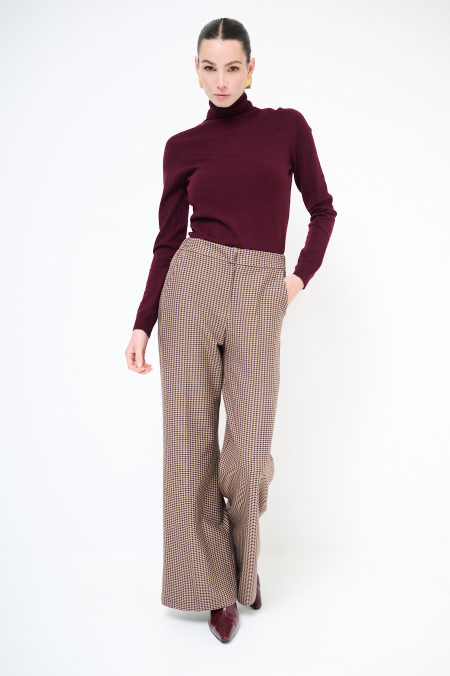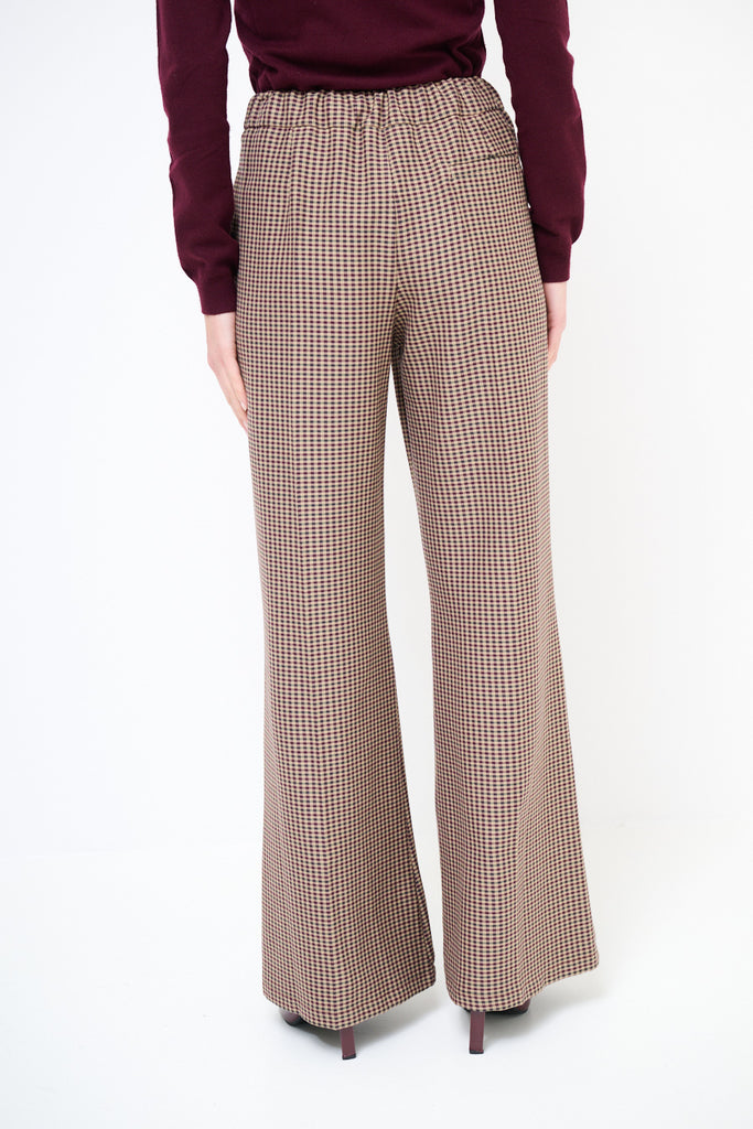 Calças de alfaiataria xadrez de cintura alta e pernas largas no atacado