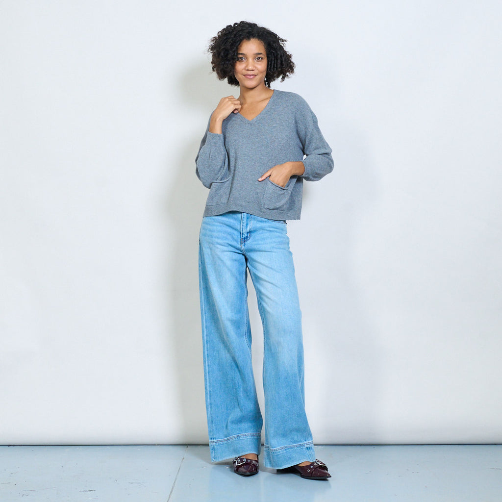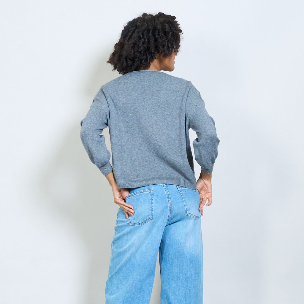 - Mangas compridas com punhos com nervuras para um acabamento elegante