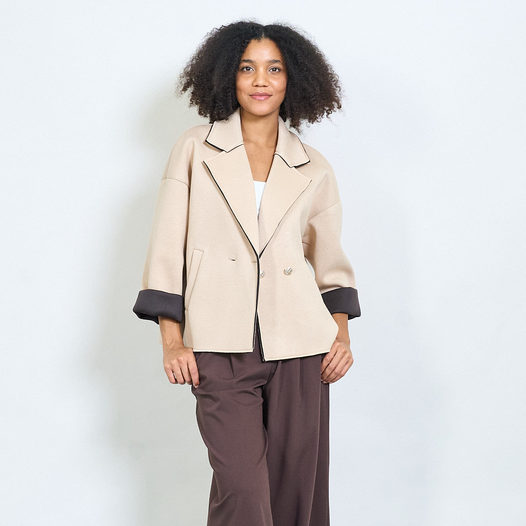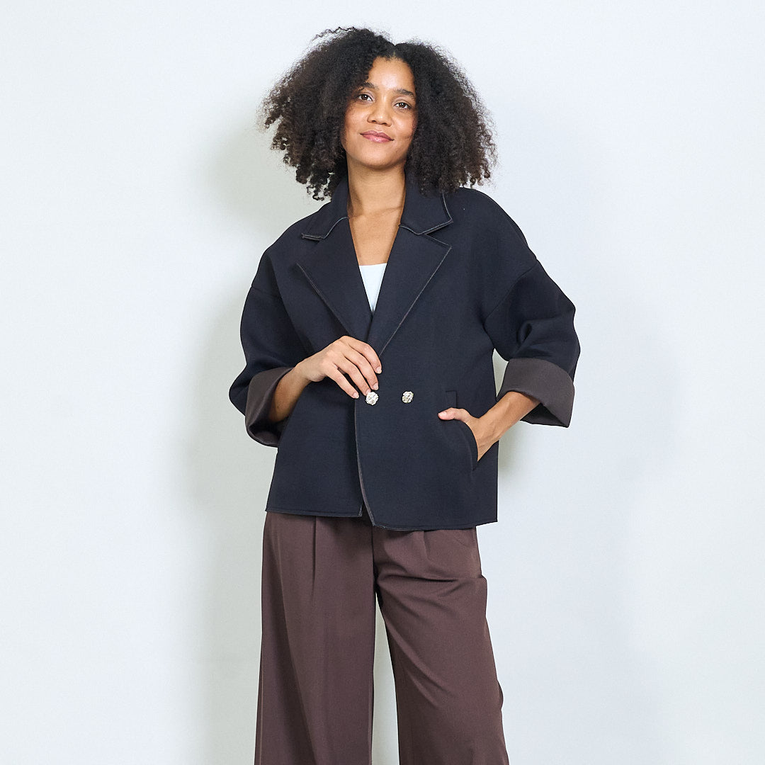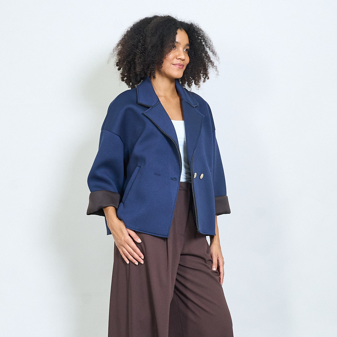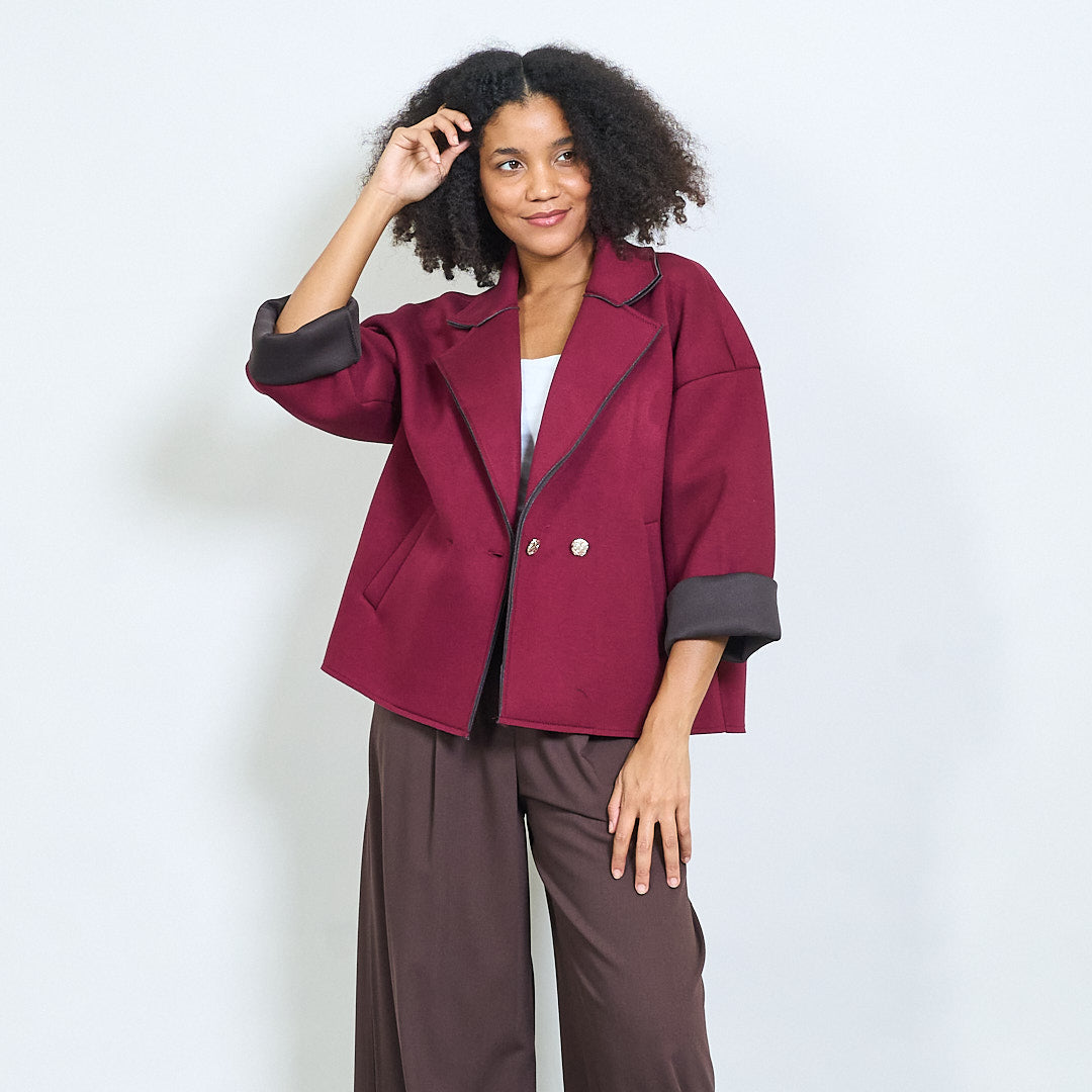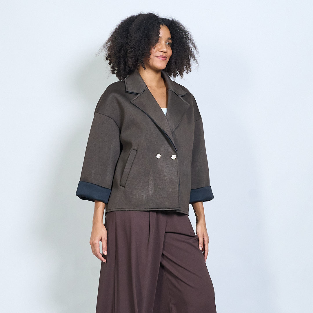 Casaco curto de peito duplo quadrado atacado