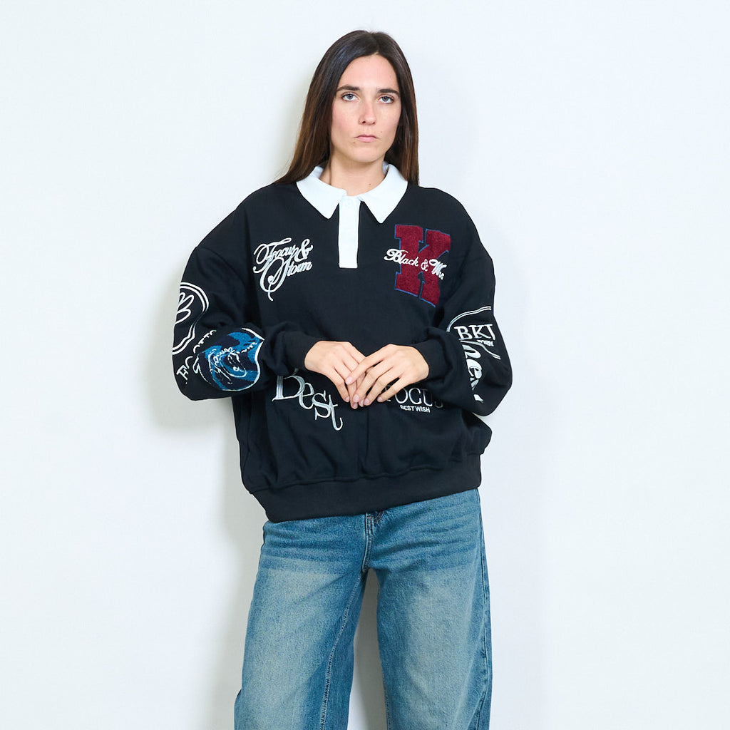 - Ajuste de grandes dimensões com ombros caídos para uma silhueta descontraída