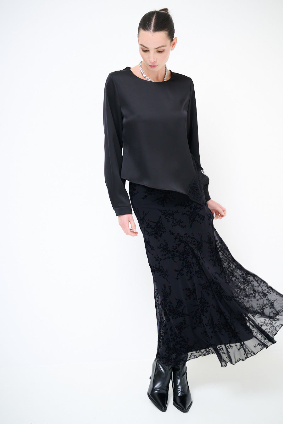 • O design fluido de comprimento midi oferece movimentos graciosos a cada passo