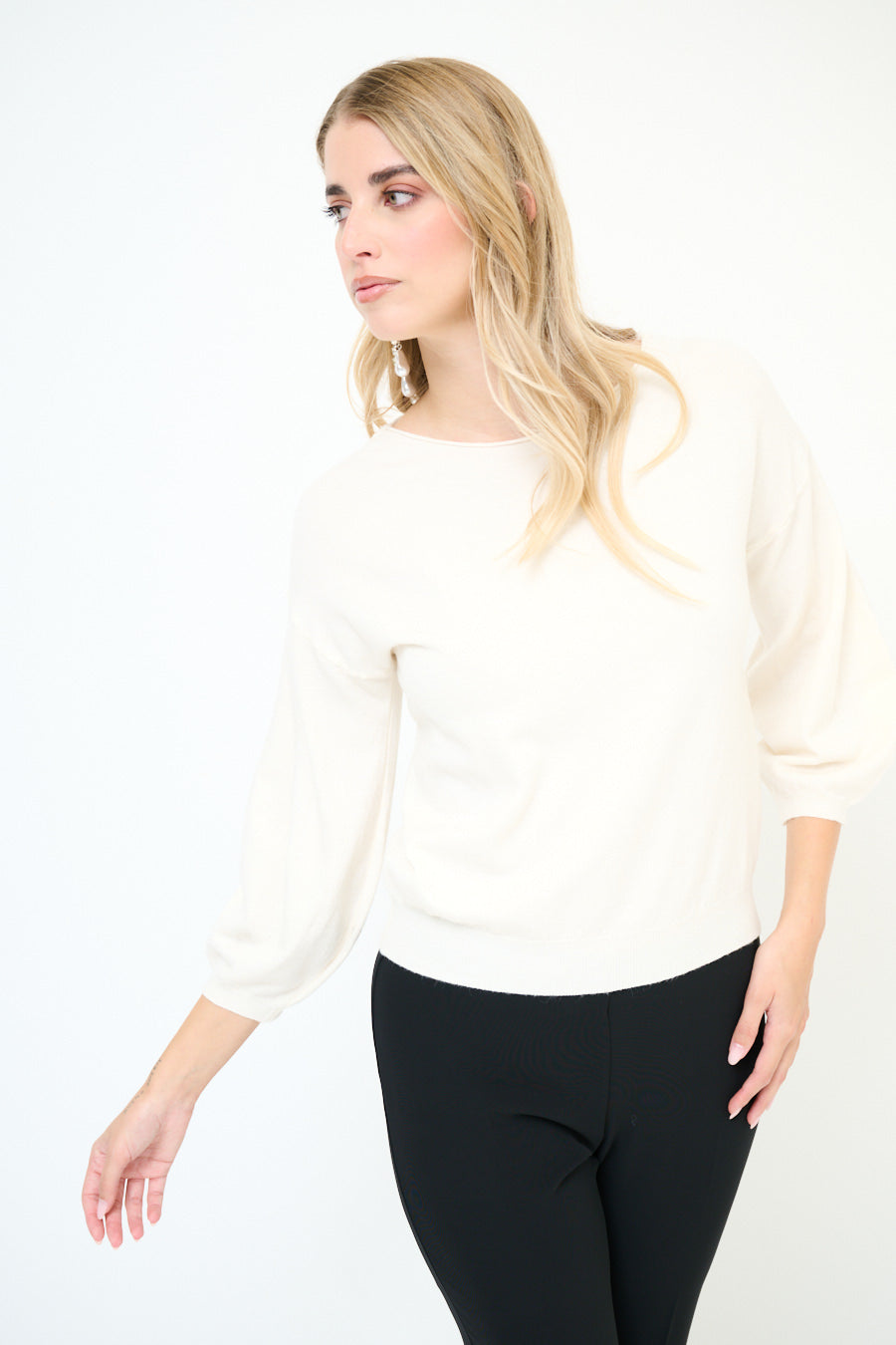 Suéter de malha com manga balão e gola barco no atacado