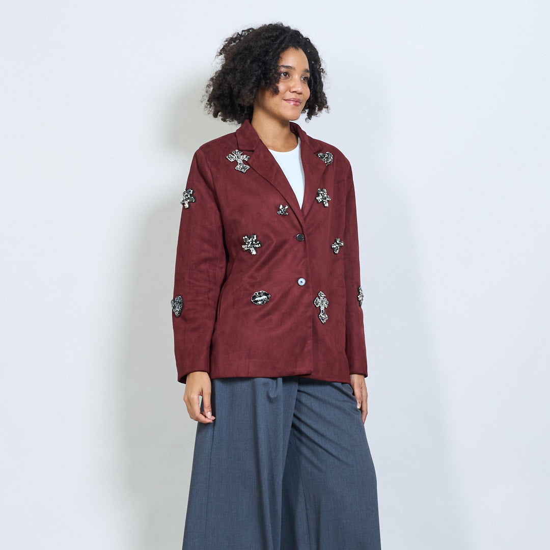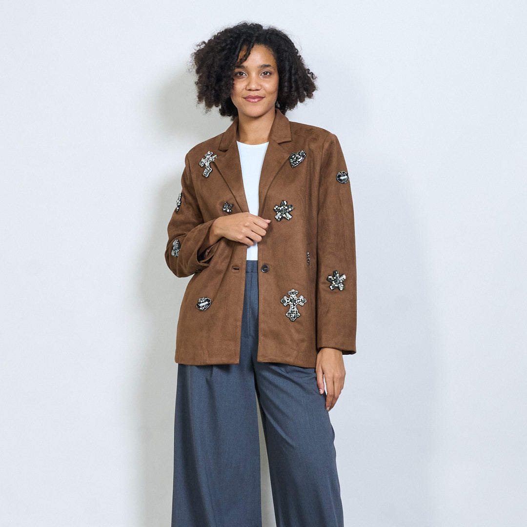 - Blazer adaptado em negrito enriquecido com apliques em estilo de jóia