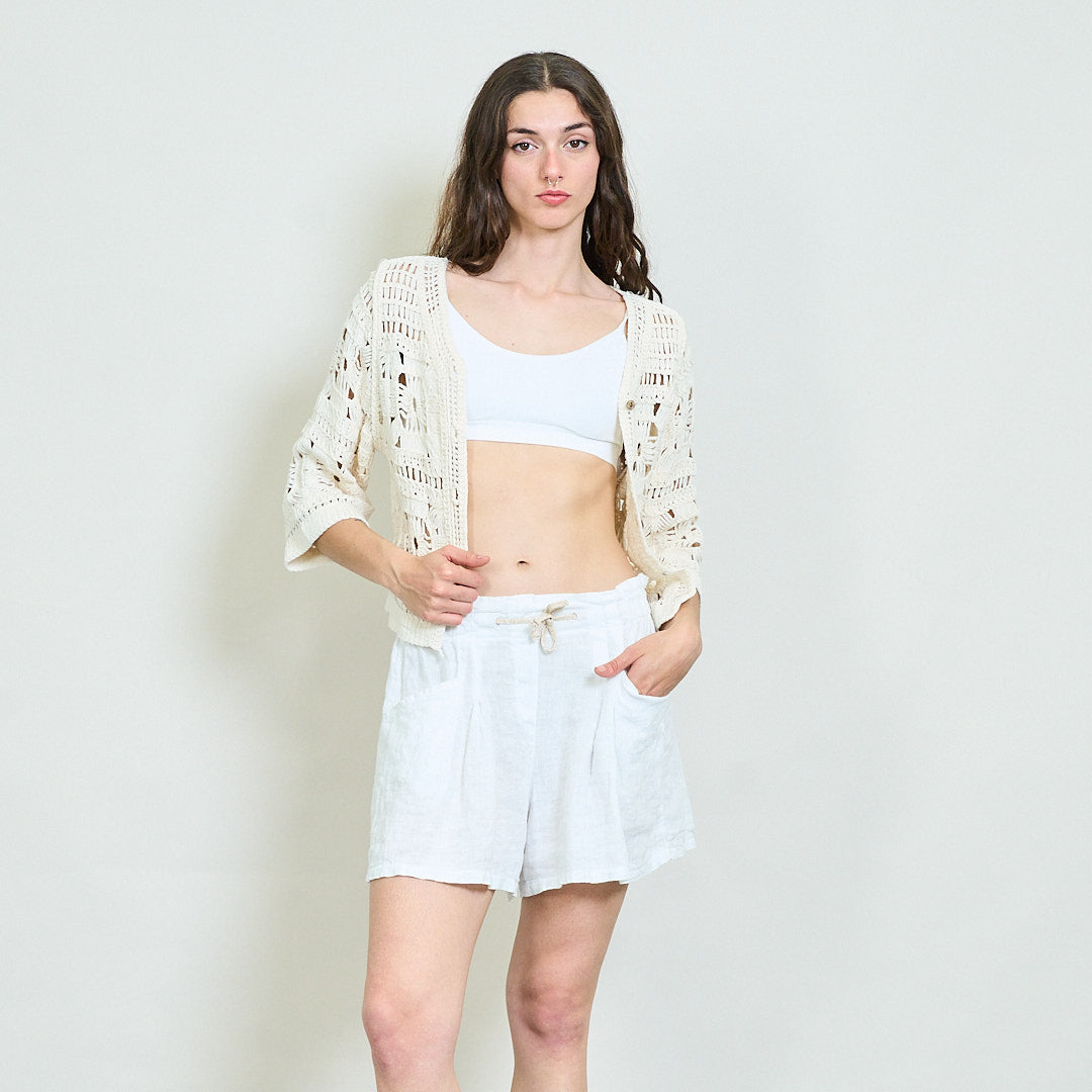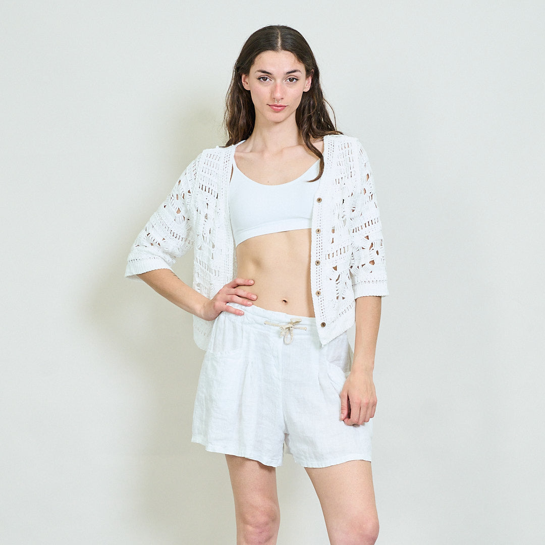 - Feito de crochê de malha aberta para uma camada de verão respirável