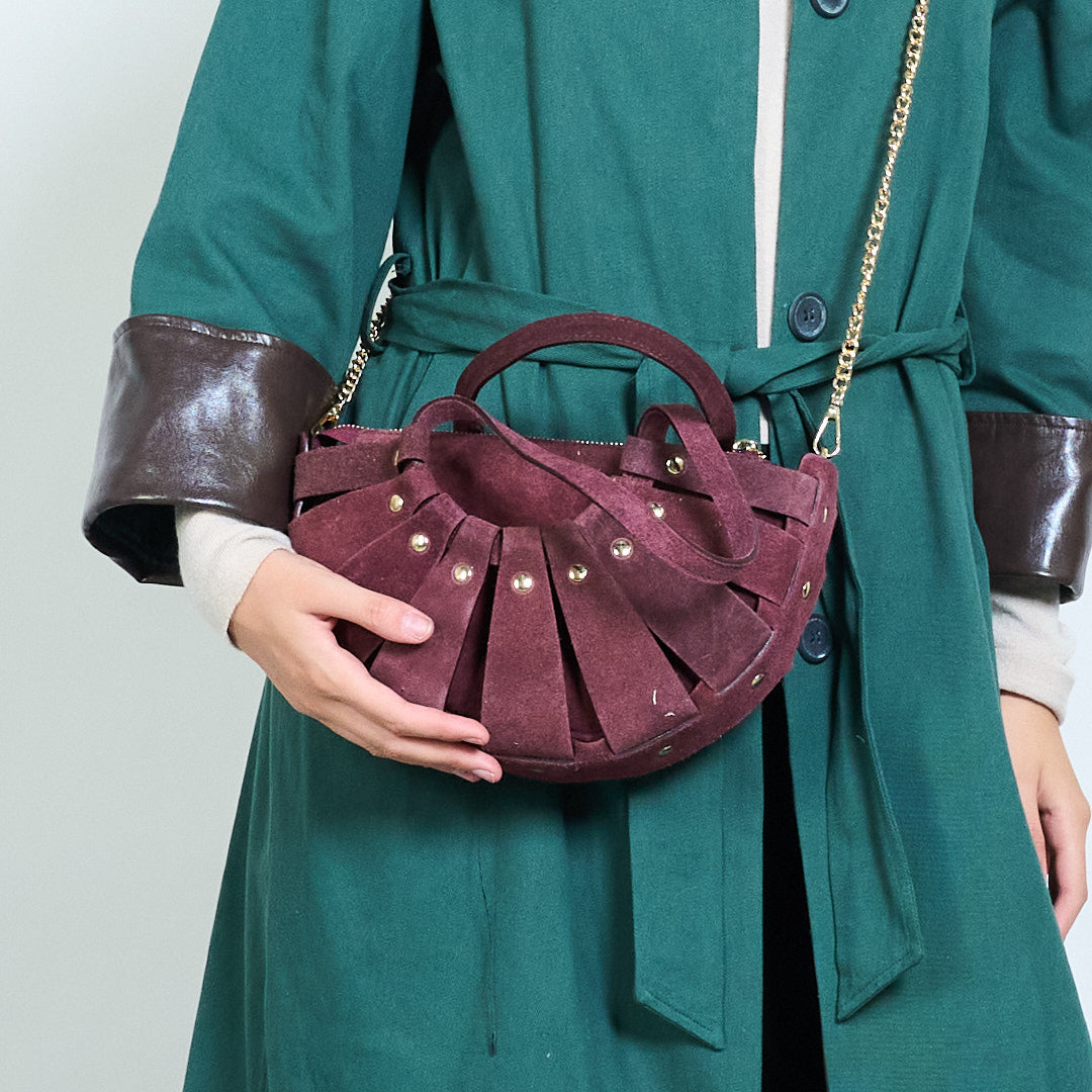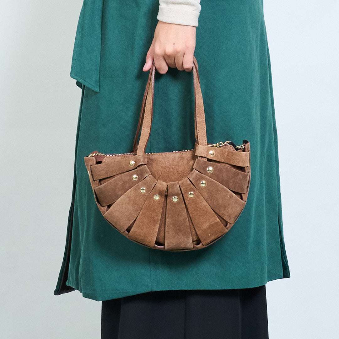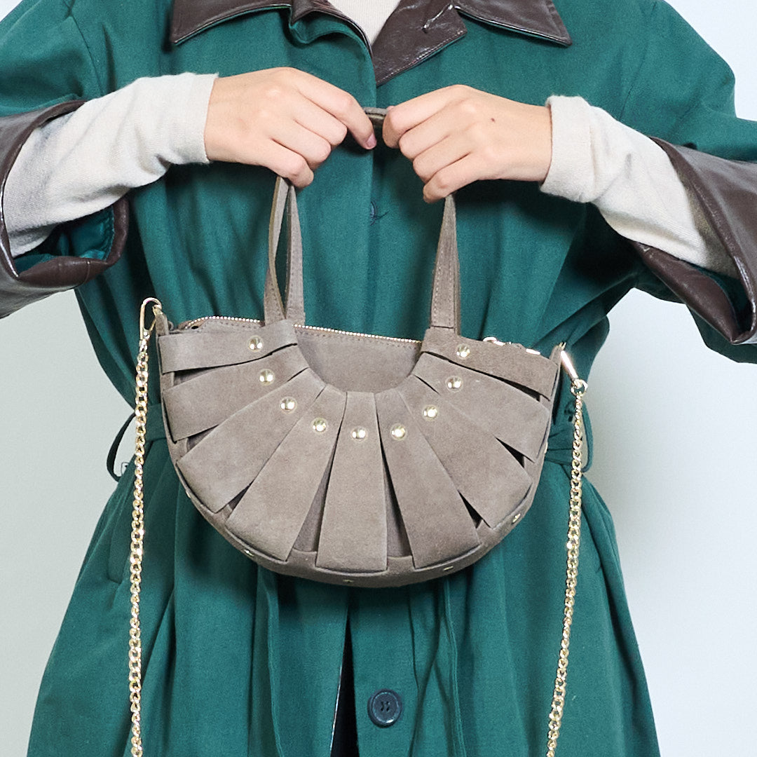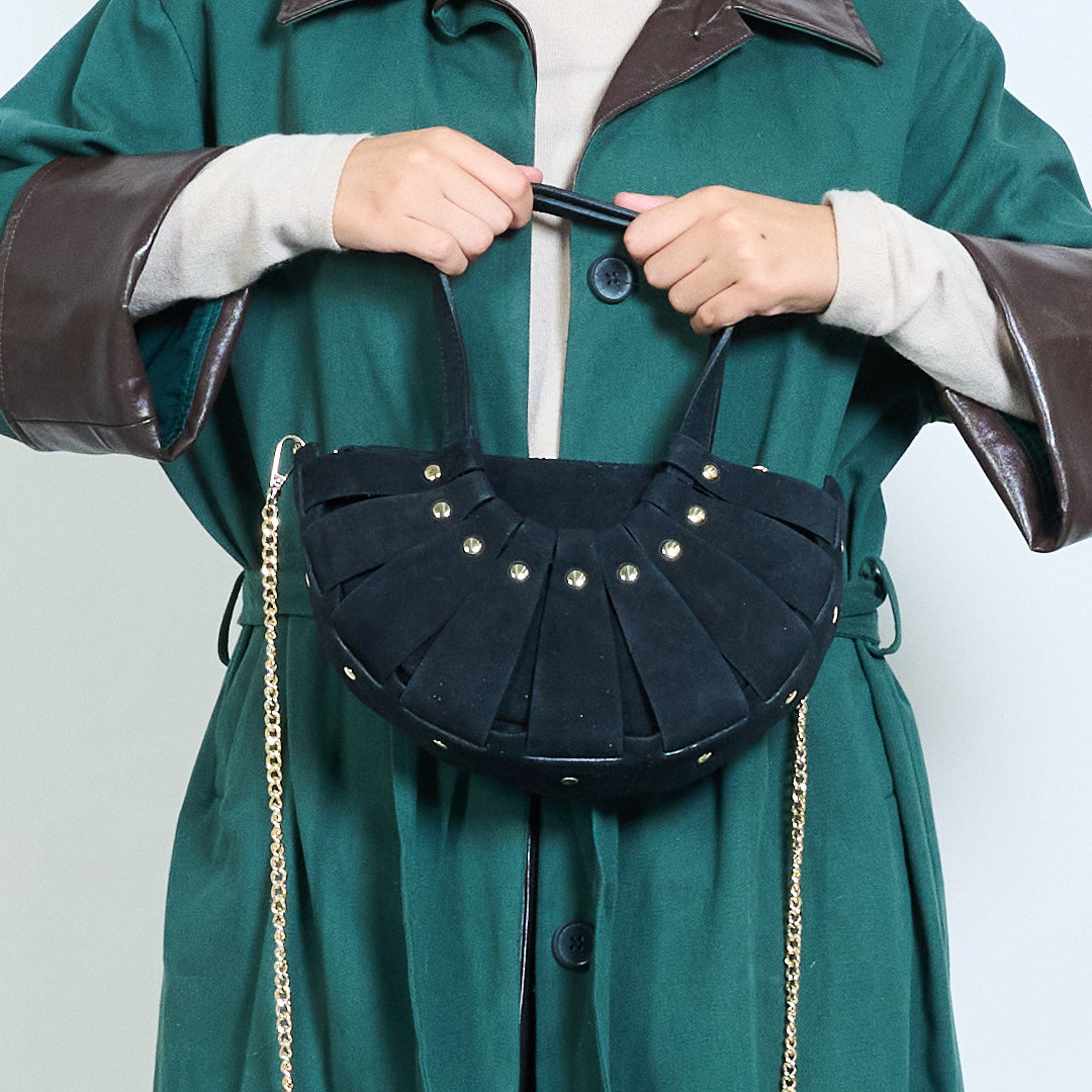 - Apresenta um design exclusivo de meia-lua plissado para uma silhueta chique e moderna