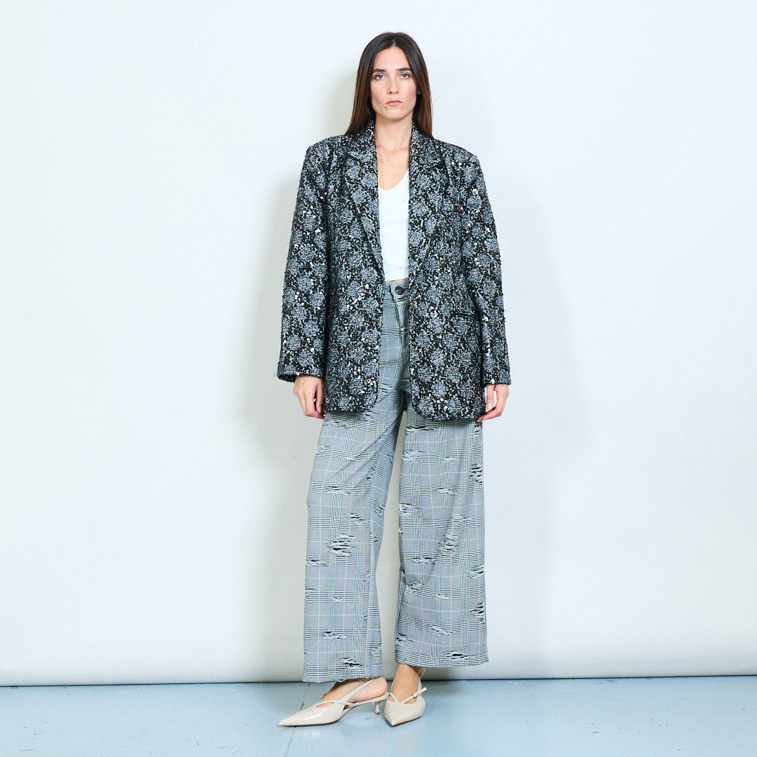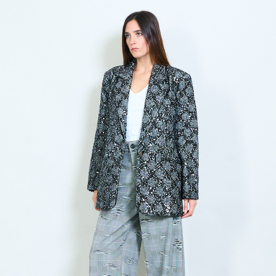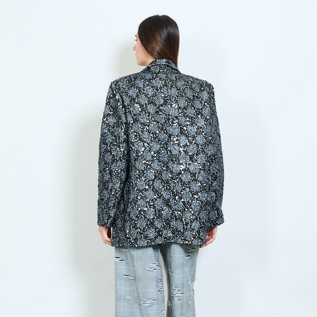 Blazer de efeito de tweed metálico com detalhe de lantejoulas por atacado