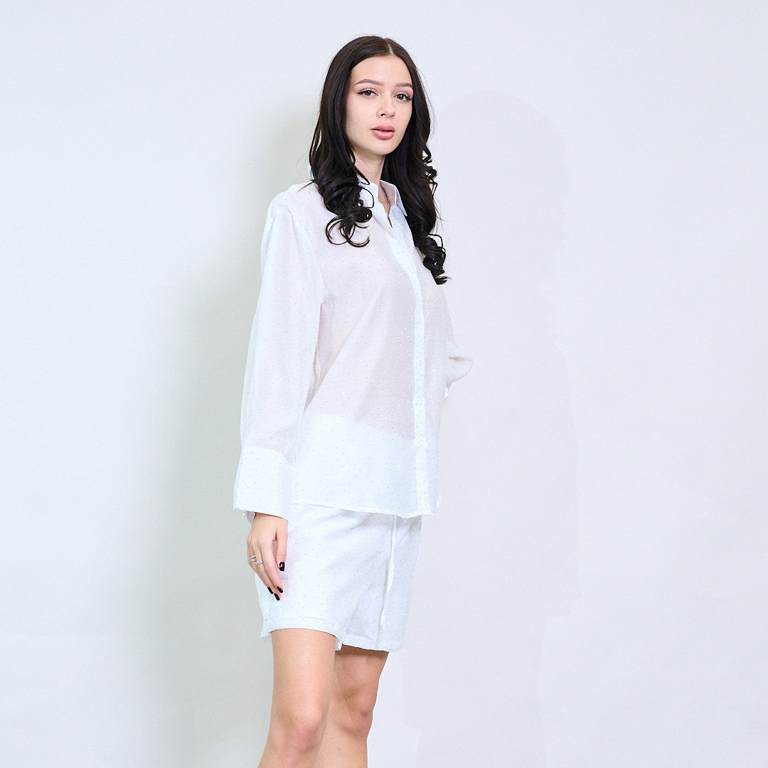 Camisa de botão pontilhada leve com colarinho clássico por atacado