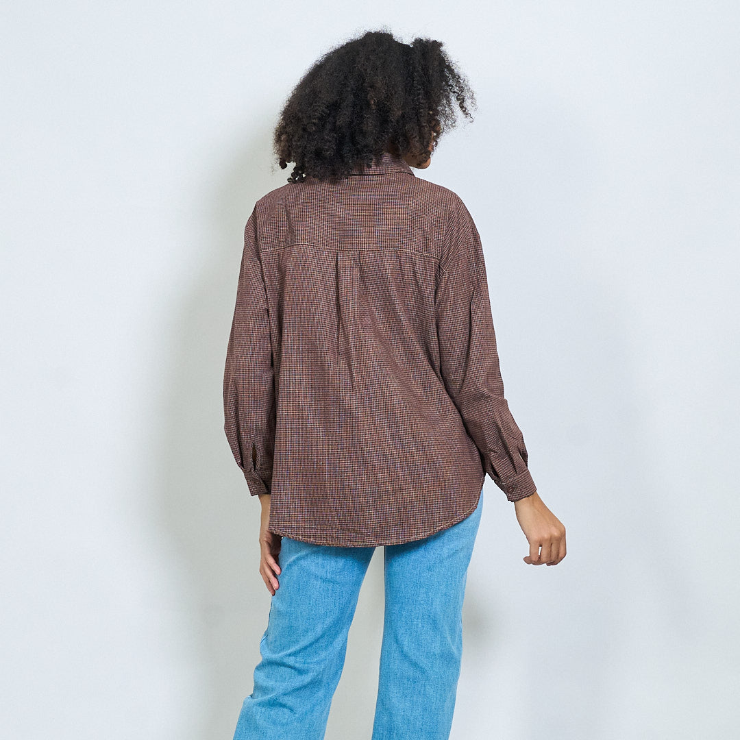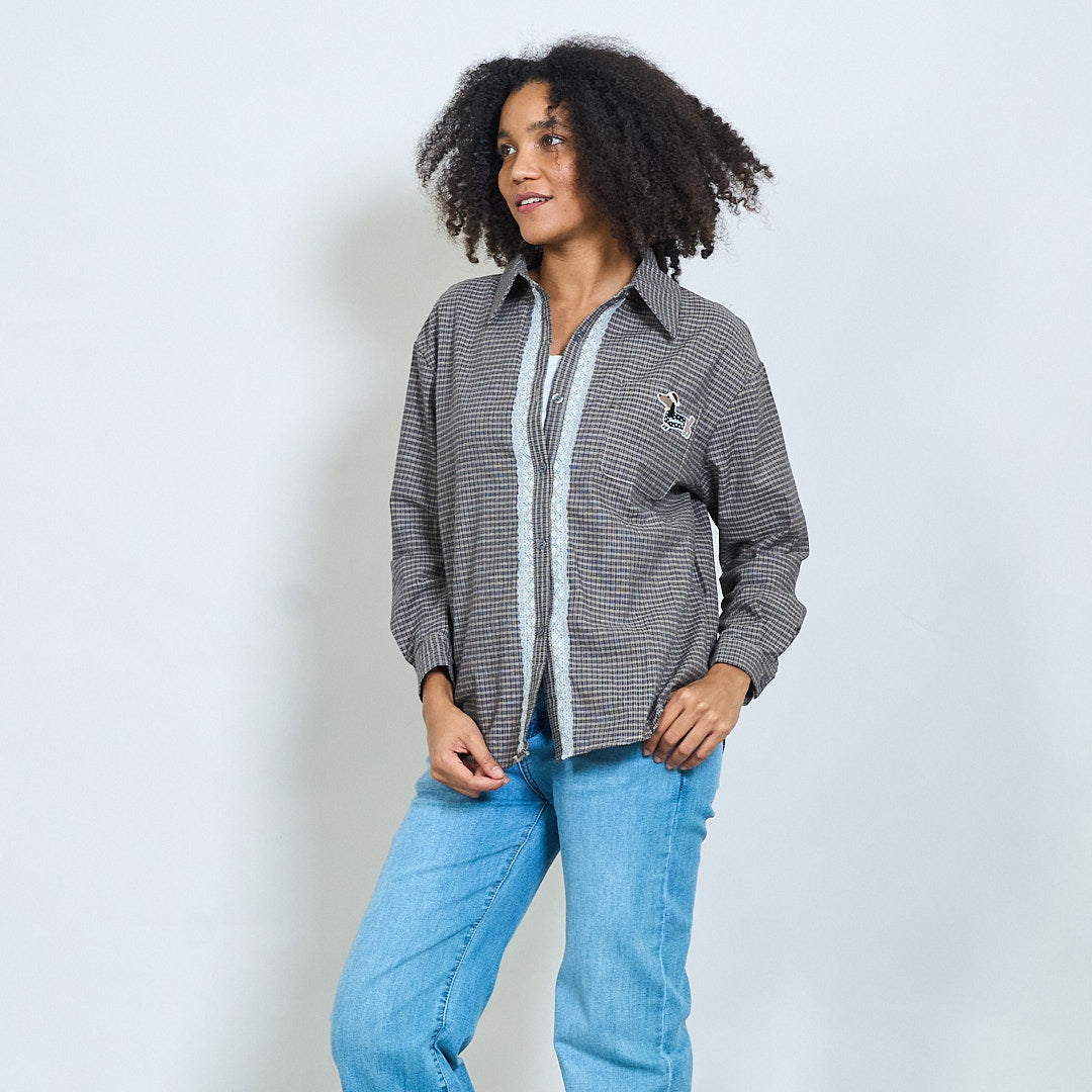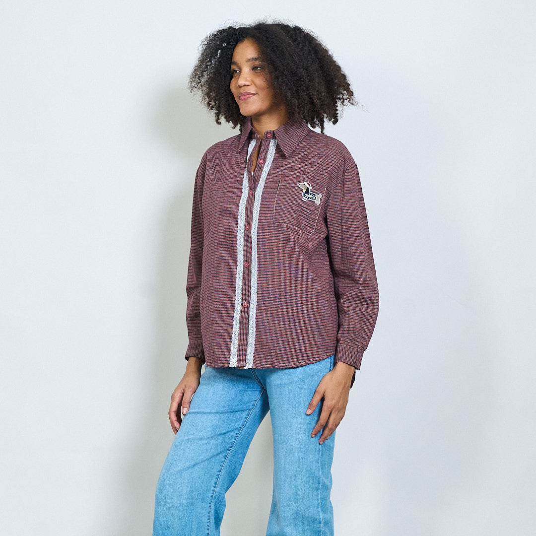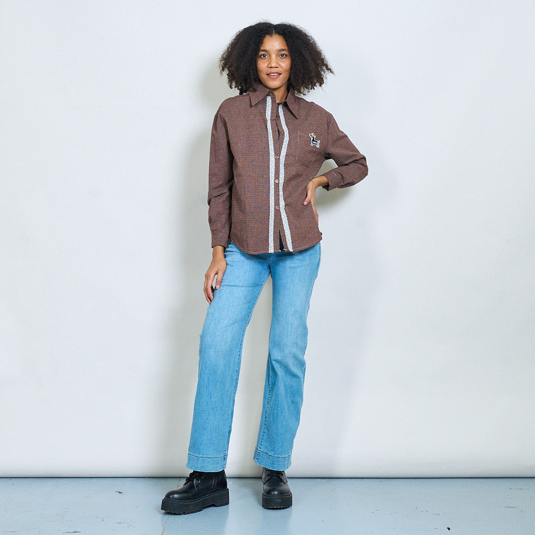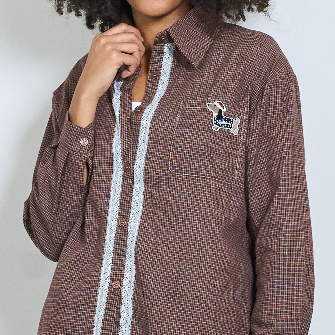 Camisa verificada com acabamento em contraste e detalhe de patches por atacado