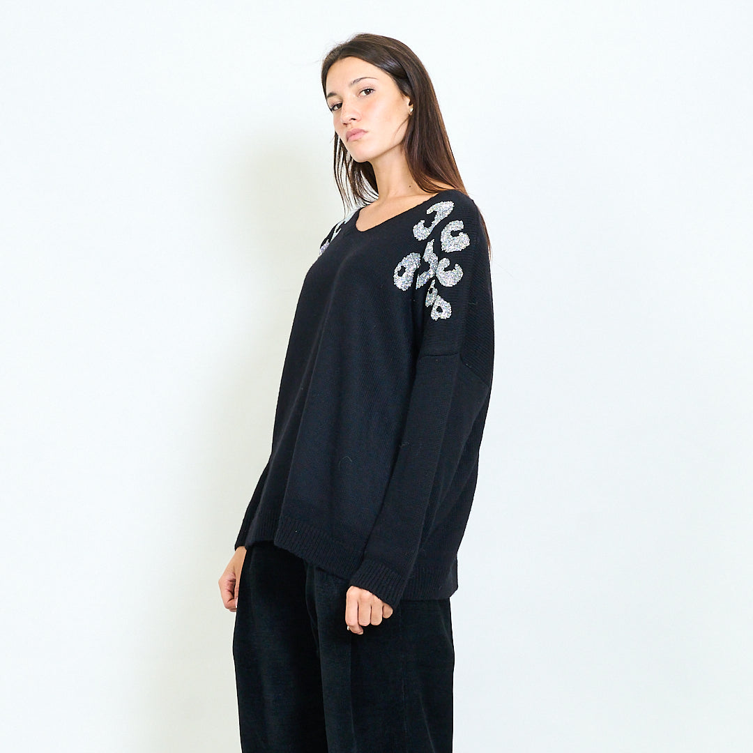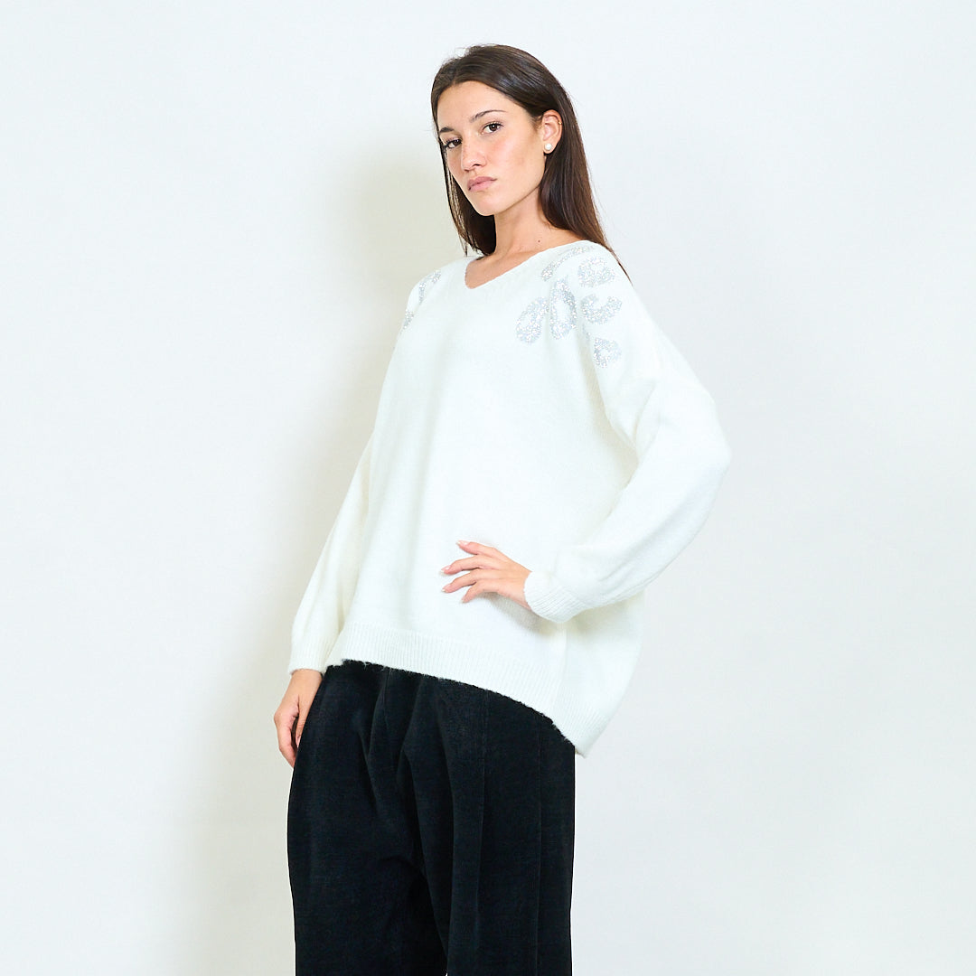 Camisinho de decote em V embelezado de ombro glam