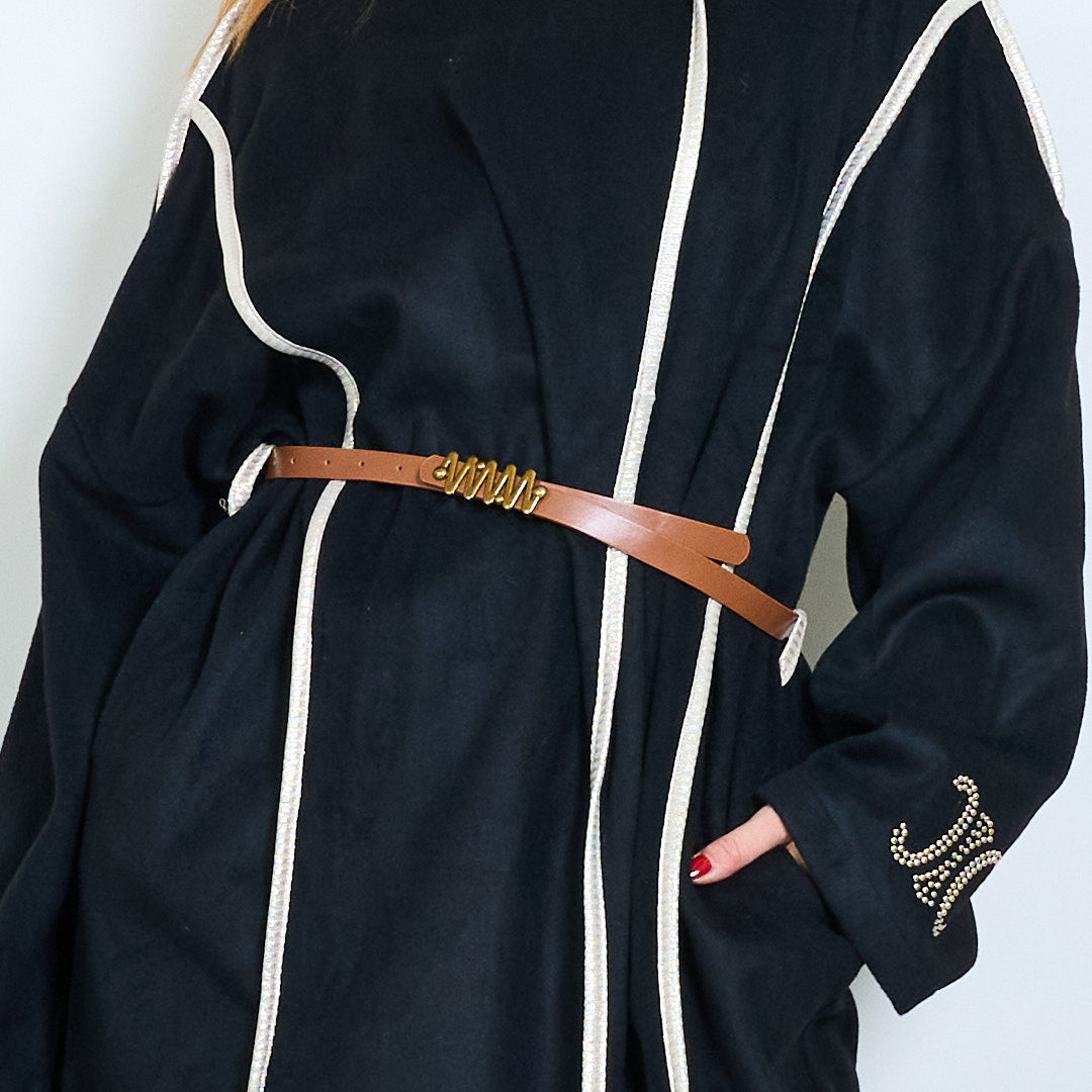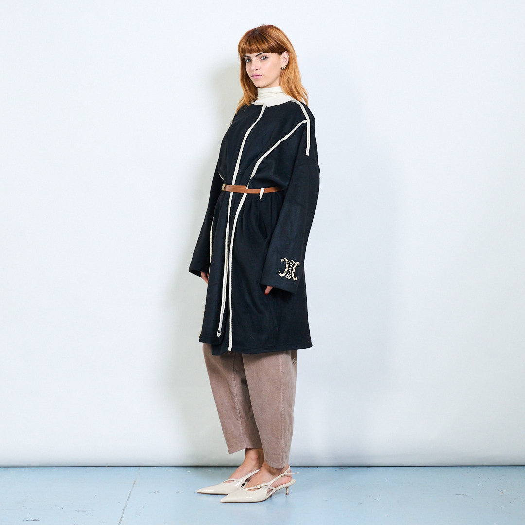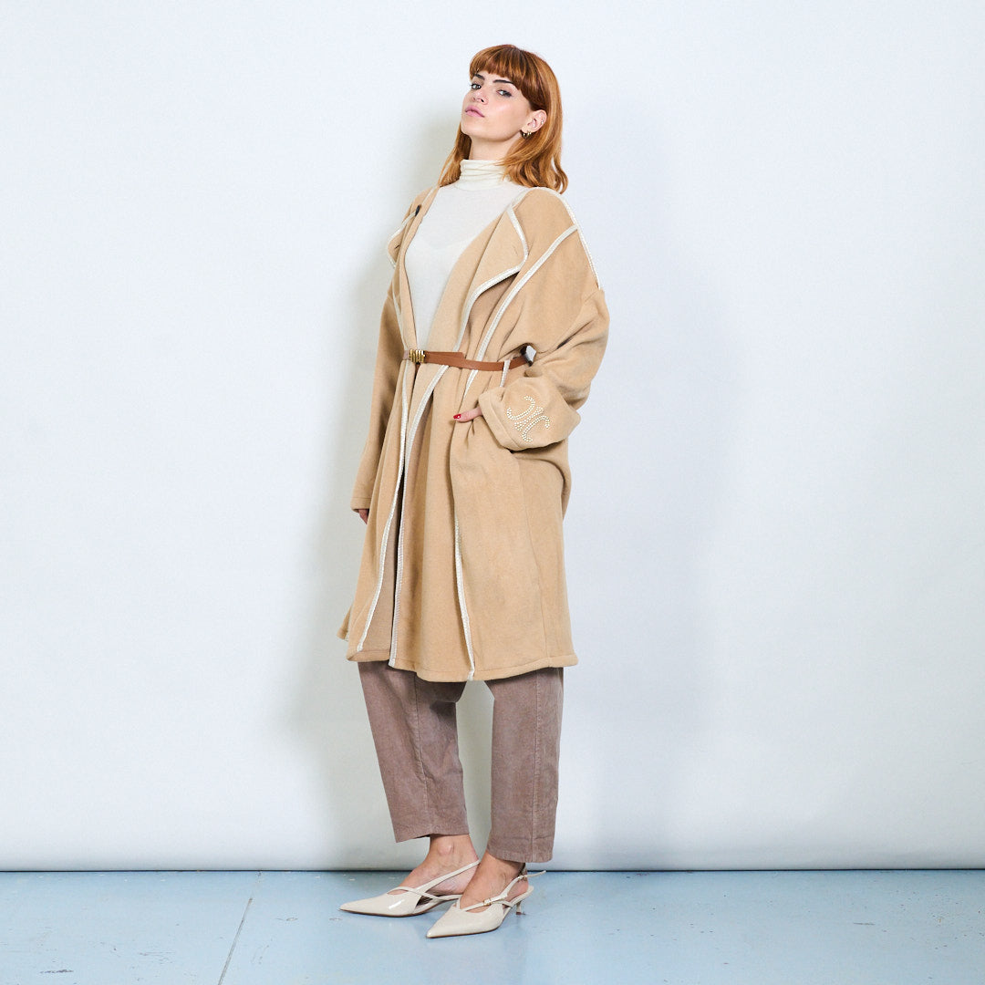 Casaco de tamanho grande com cinto com bordado por atacado