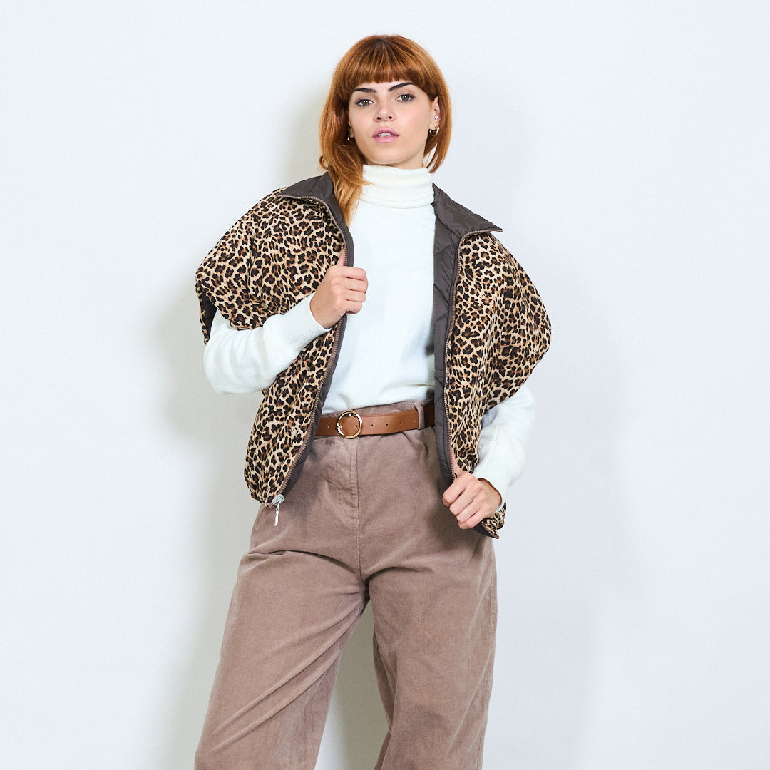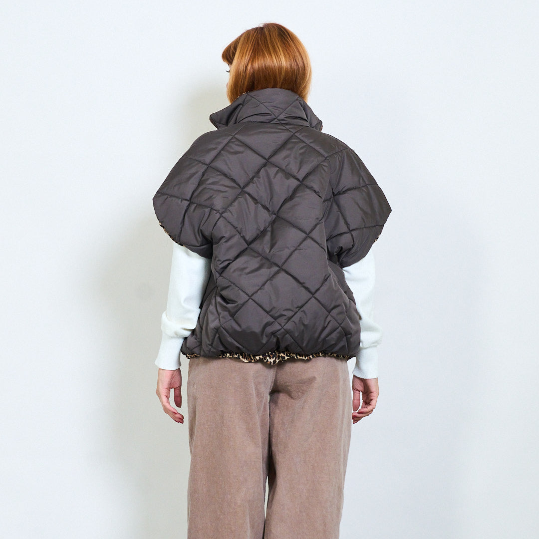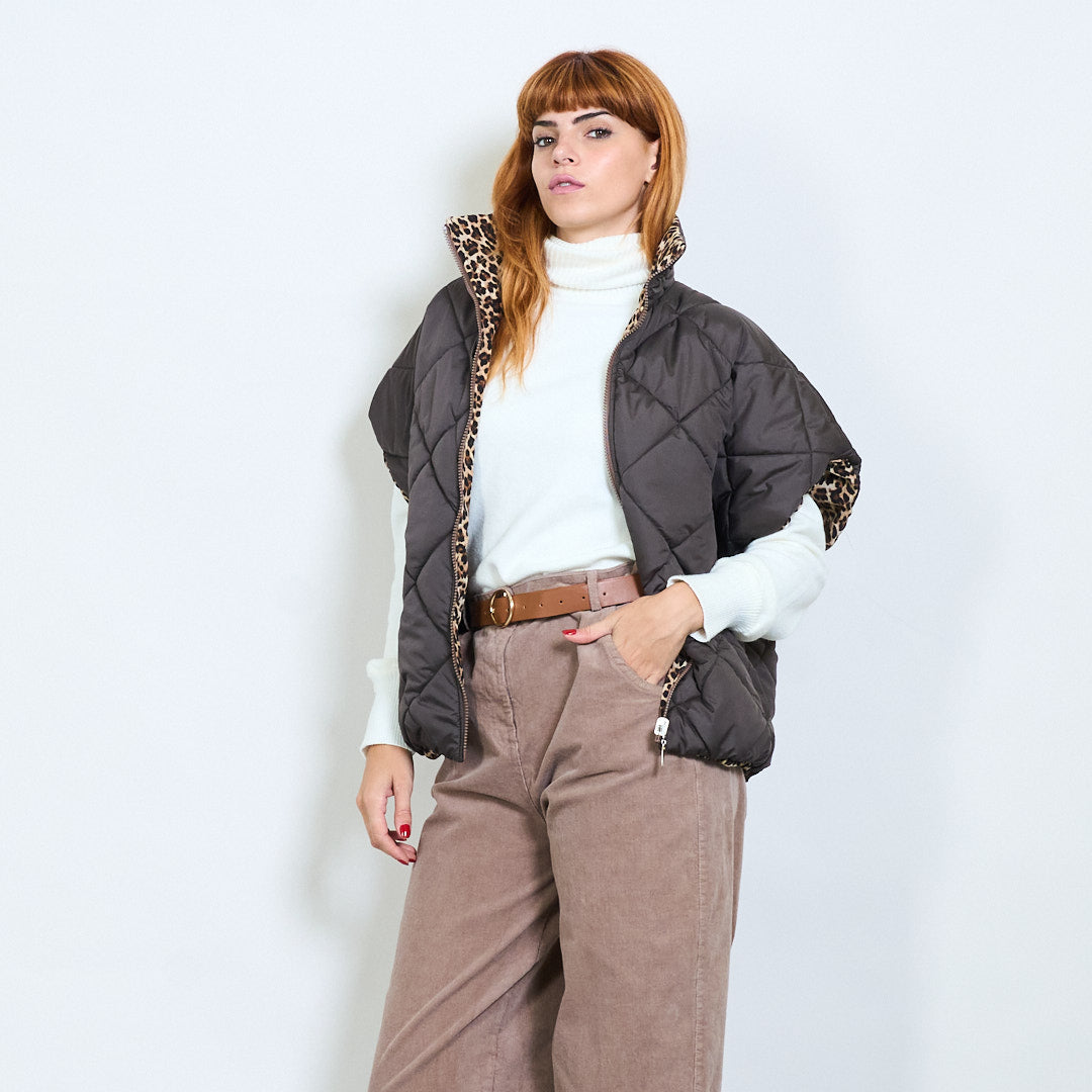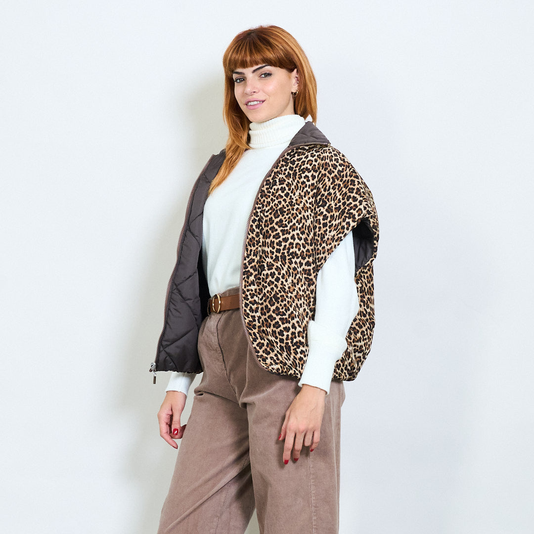 Colete acolchoado sem mangas acolchoado com forro de estampa de animal por atacado