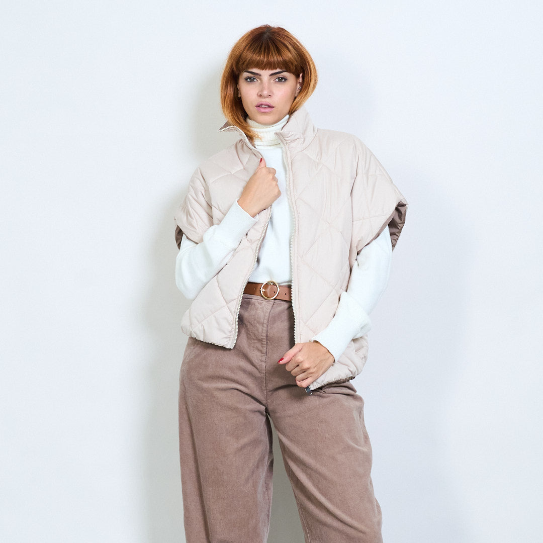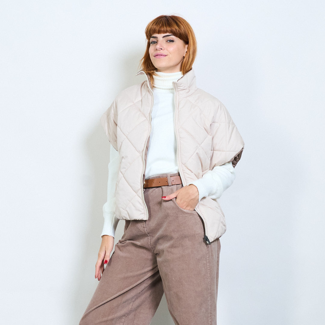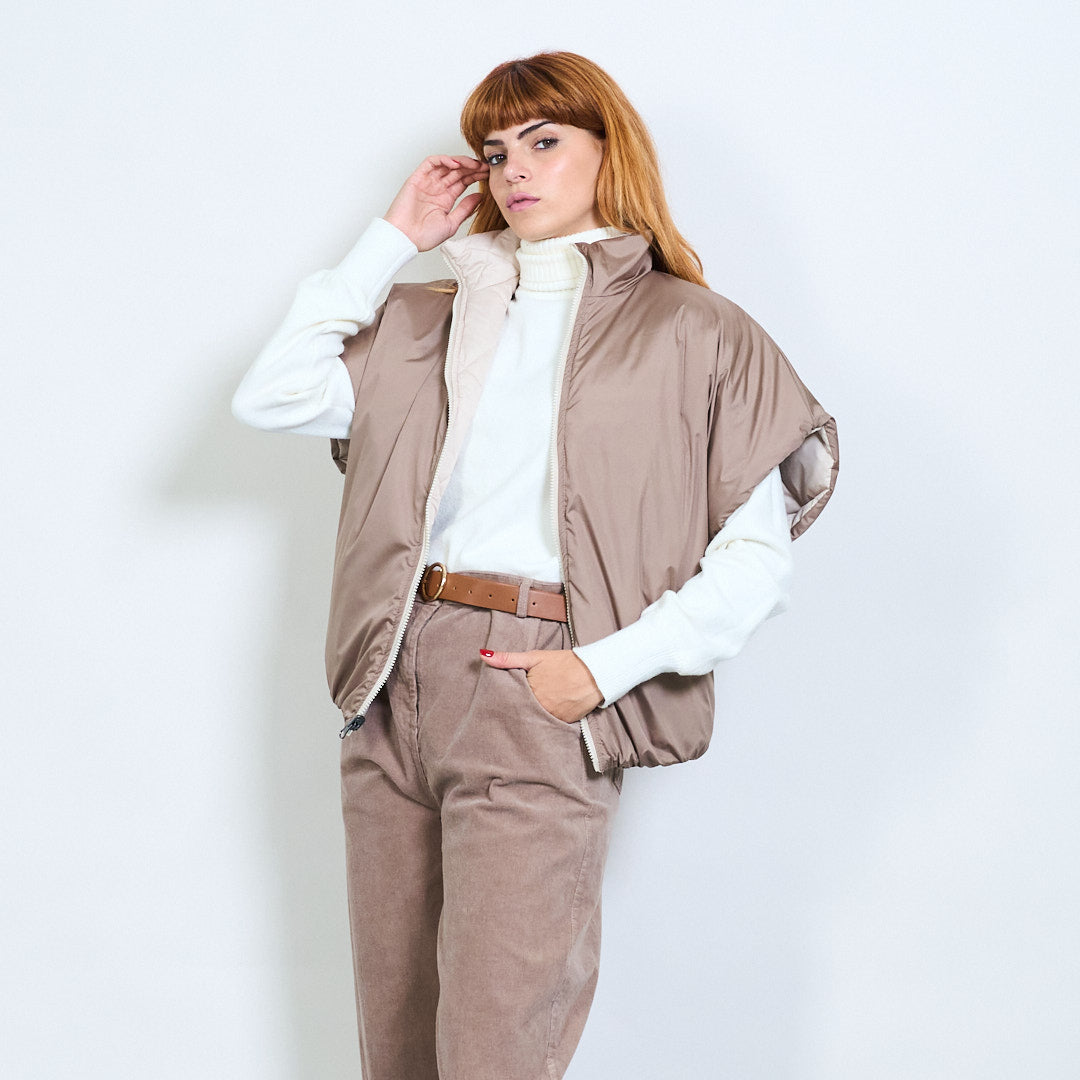 - Corte sem mangas, ideal para camadas sobre malhas ou camisas