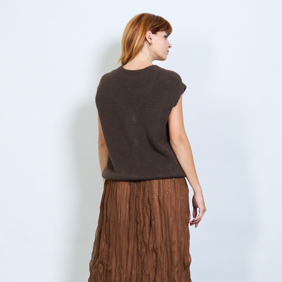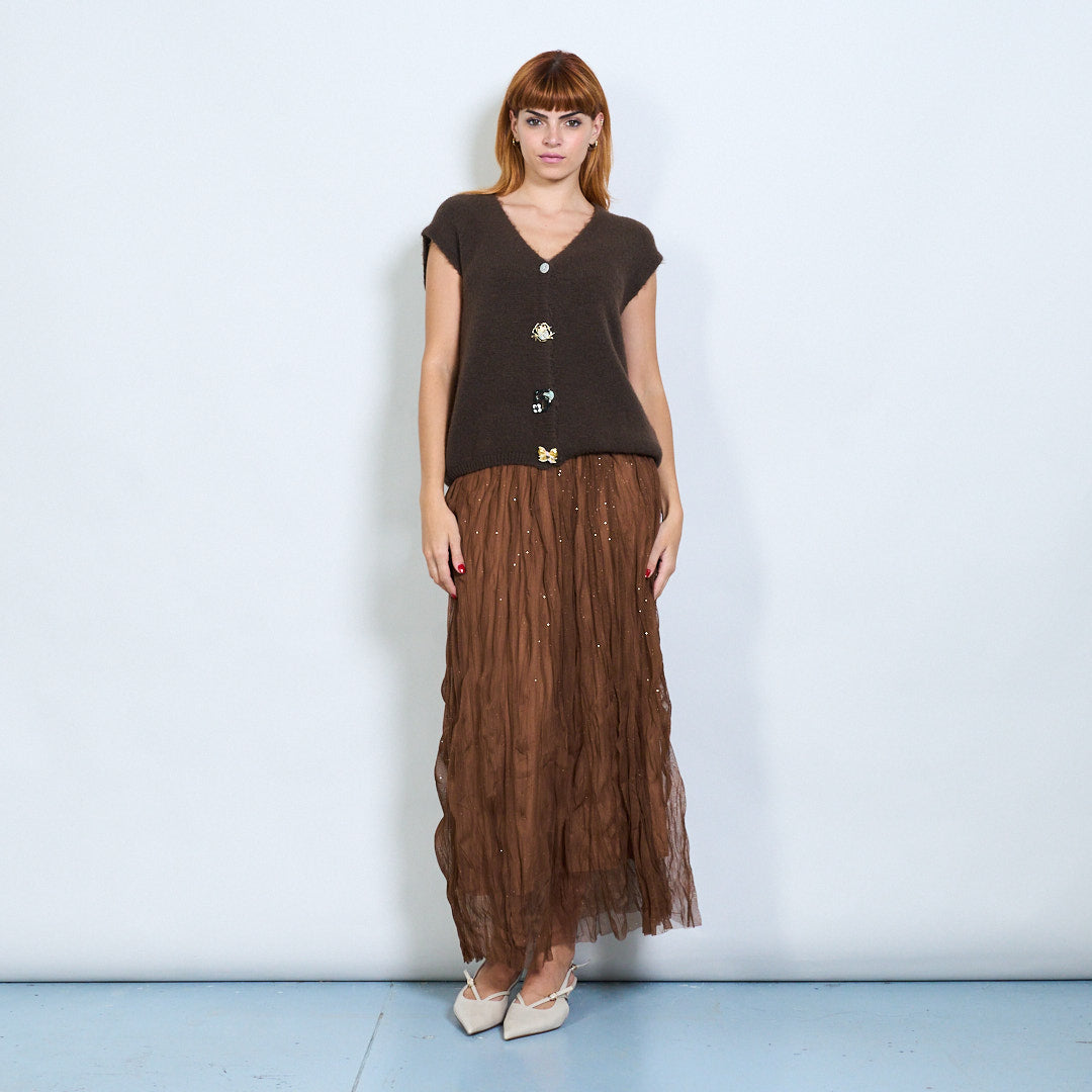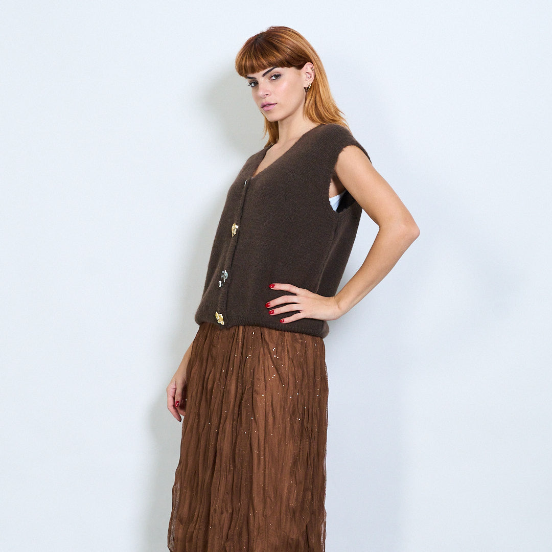 Colete de malha sem mangas com botões de jóias decorativas por atacado