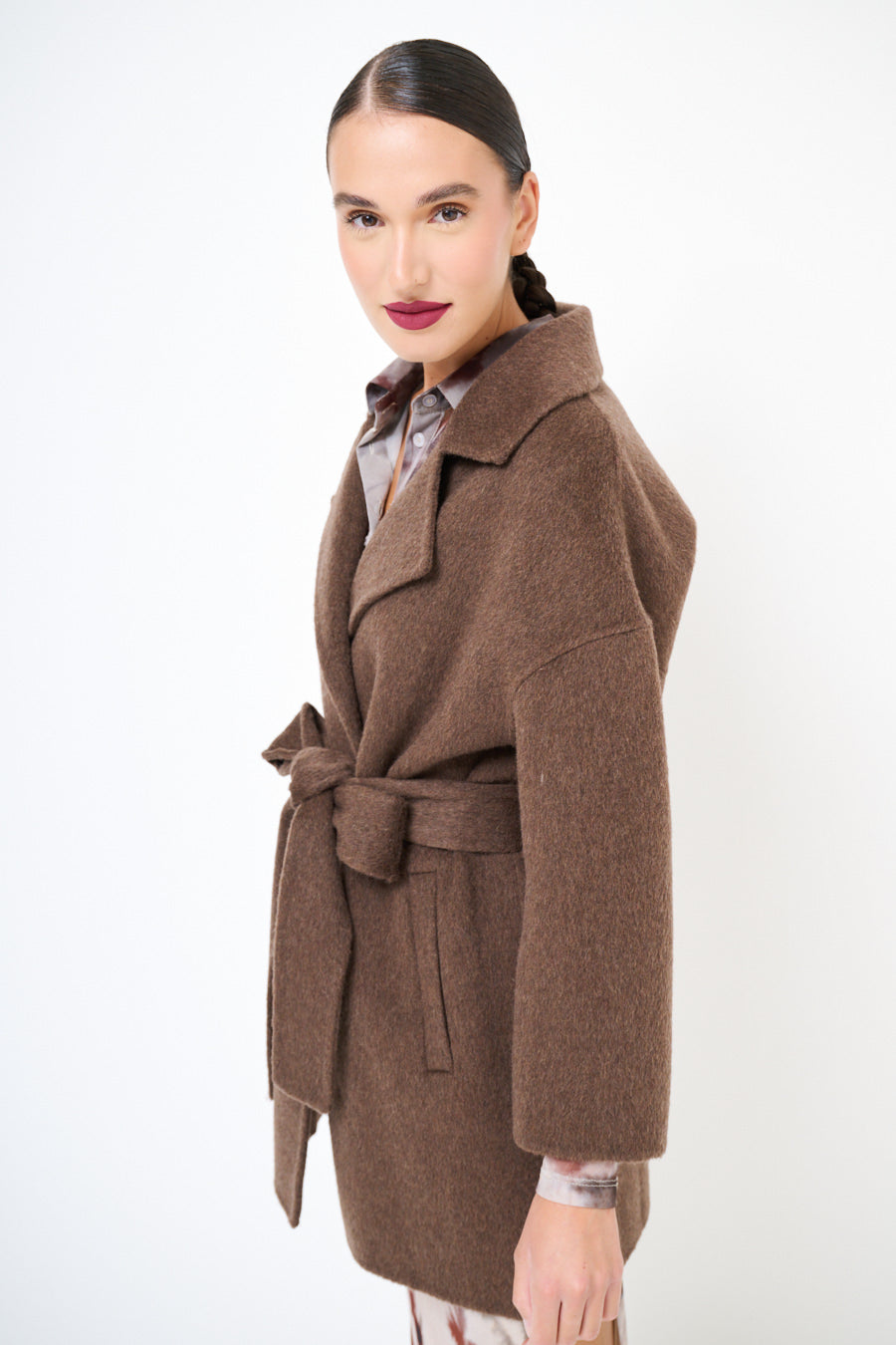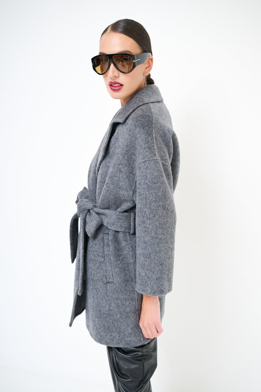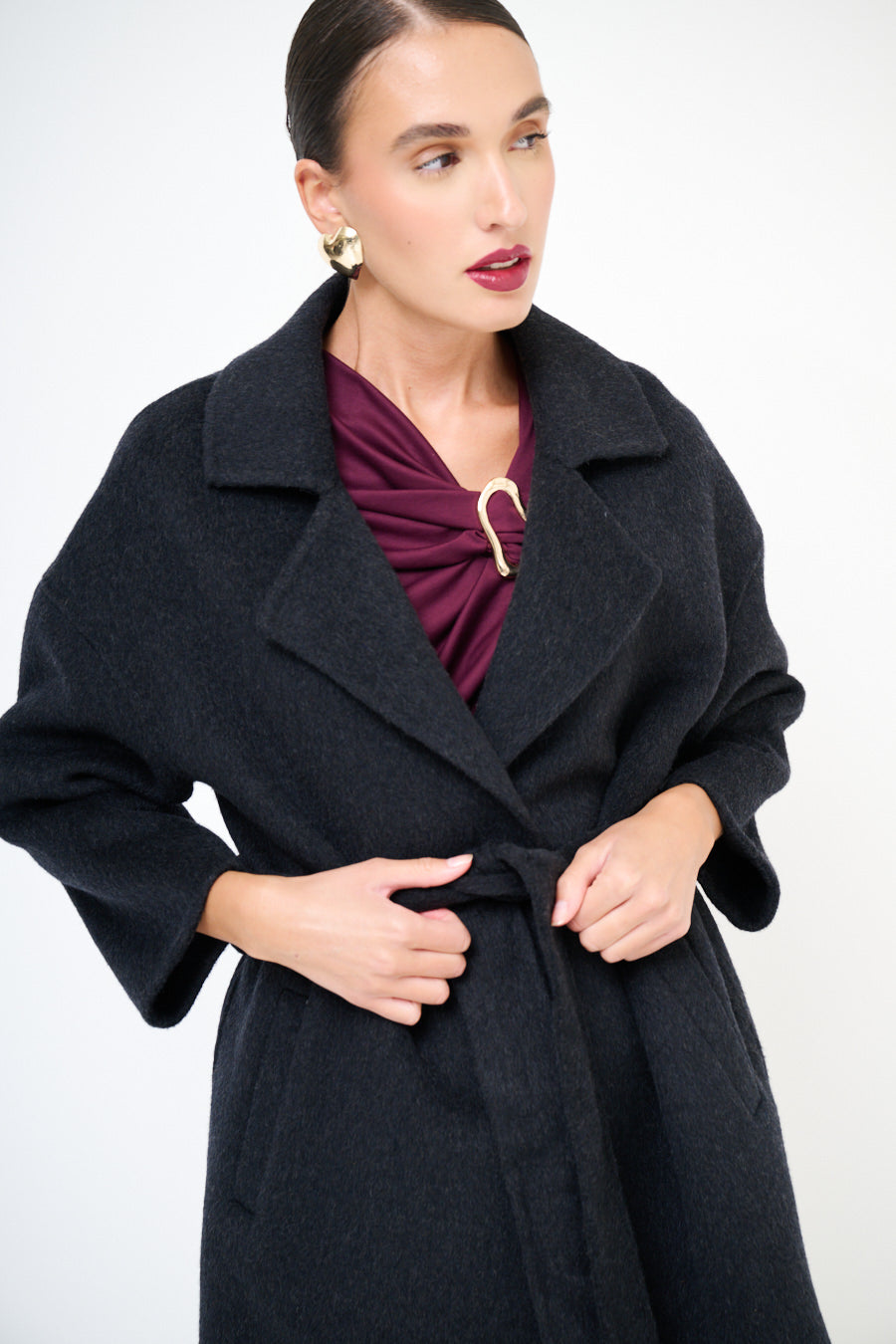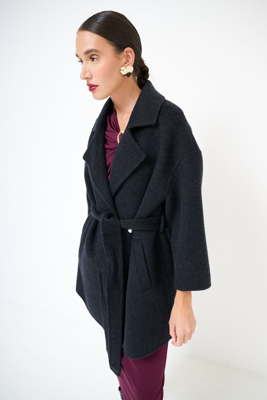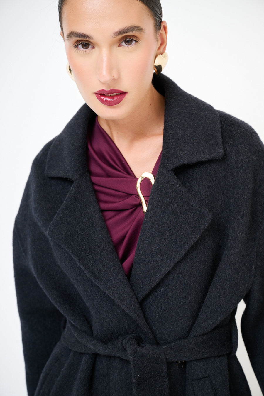 - Design de envoltório relaxado com uma cintura com cinto para ajuste ajustável