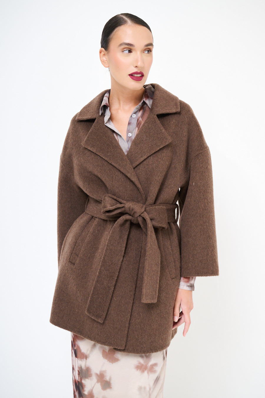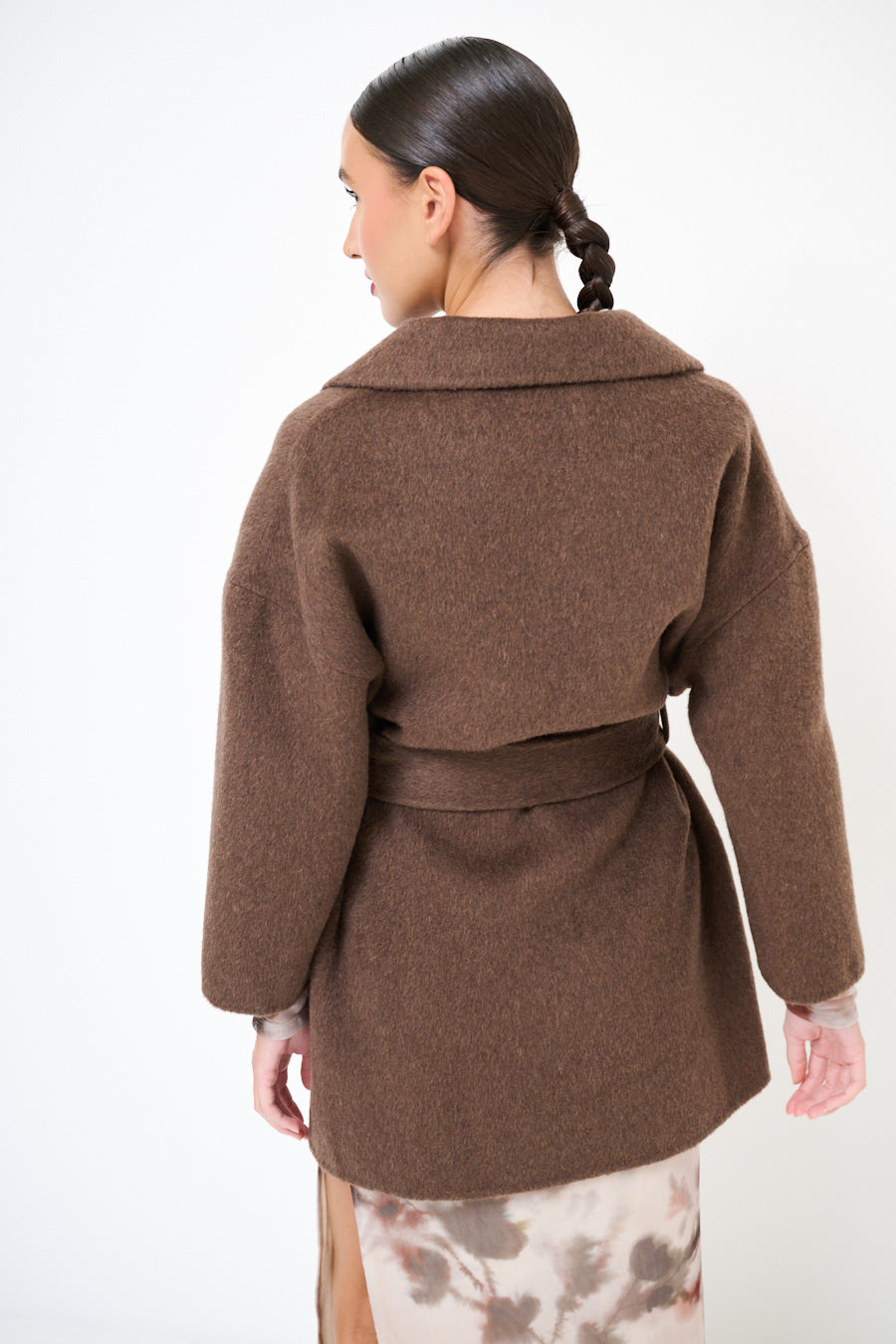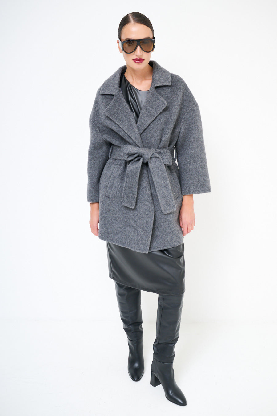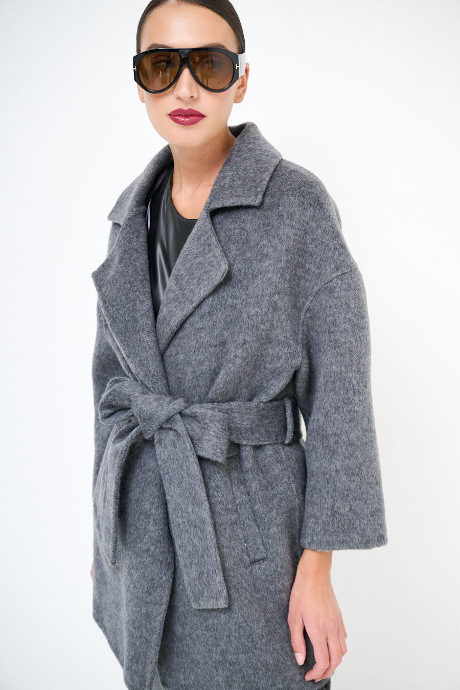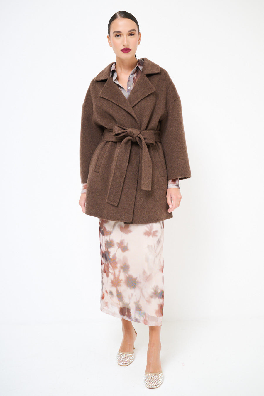 - Design de envoltório relaxado com uma cintura com cinto para ajuste ajustável