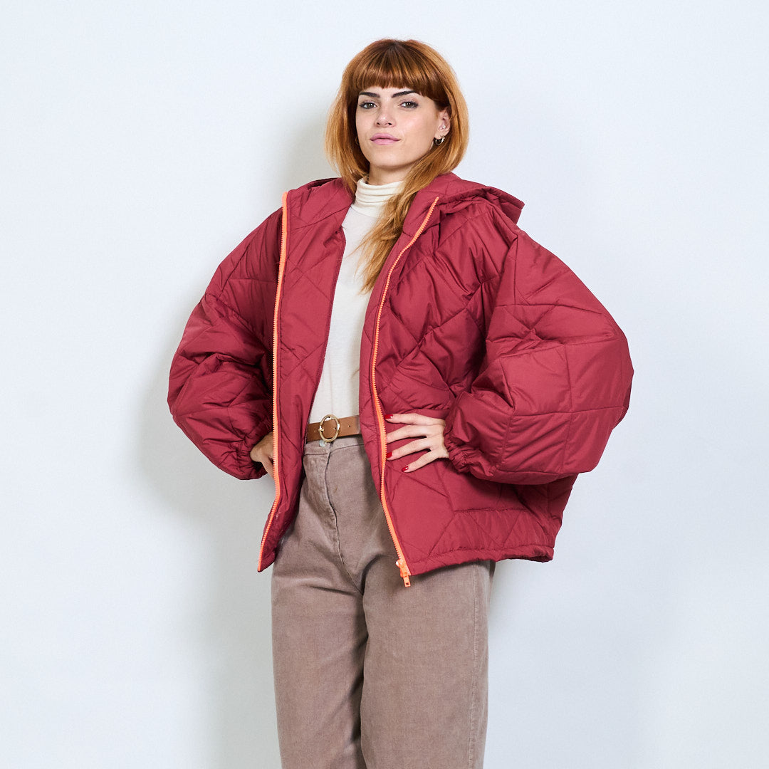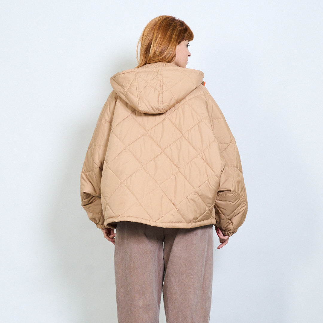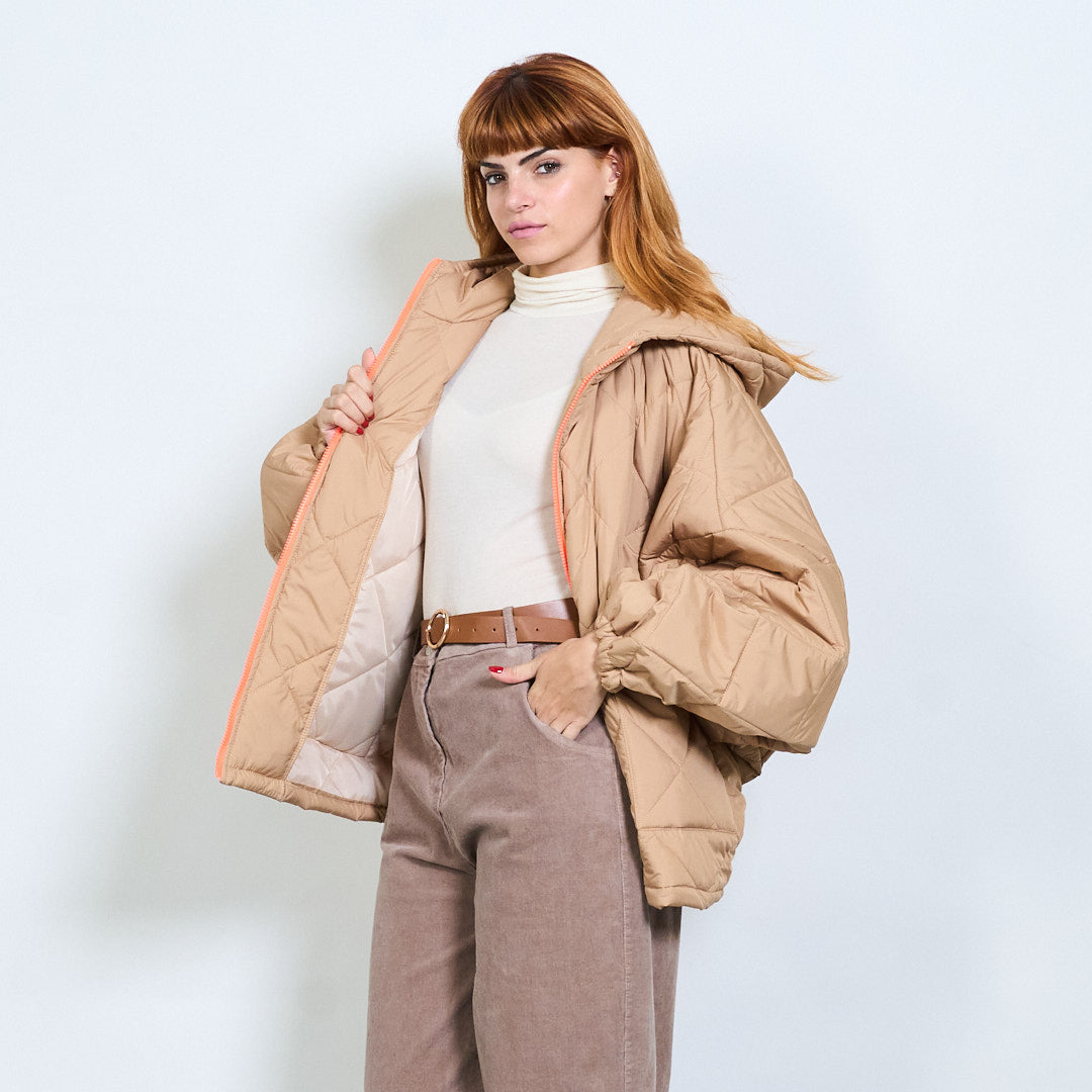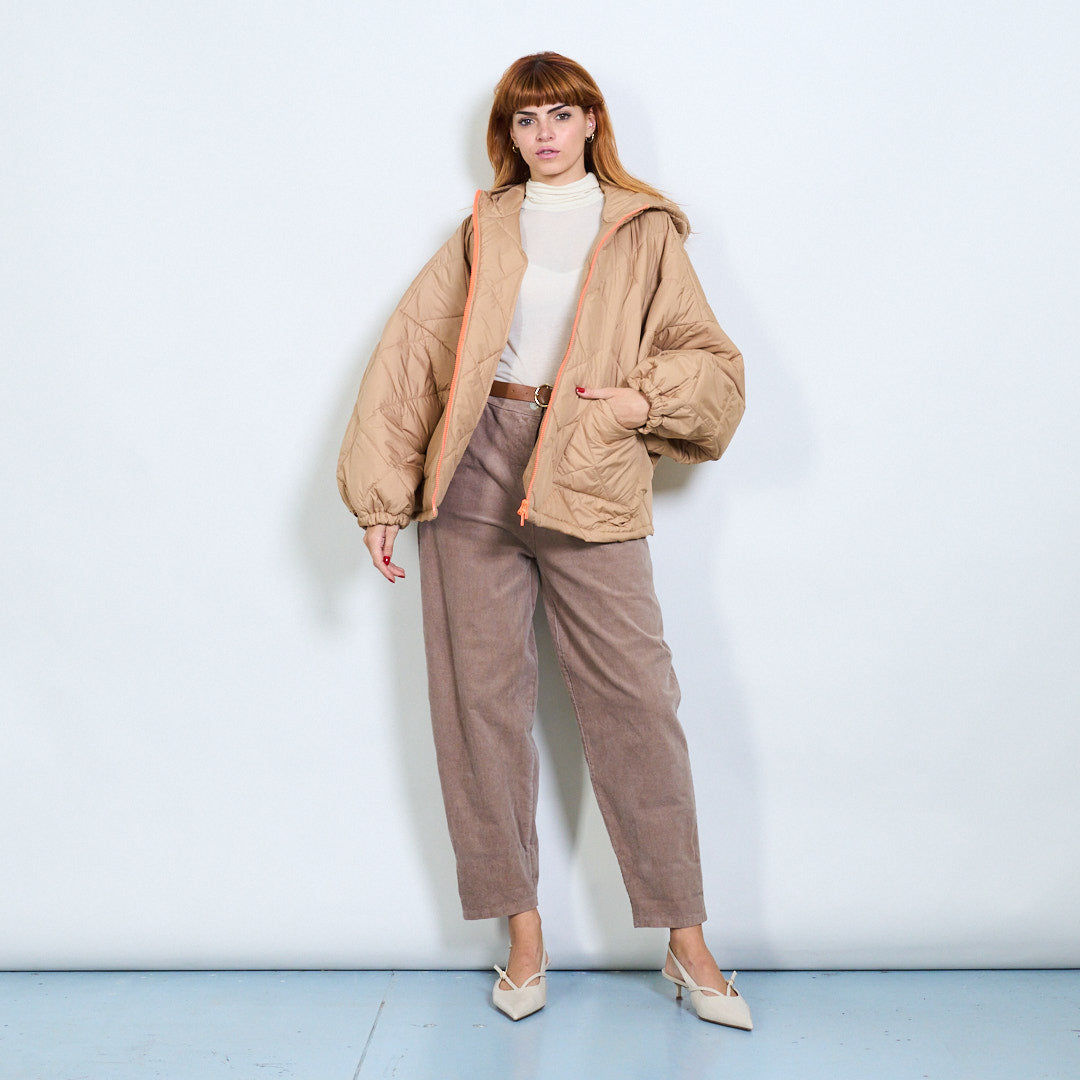 Jaqueta de Puffer com capuz de grandes dimensões com zíper de contraste por atacado