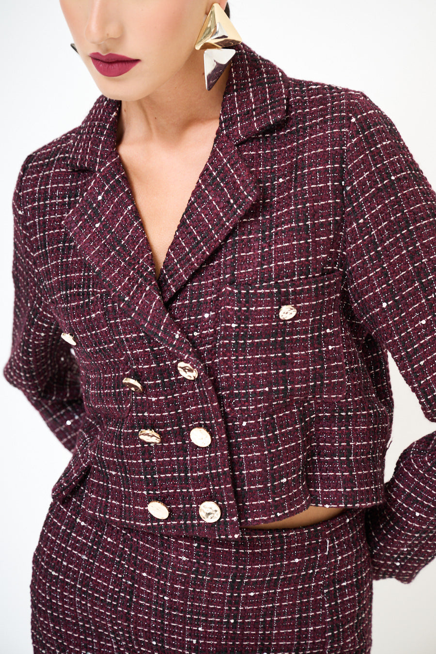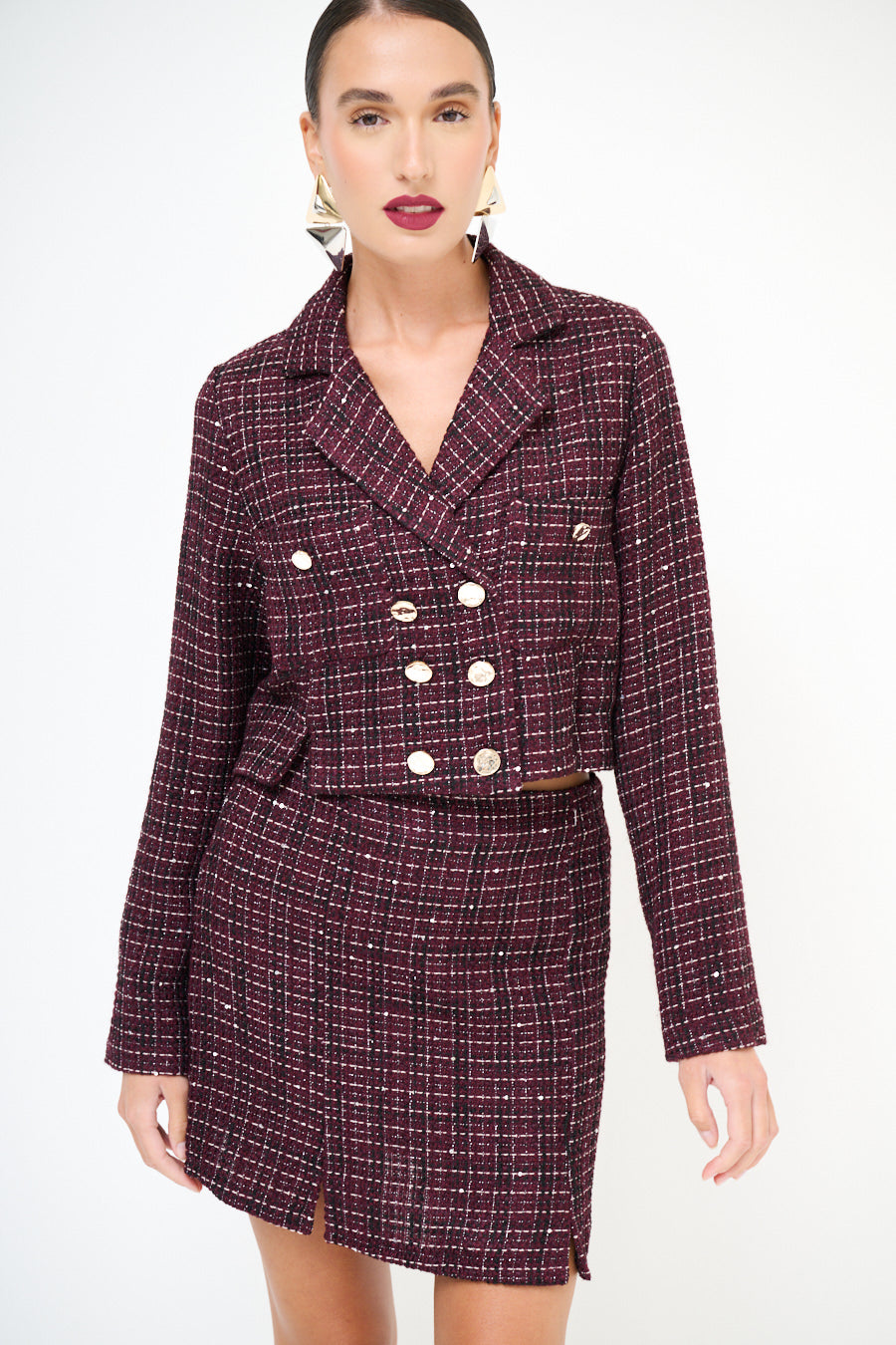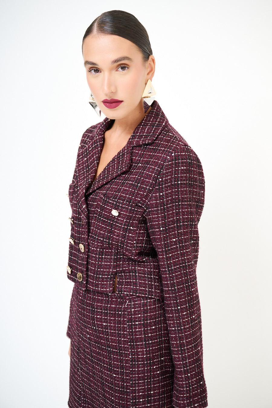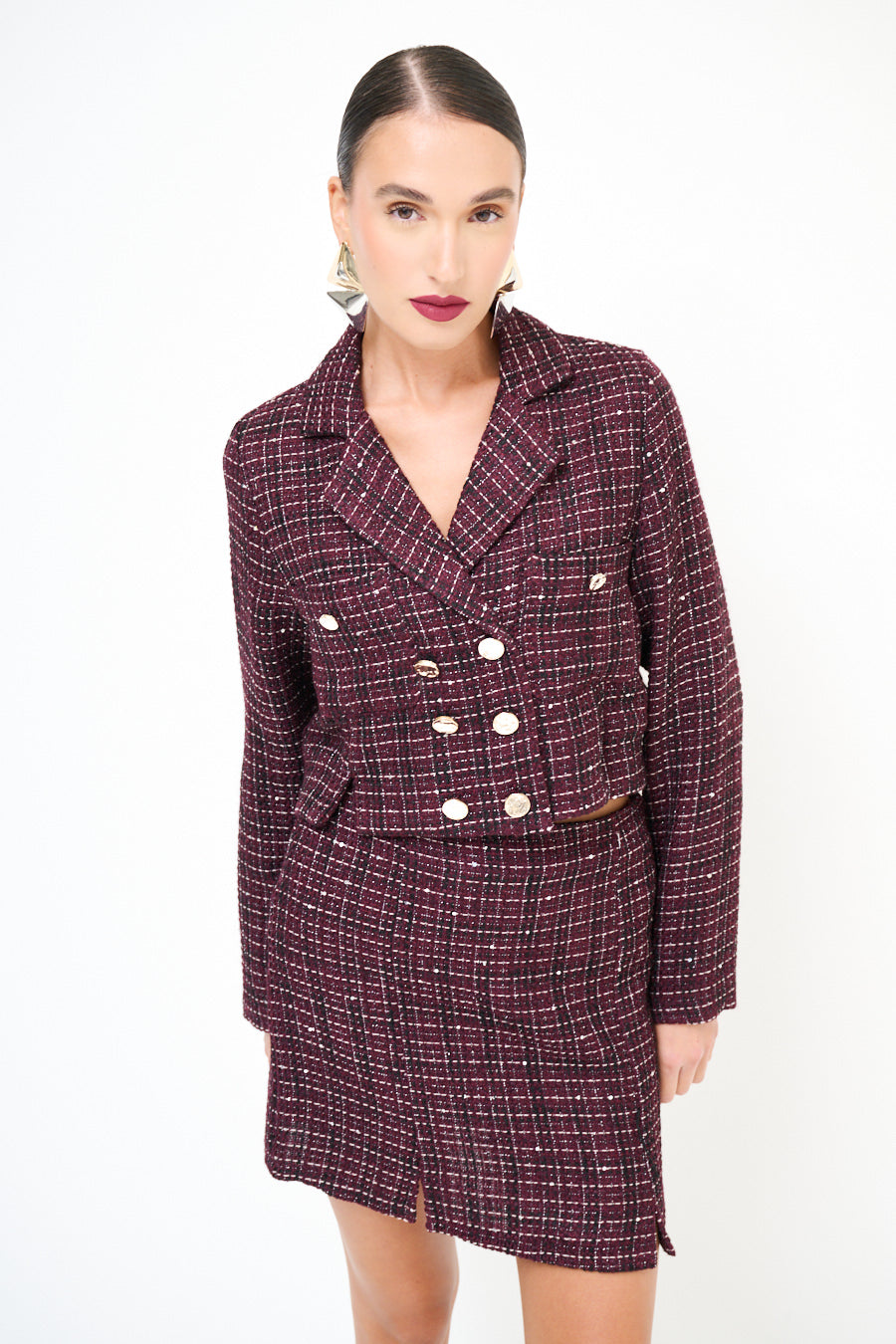 Jaqueta de tweed de tweed de luxo com botões de declaração por atacado