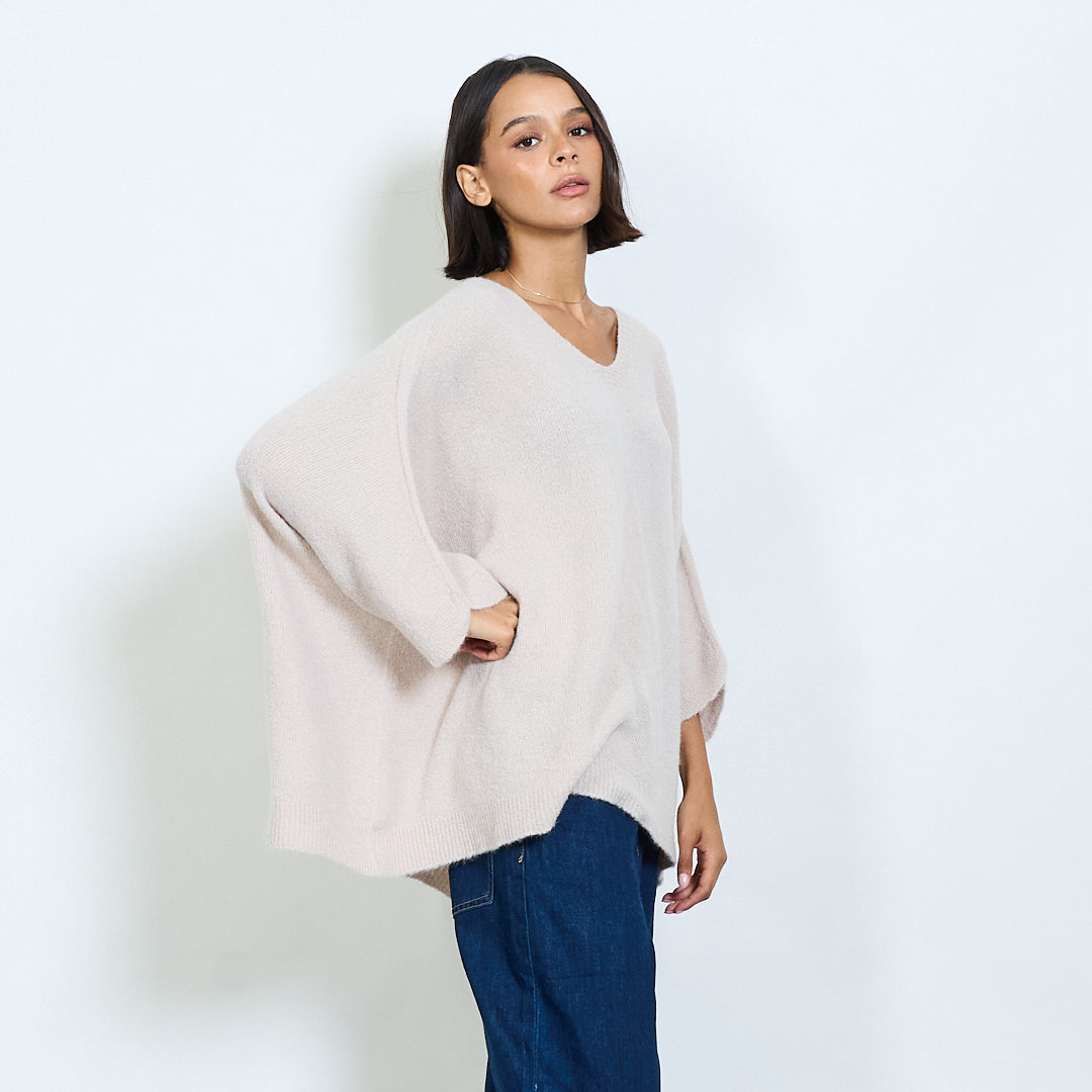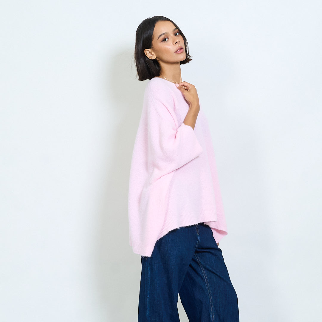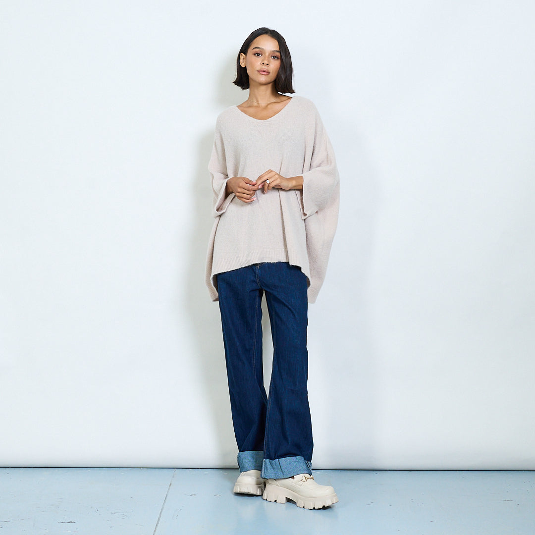 - Tecido de malha macia com uma silhueta relaxada de grandes dimensões