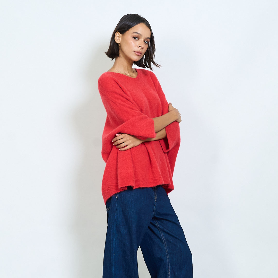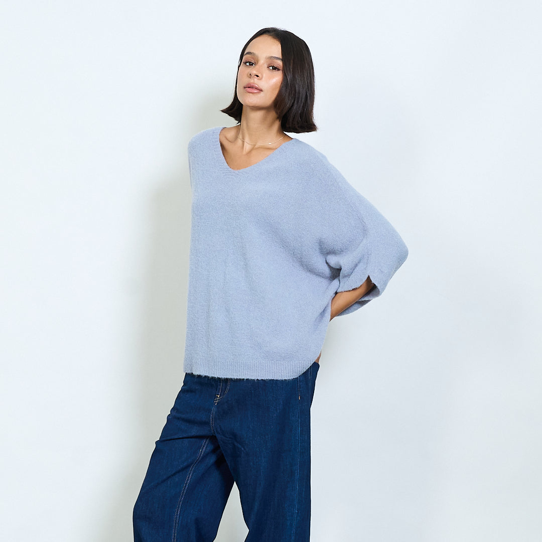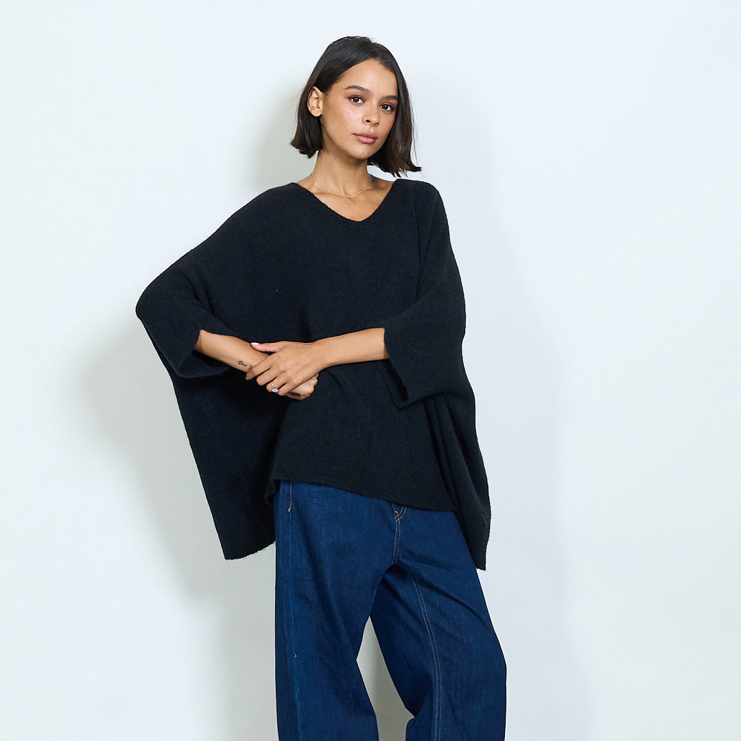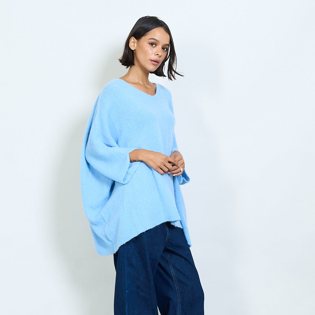 - Tecido de malha macia com uma silhueta relaxada de grandes dimensões
