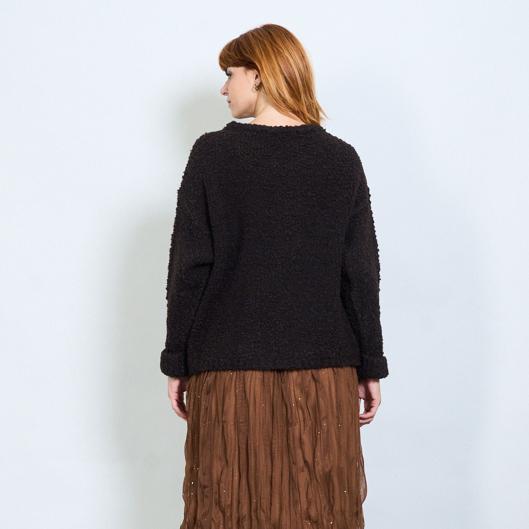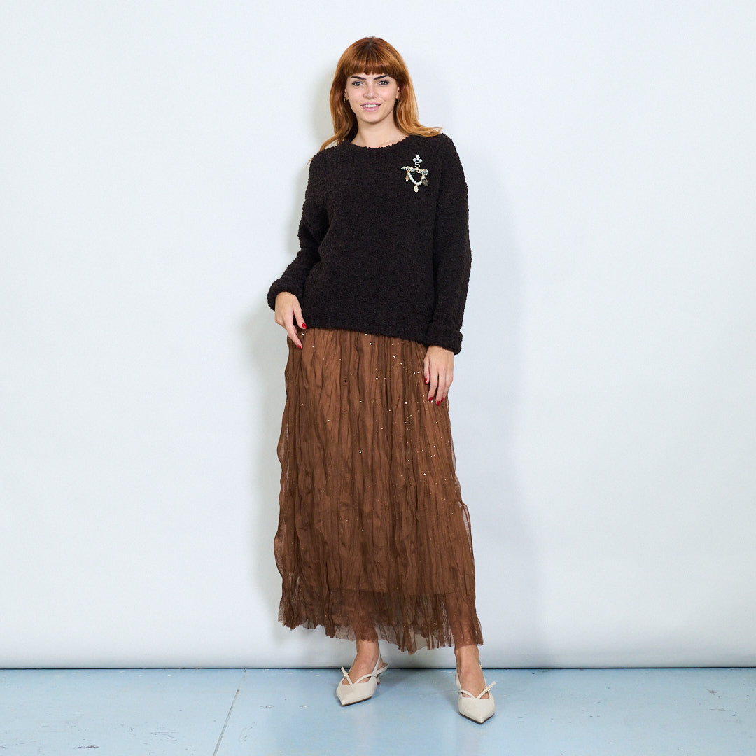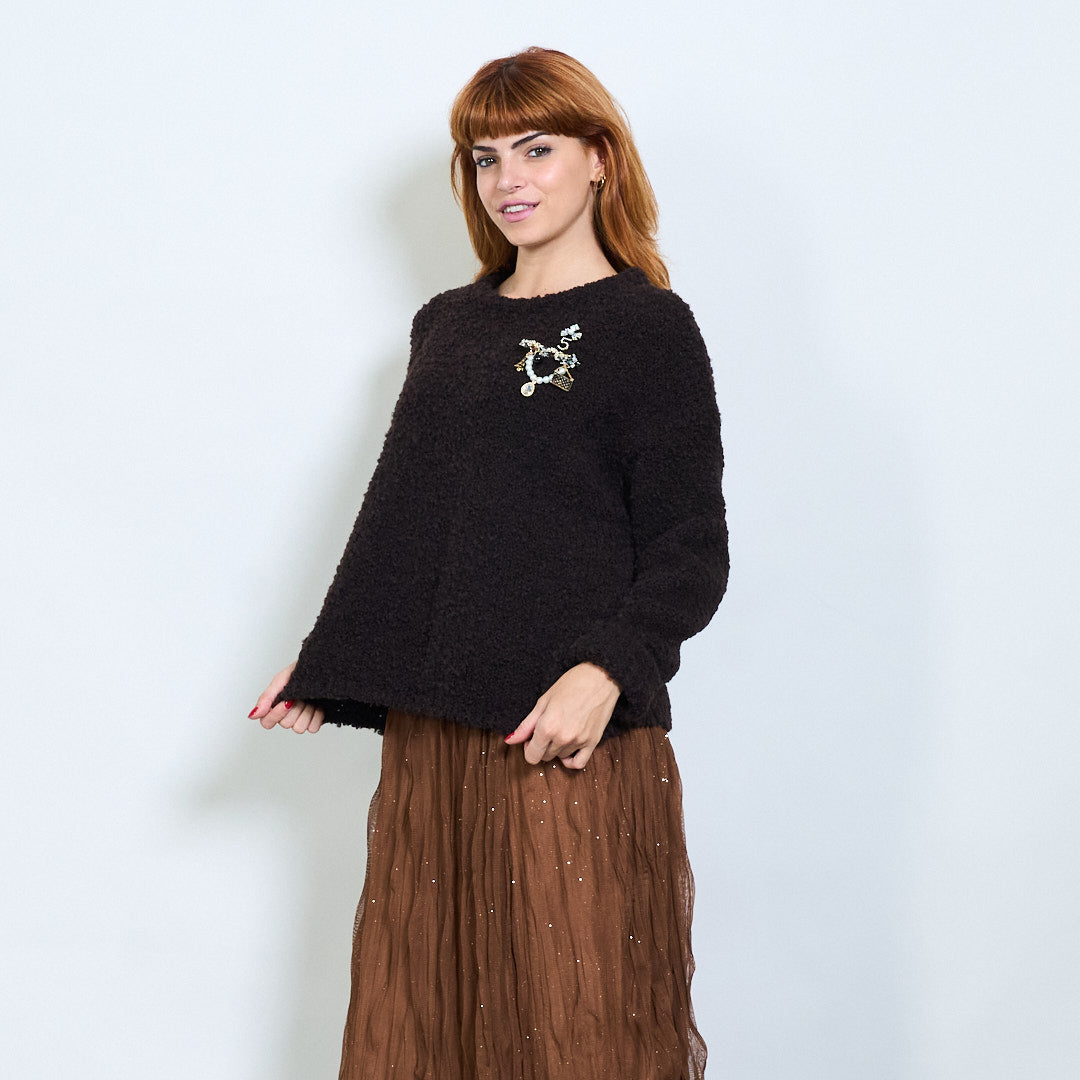 Suéter de malha texturizado com detalhe de broche de jóias por atacado