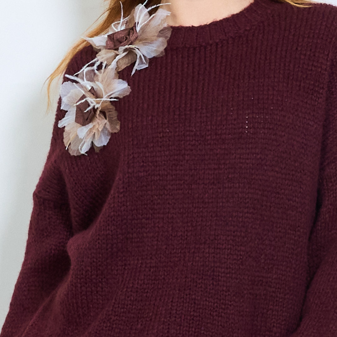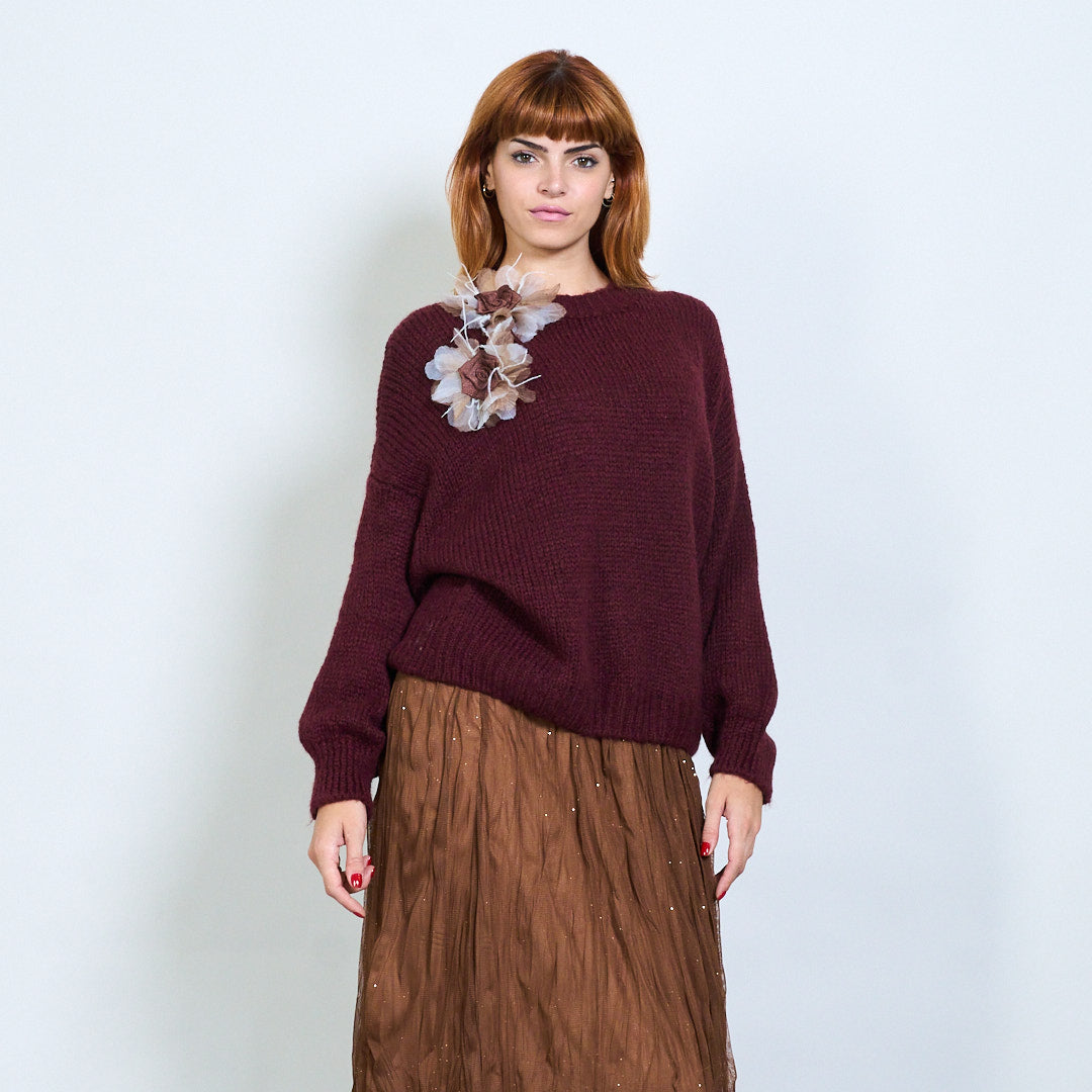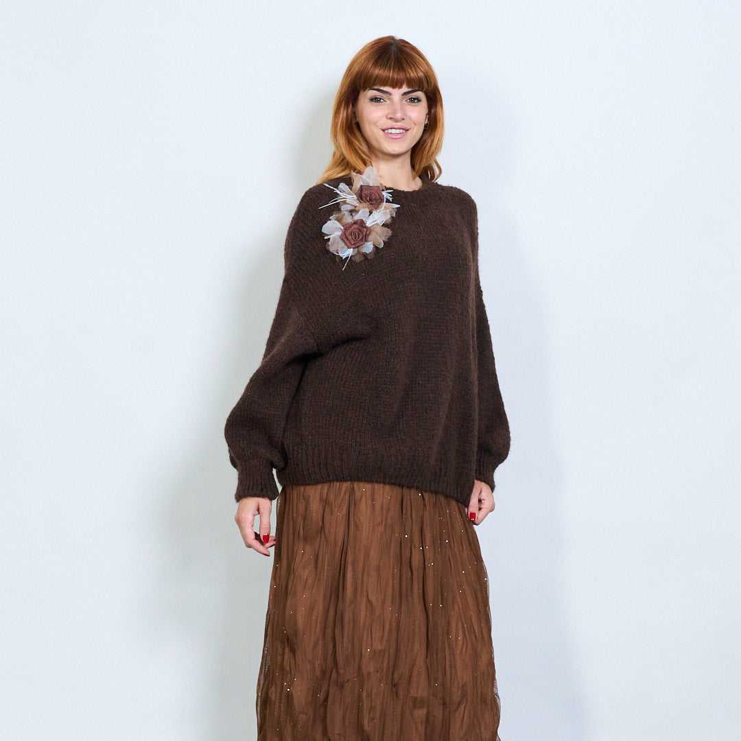Sweater de malha relaxado com apliques florais de grandes dimensões no atacado