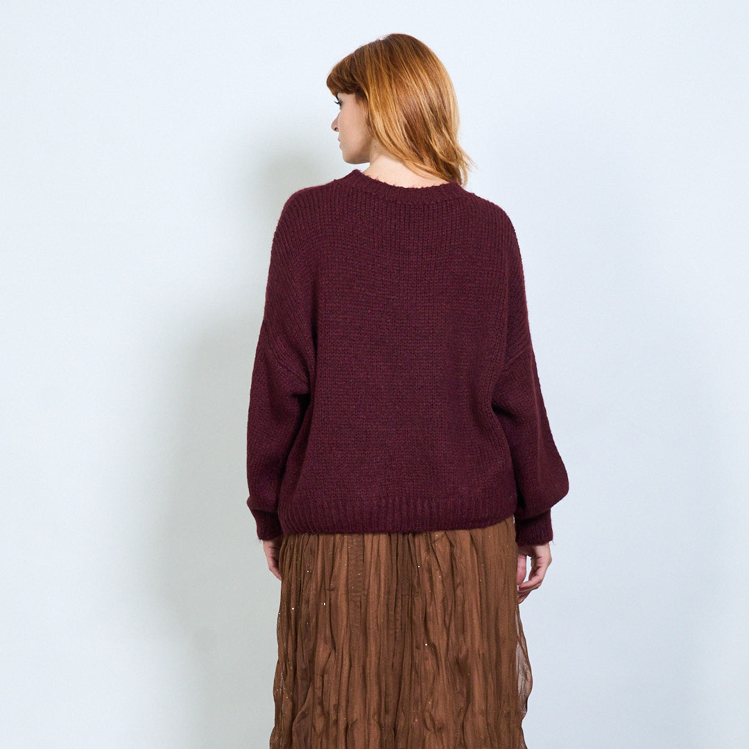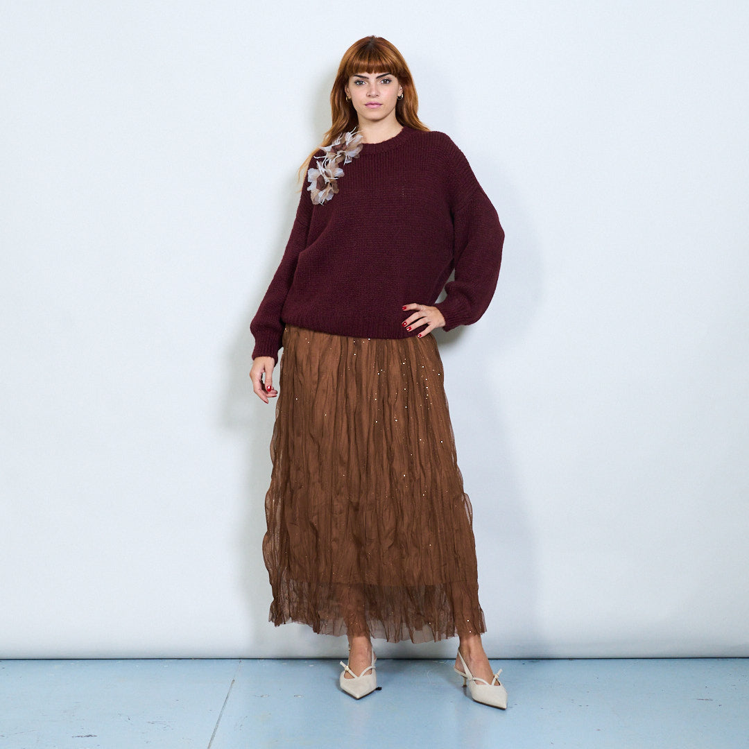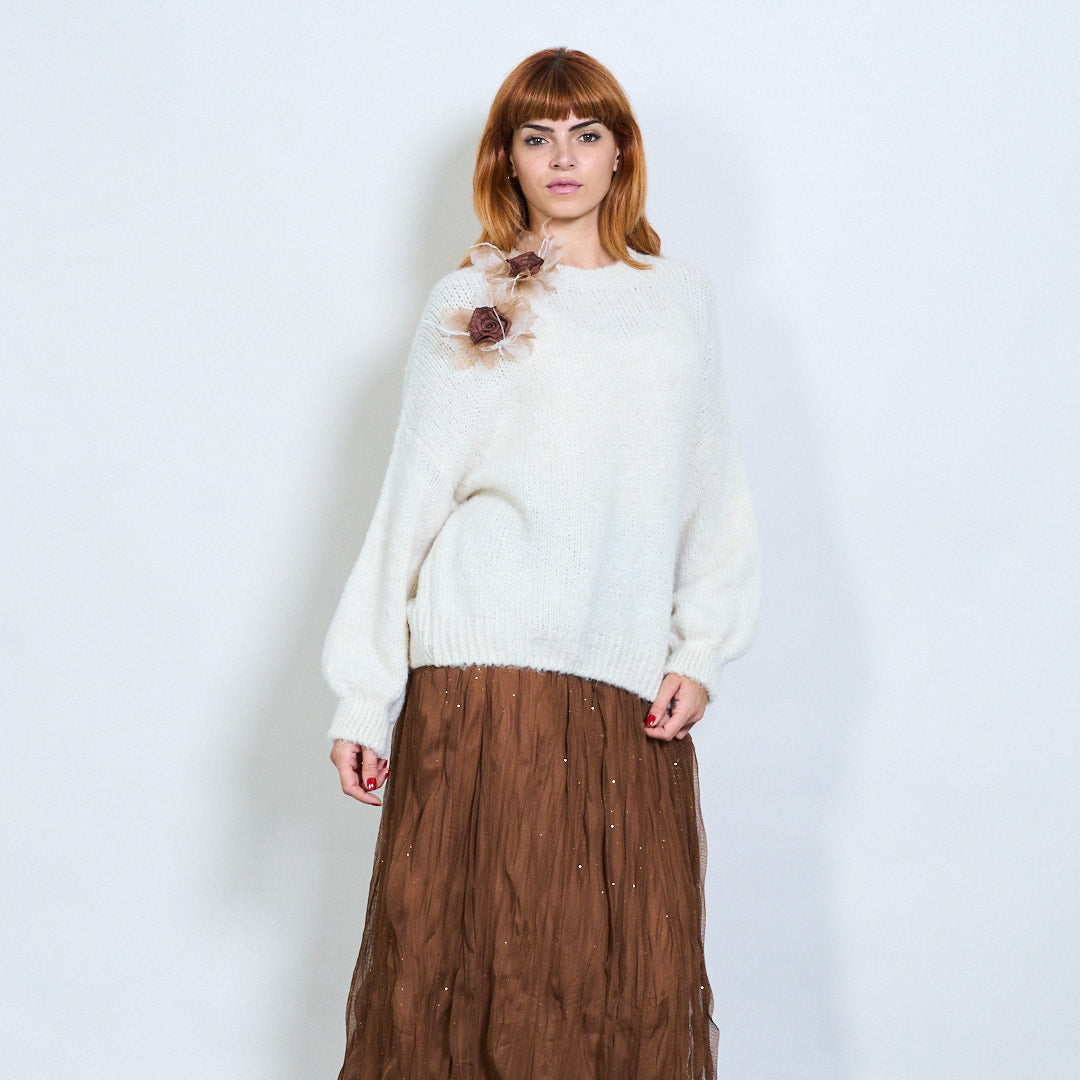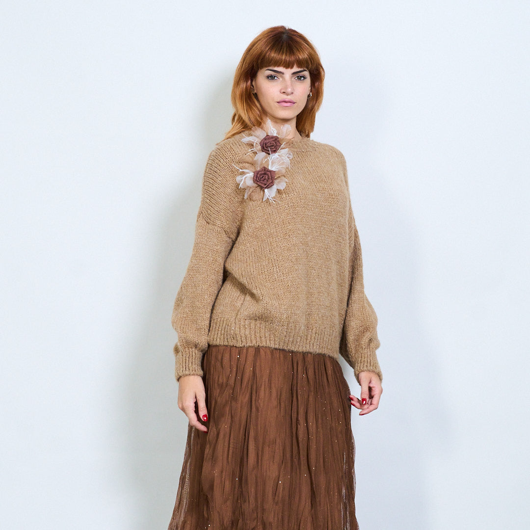 Sweater de malha relaxado com apliques florais de grandes dimensões no atacado