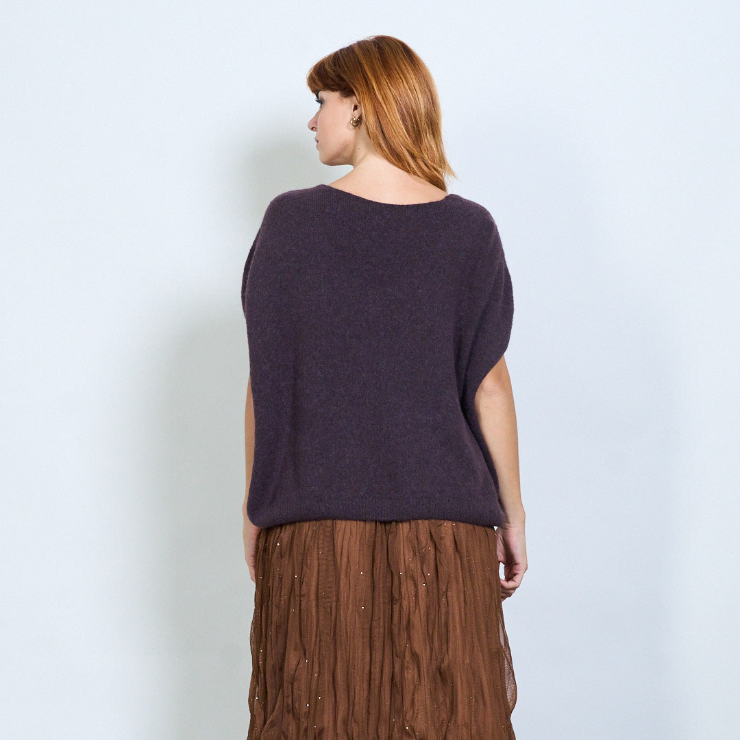 - Decote em v com mangas curtas relaxadas