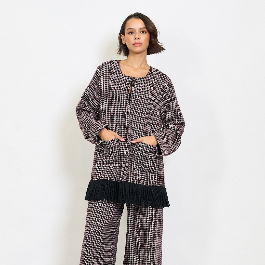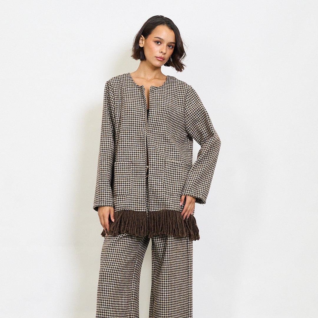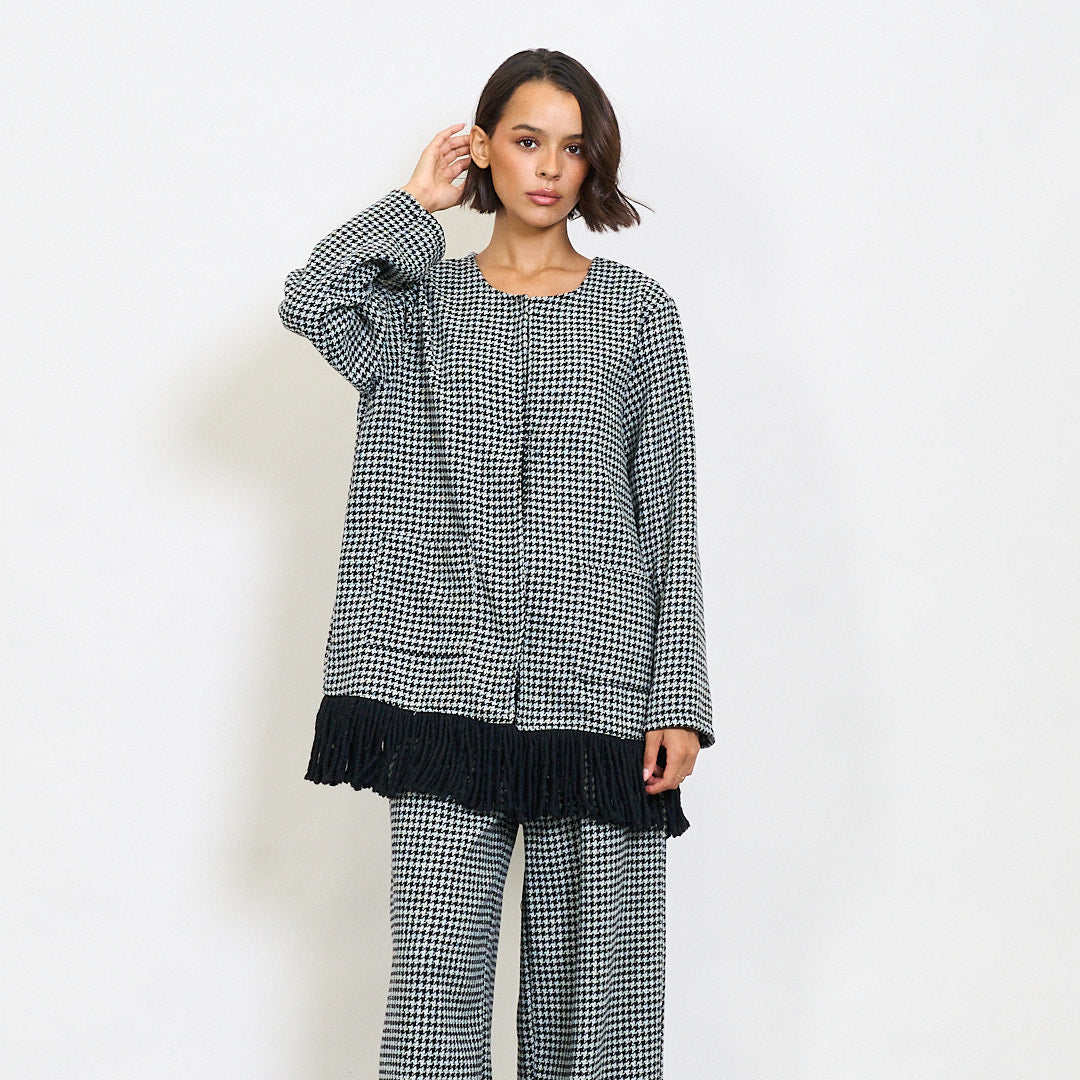 - Padrão Classic Houndstooth com uma silhueta cortada moderna