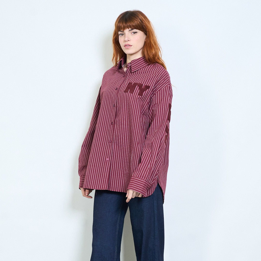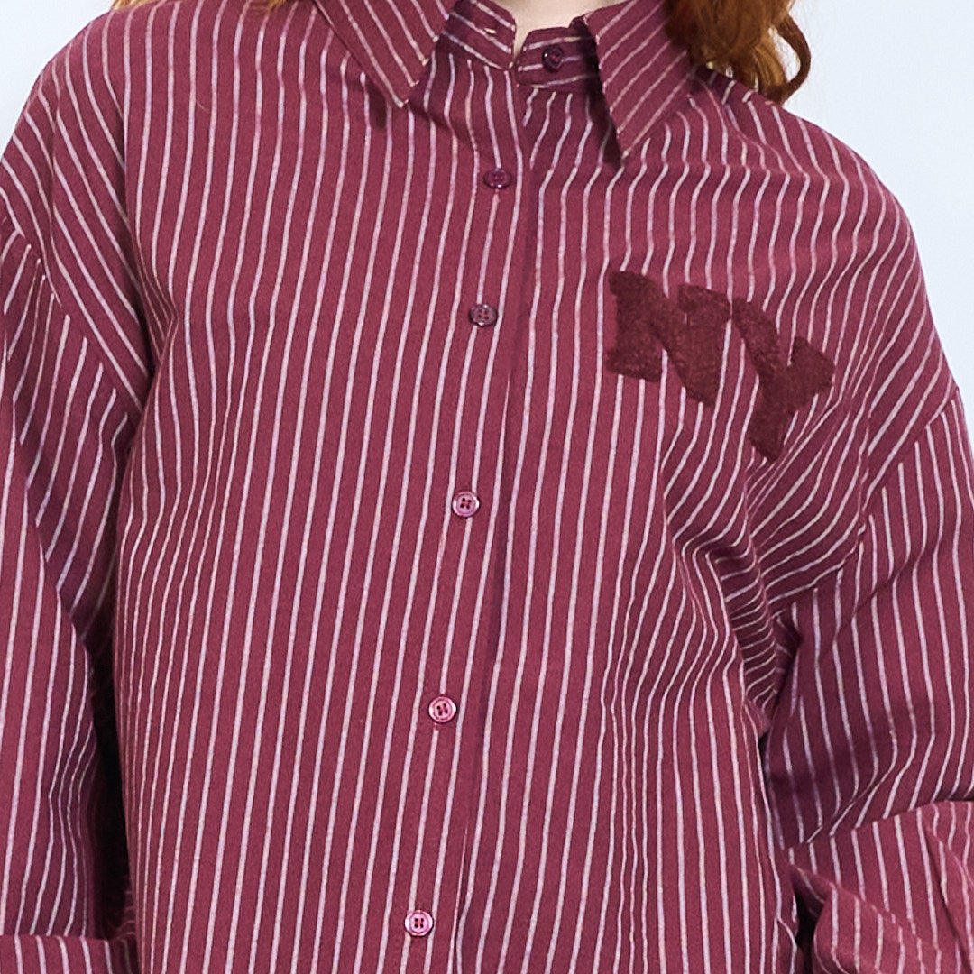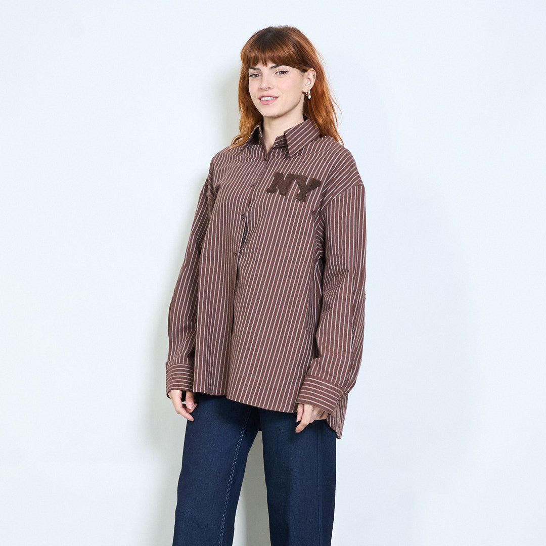 Camisa listrada com botões texturizados “NY” e “WYO” do time do colégio no atacado