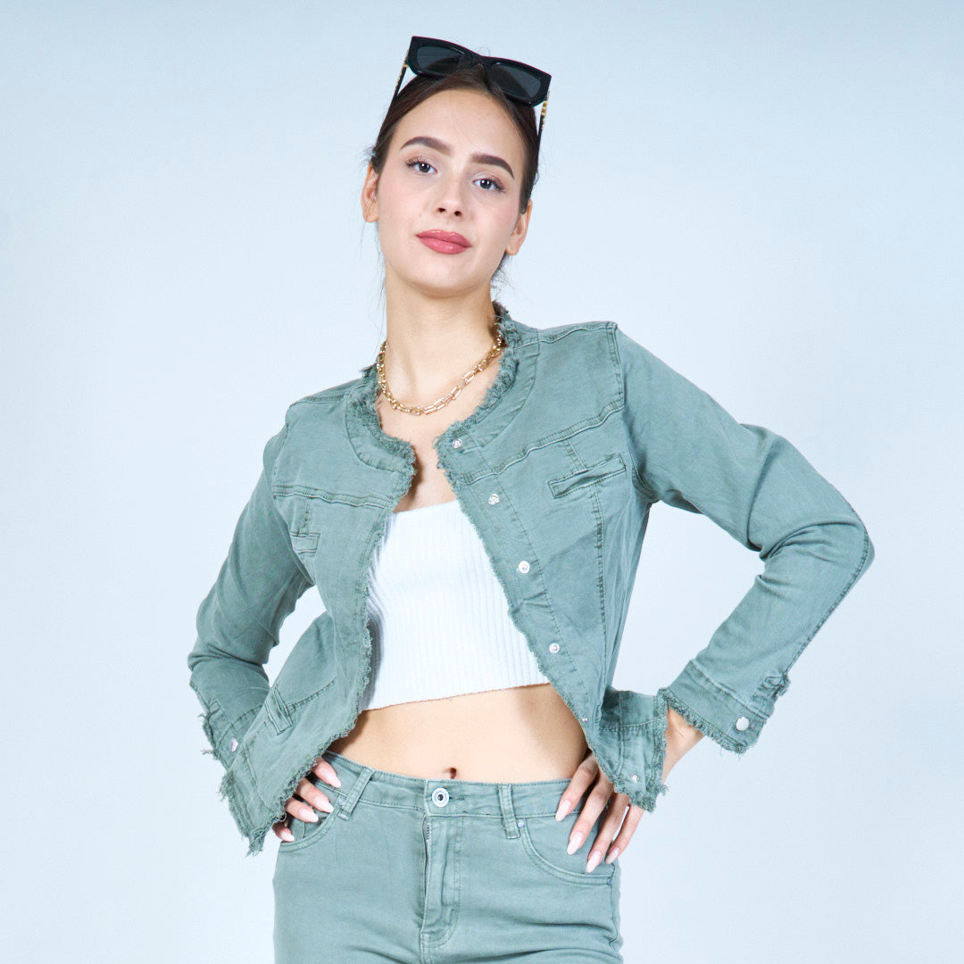 - Bolsos no peito com abas abotoadas para uma aparência clássica
