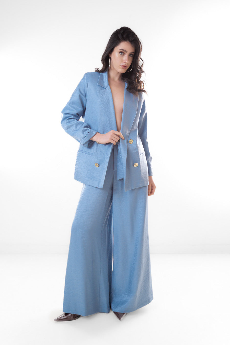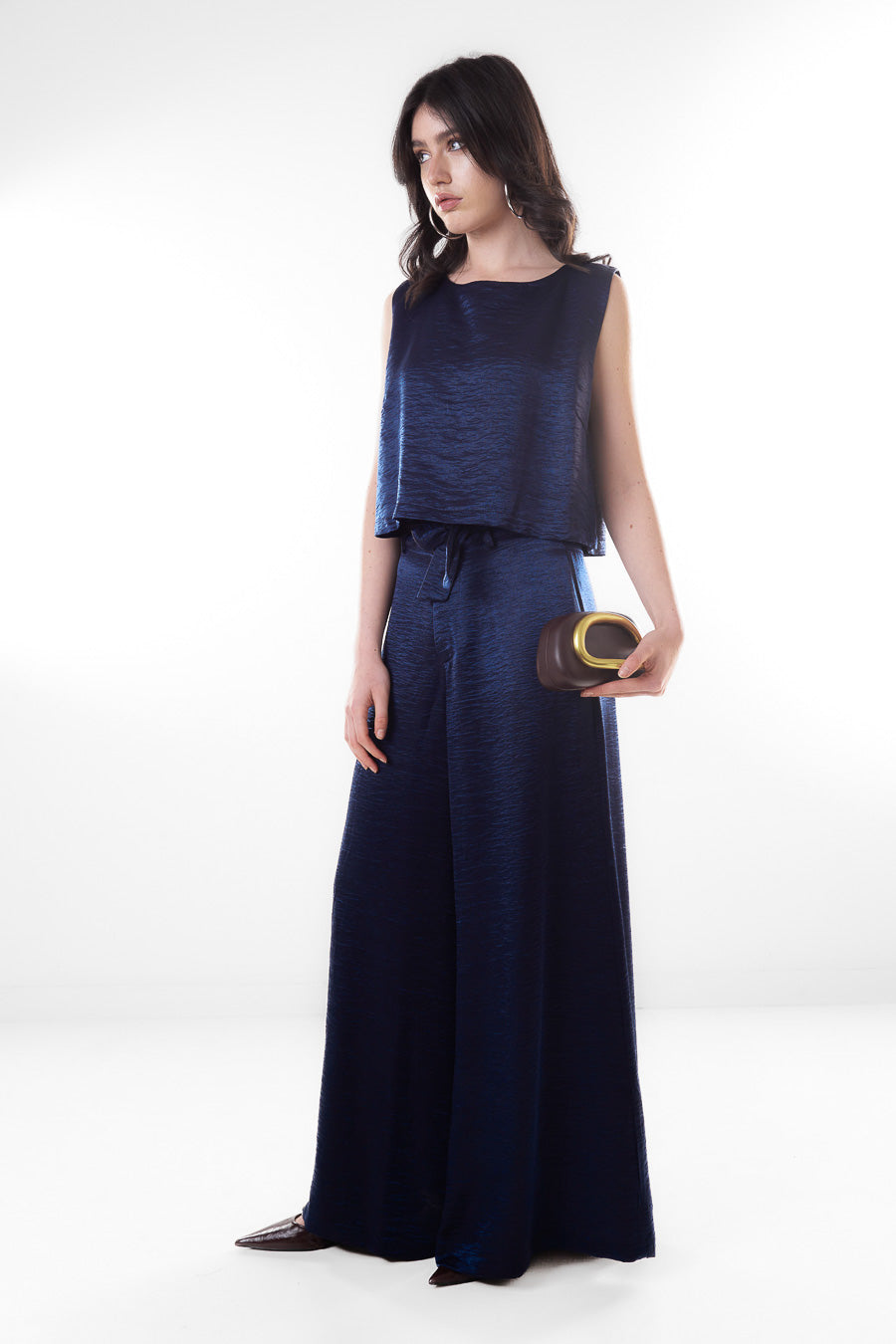 - Corte largo nas pernas para uma silhueta fluida e alongada