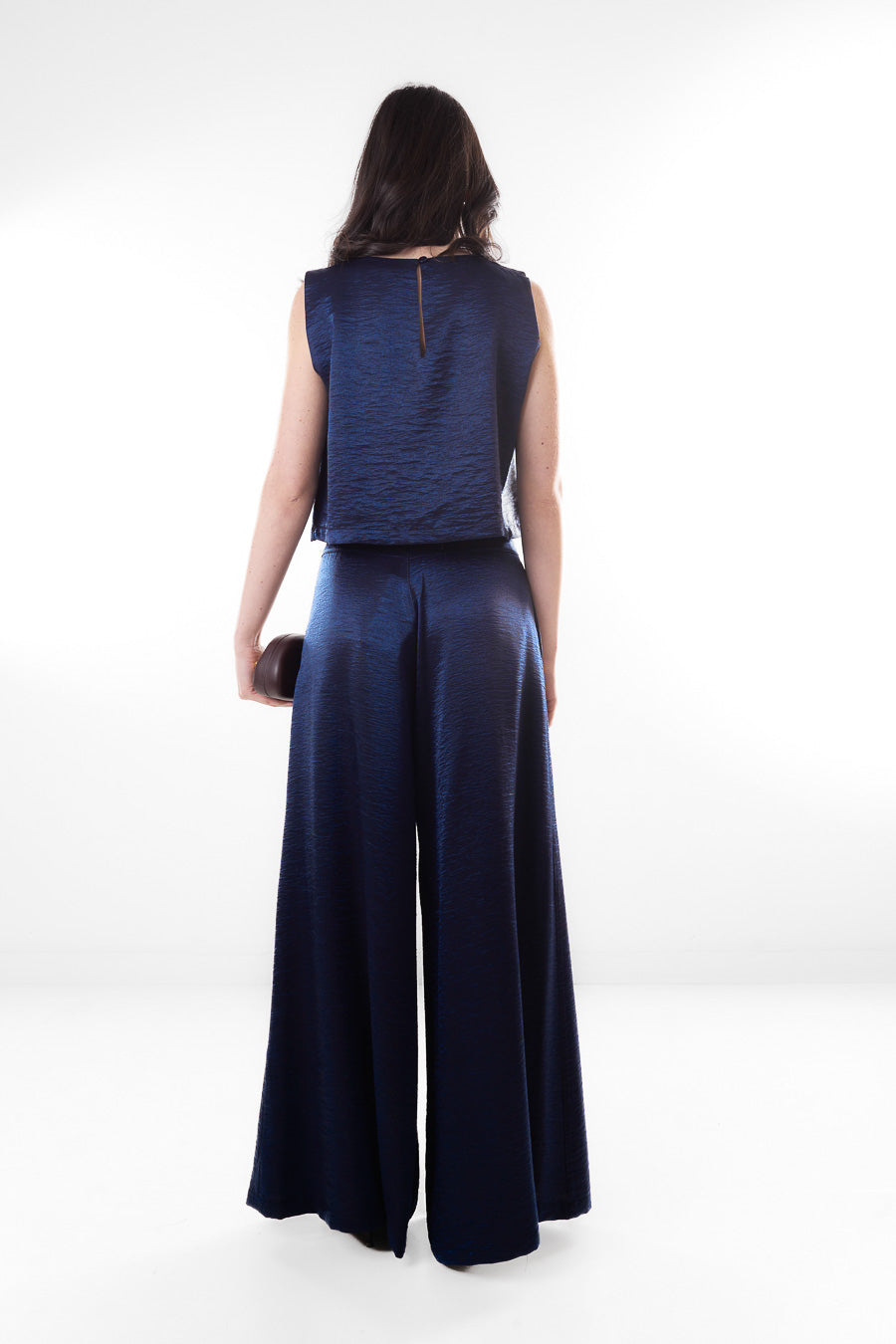 Calças largas com efeito cetim e cintura alta esvoaçantes no atacado