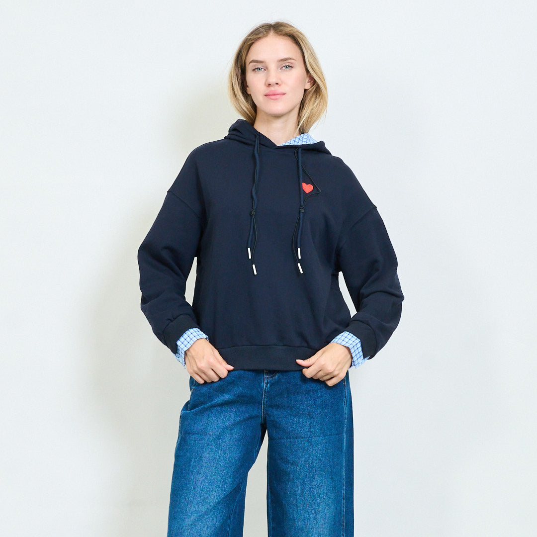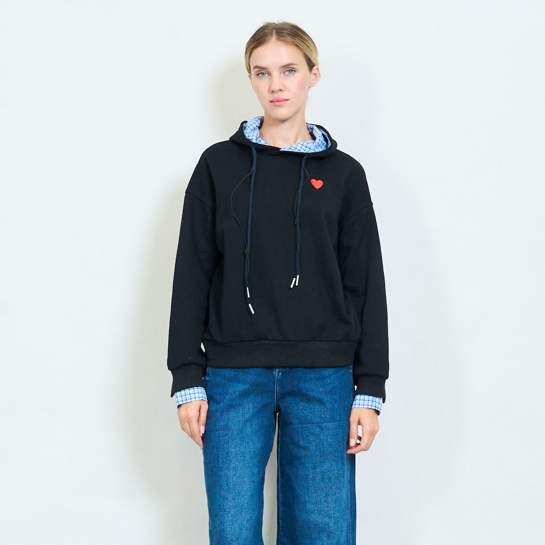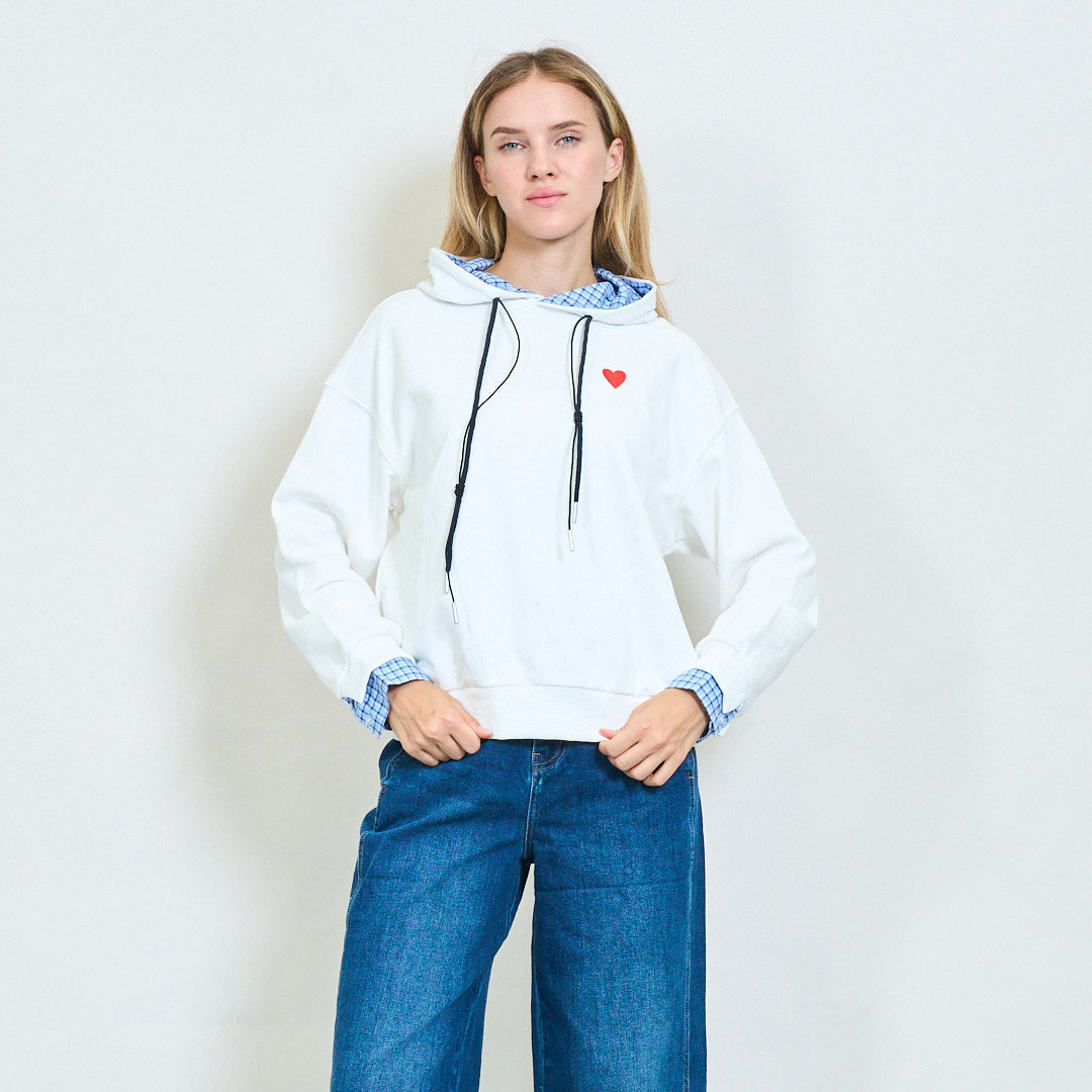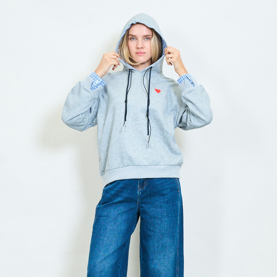 - Hoodie de ajuste descontraído com pequenos detalhes do coração bordados no peito