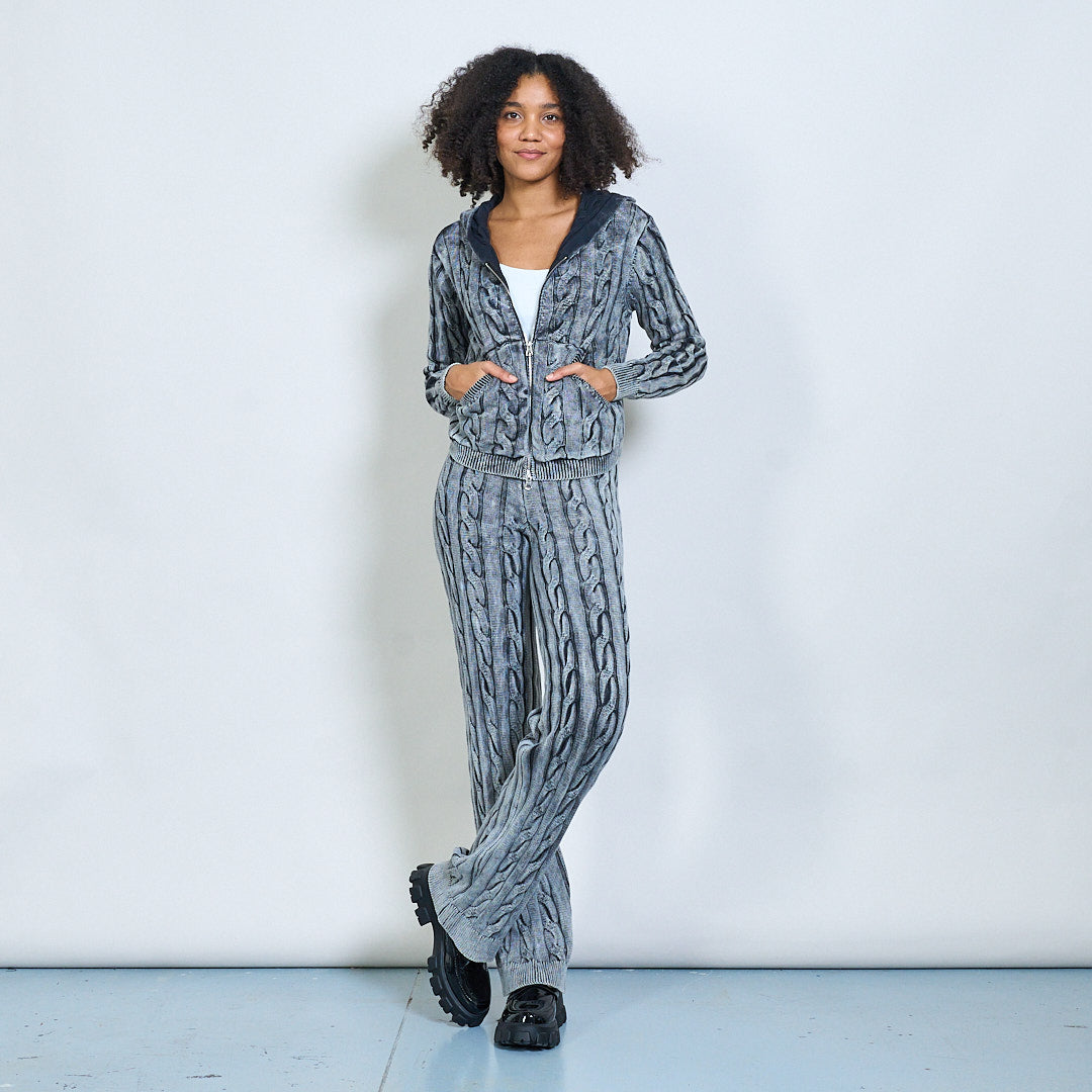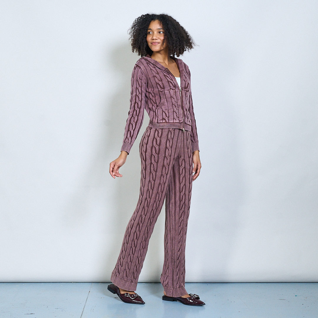 Conjunto de capuz e calças de malha de malha de cabo