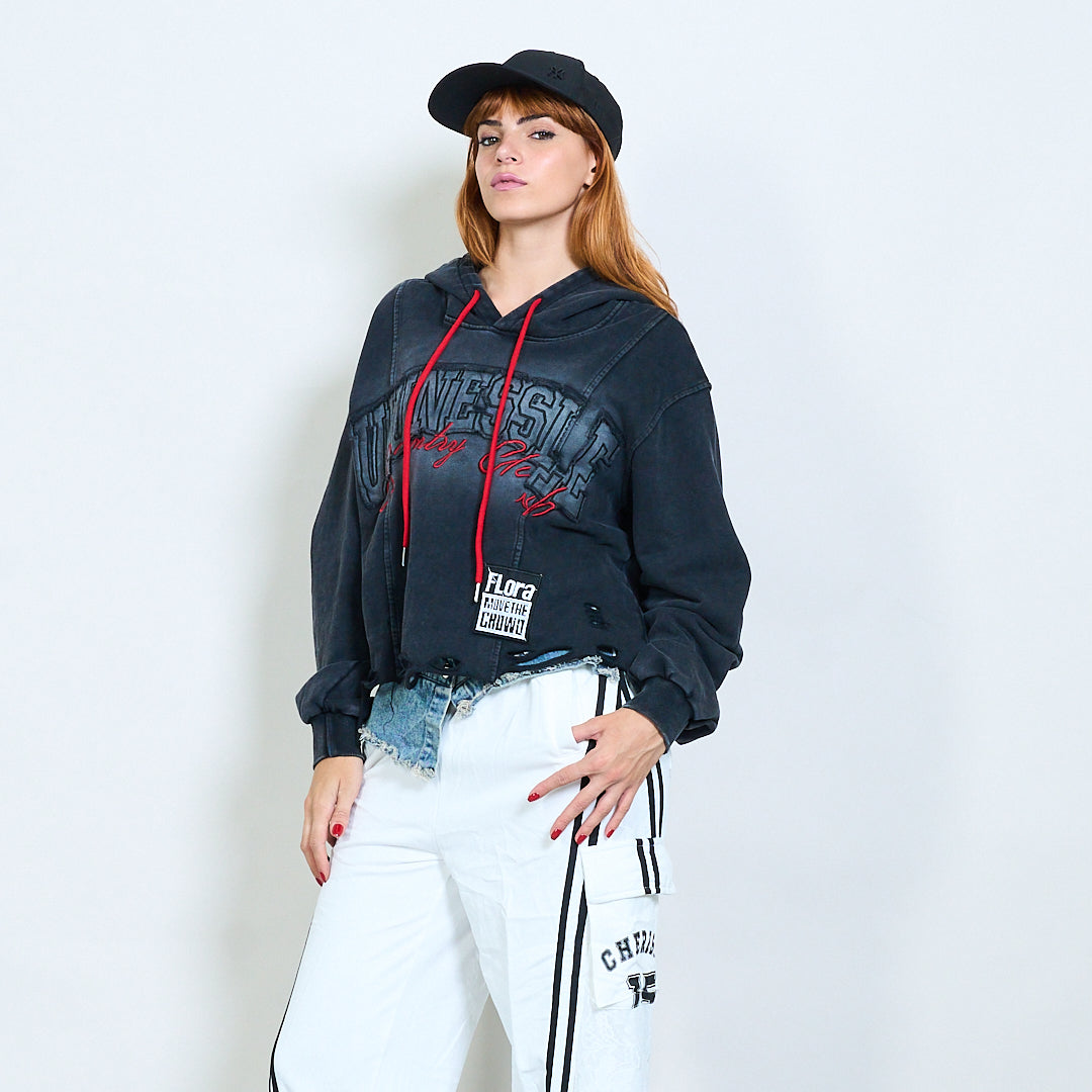 - Decote com capuz com interior suave