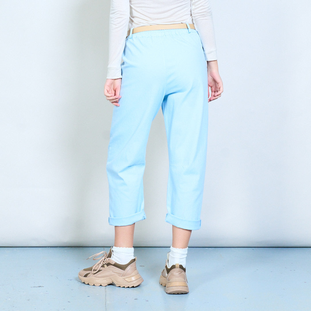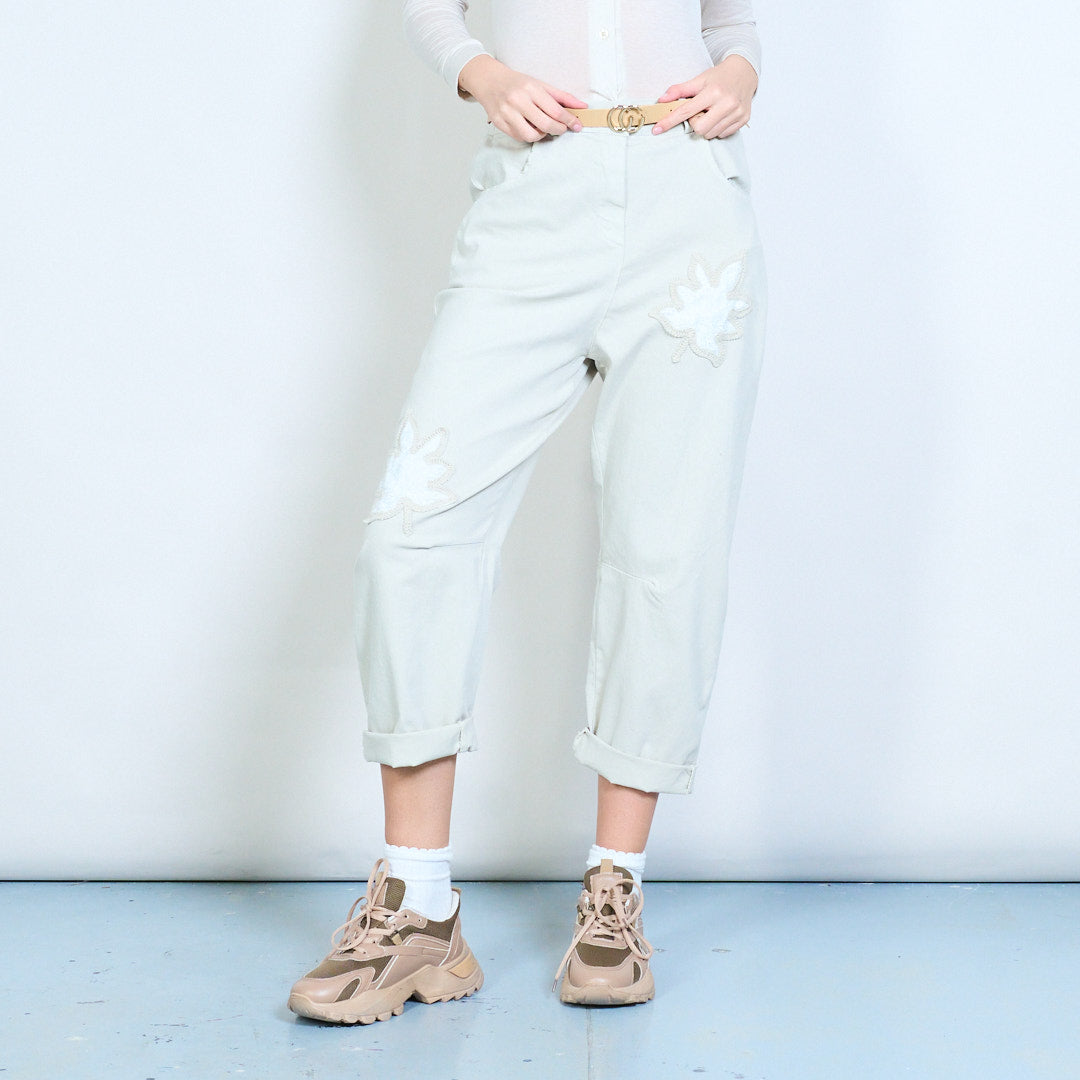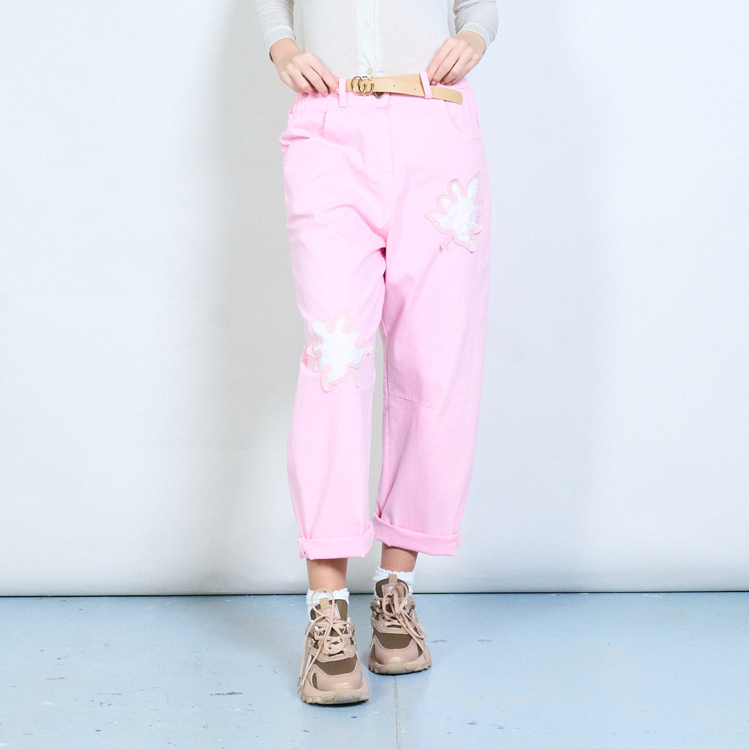 Calças de corte relaxado com detalhe de aplique na cintura elástica no atacado