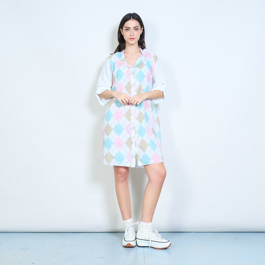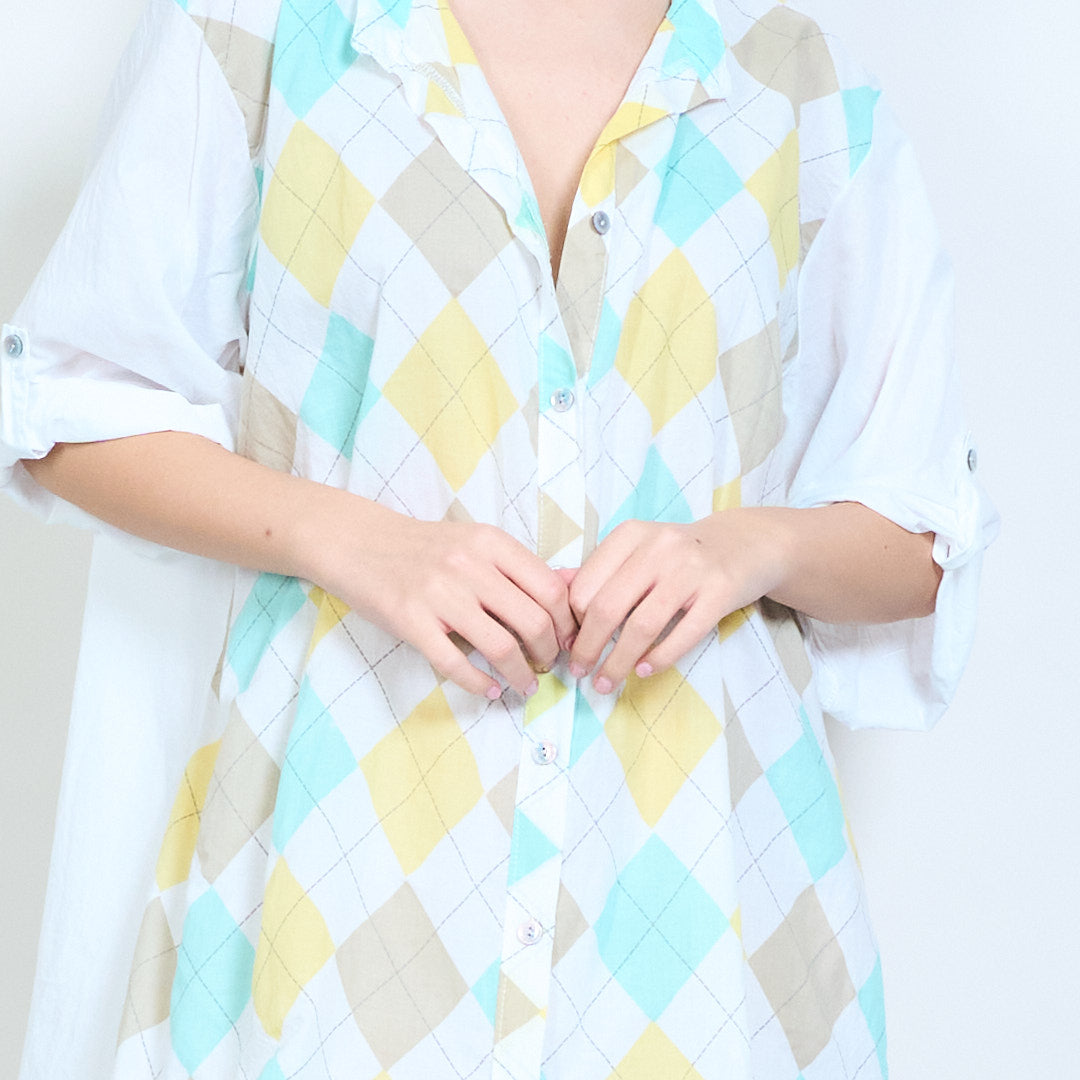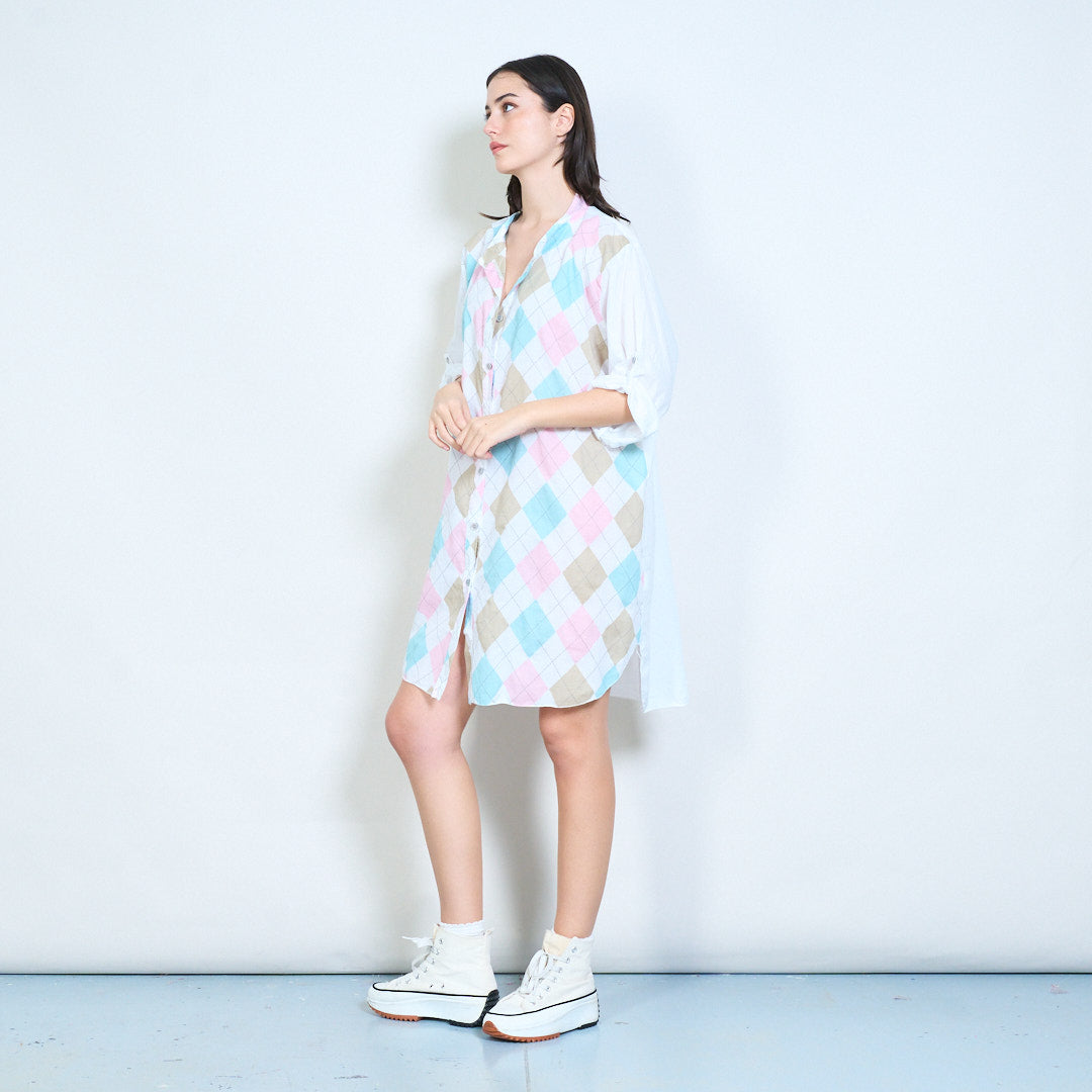 Camisa de botão relaxada com palangre Argyle com estampa de diamante no atacado