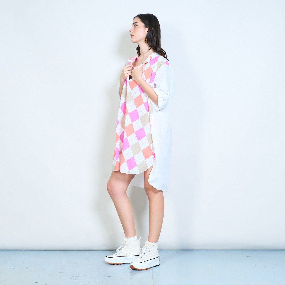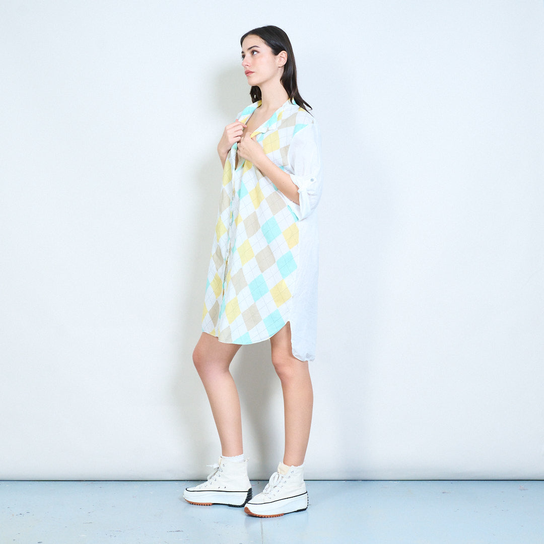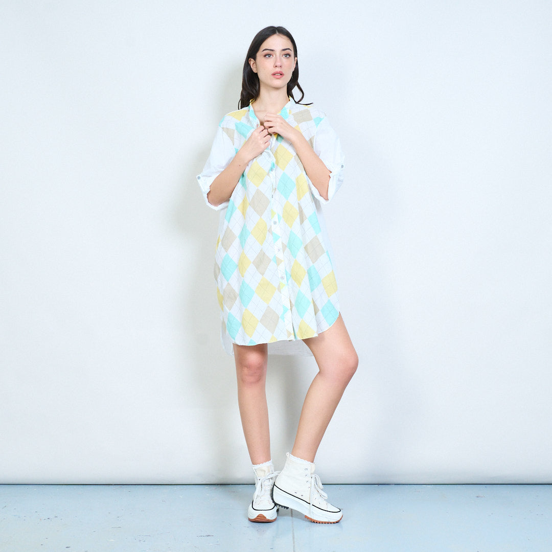 Camisa de botão relaxada com palangre Argyle com estampa de diamante no atacado