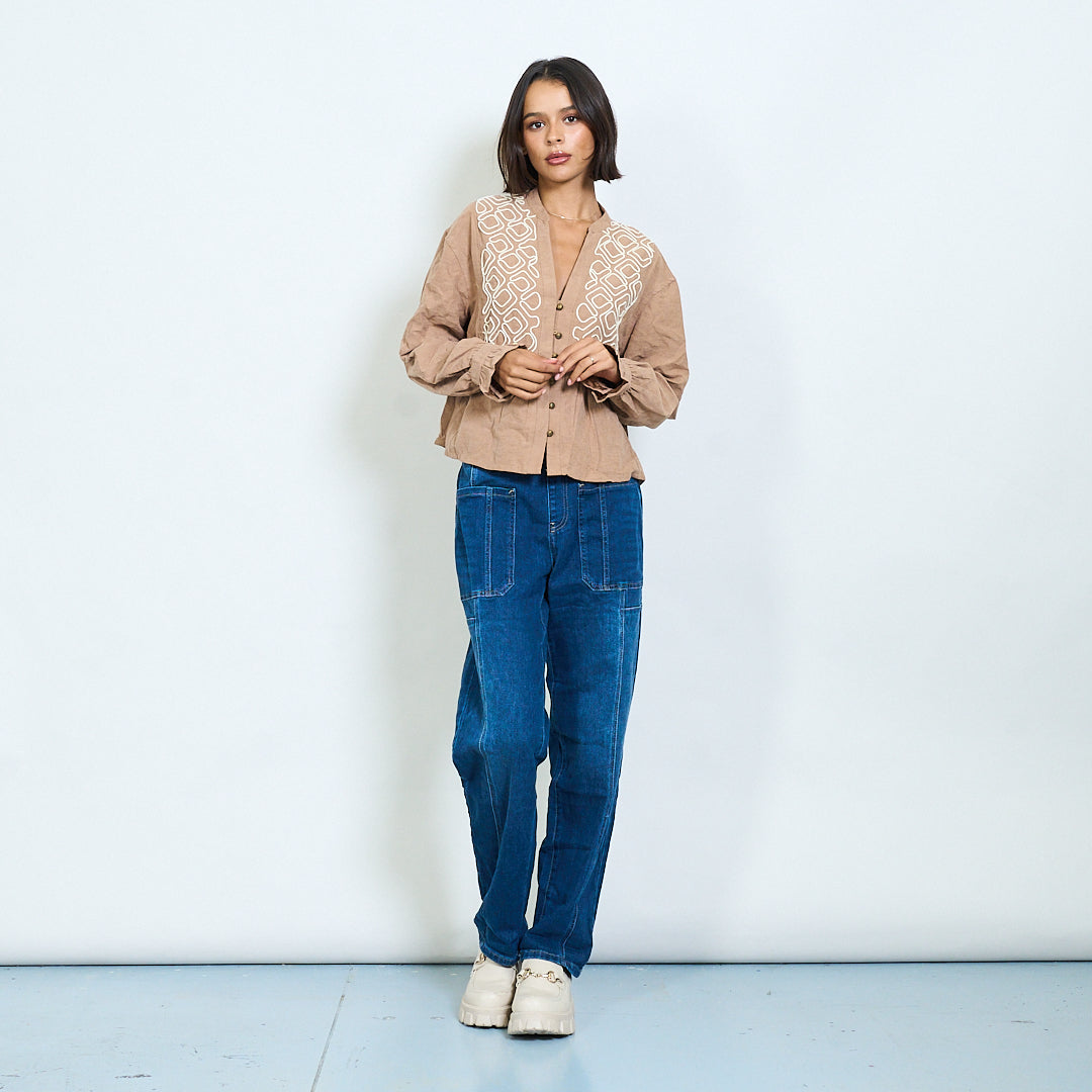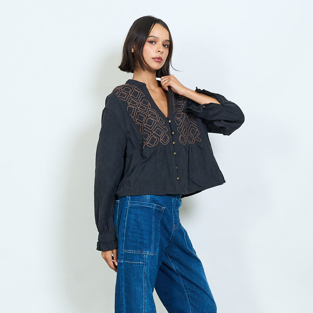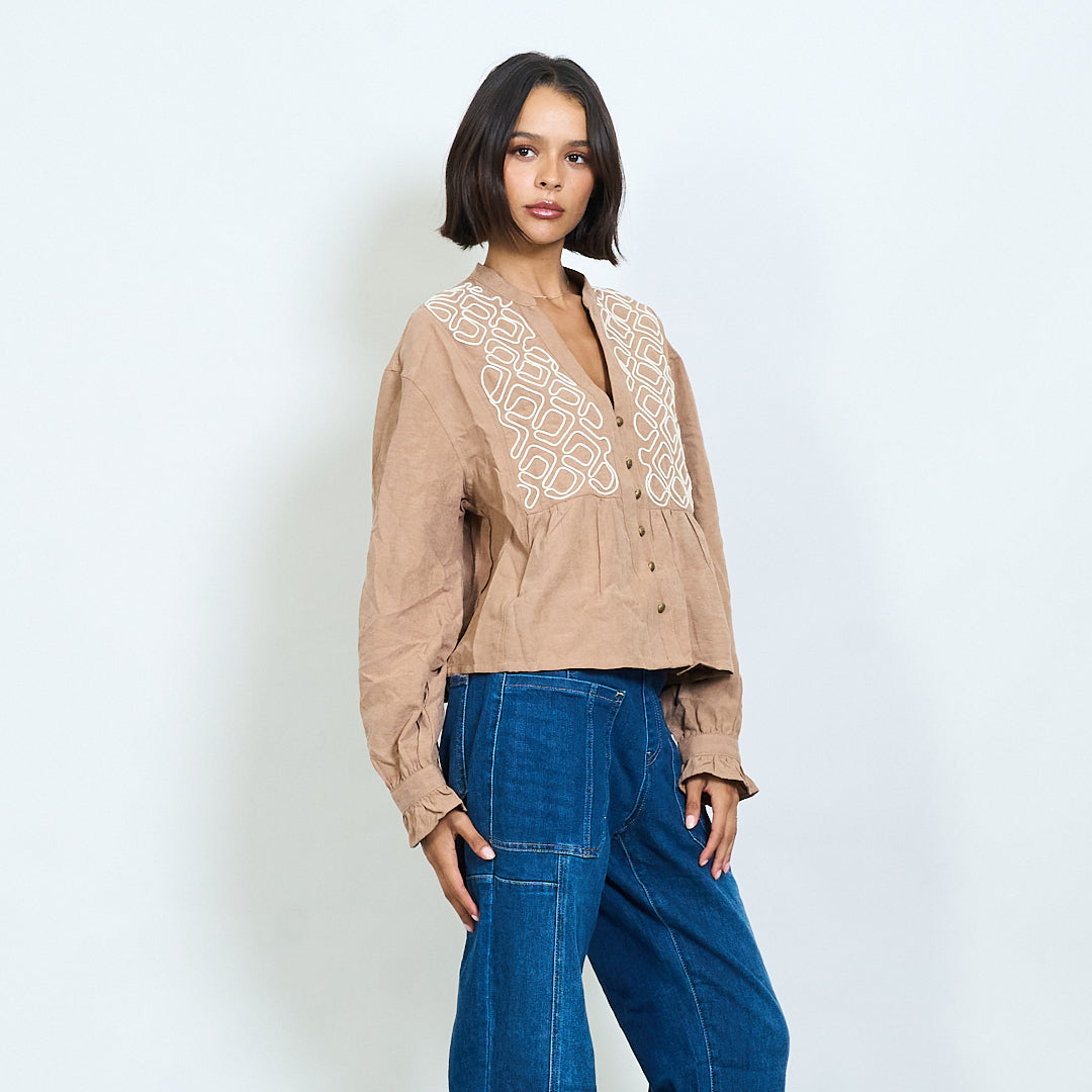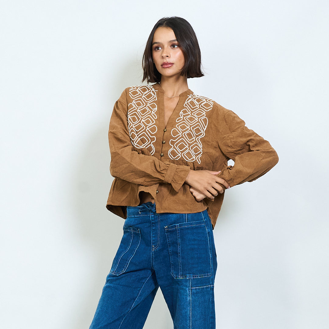 Блузка V-образного выреза с геометрическим вышитым ягом оптом