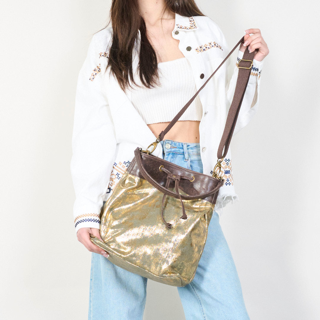 Металлическая кожаная сумка с закрытием шнурки оптом