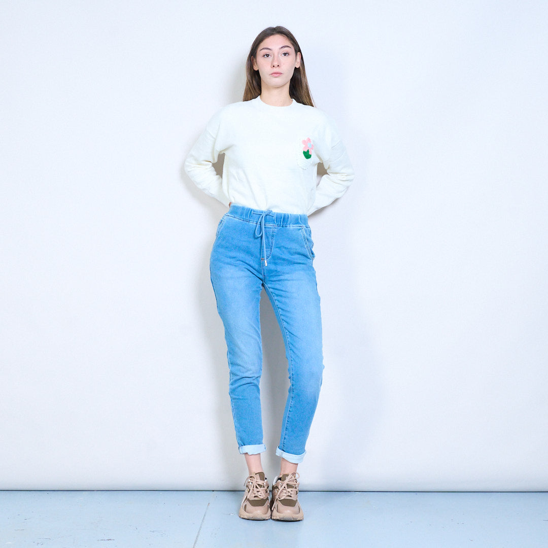 Джинсы узкого кроя из денима с эластичной резинкой на талии оптом