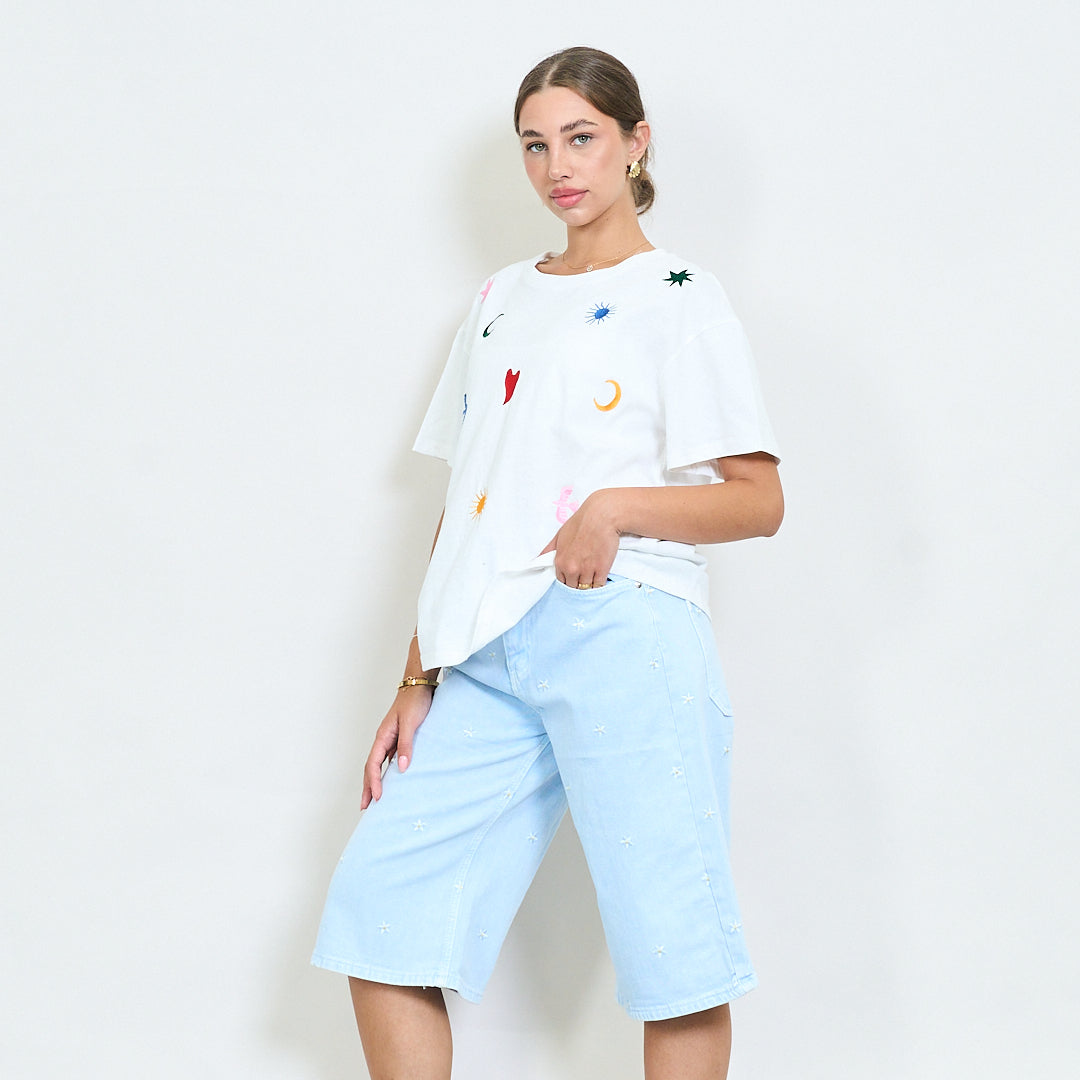 Причудливая символ-эмбруалированная расслабленная футболка оптом