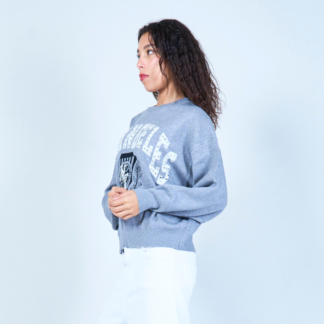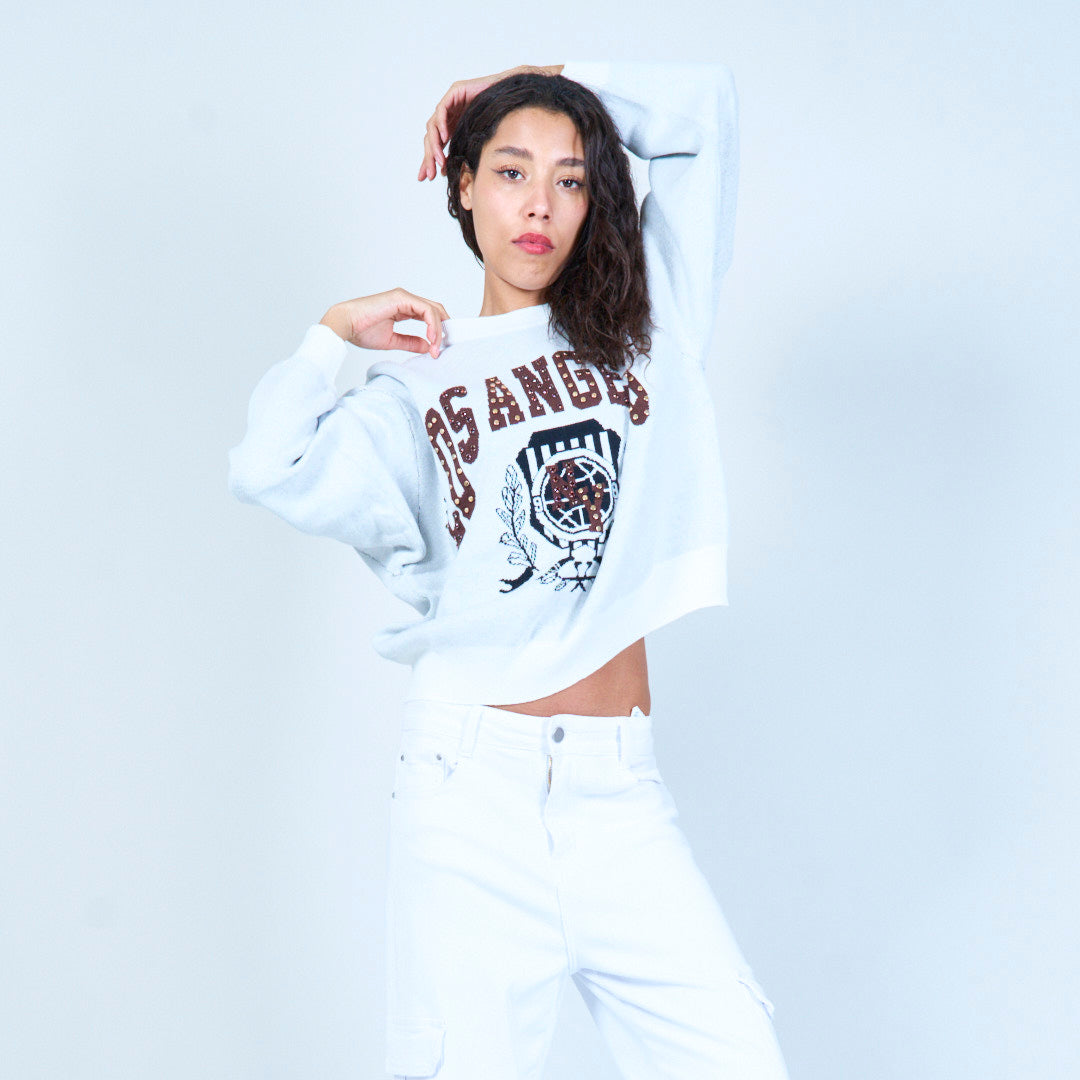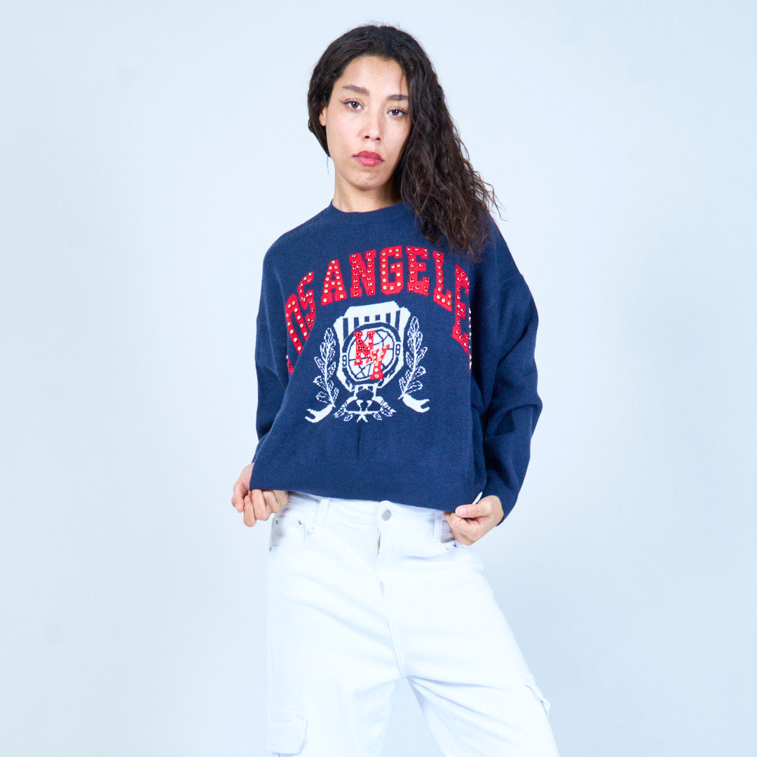 Свитер заявления в Лос -Анджелесе с подробностями с табличкой оптом