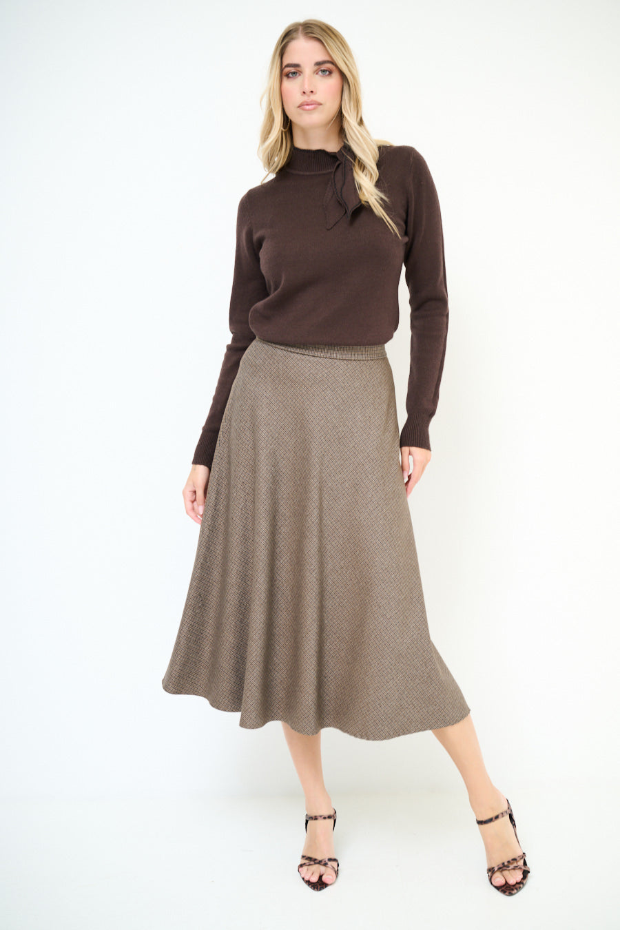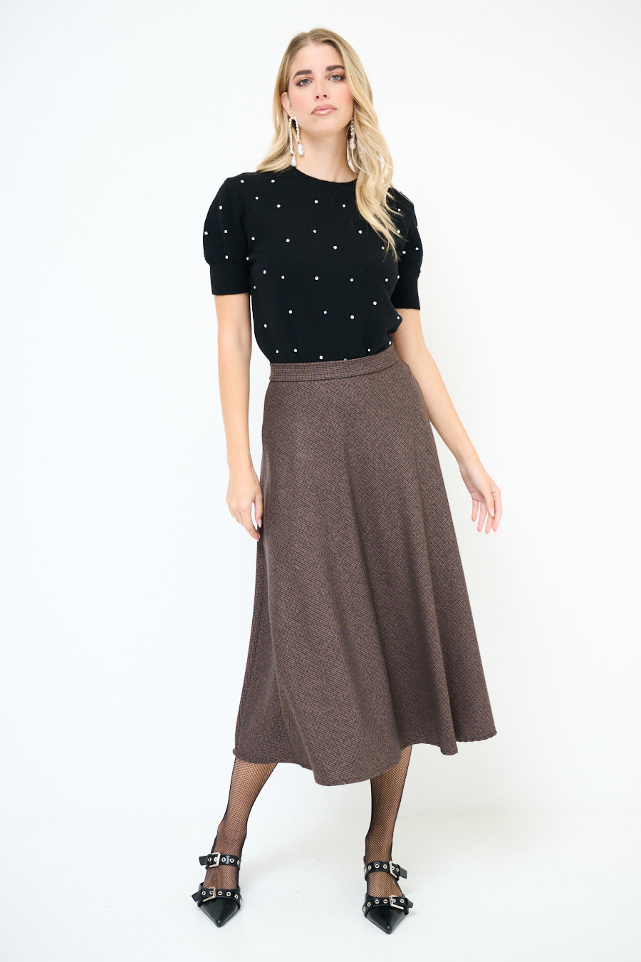 - Универсальный дизайн, который легко сочетается с блузками или трикотажем.