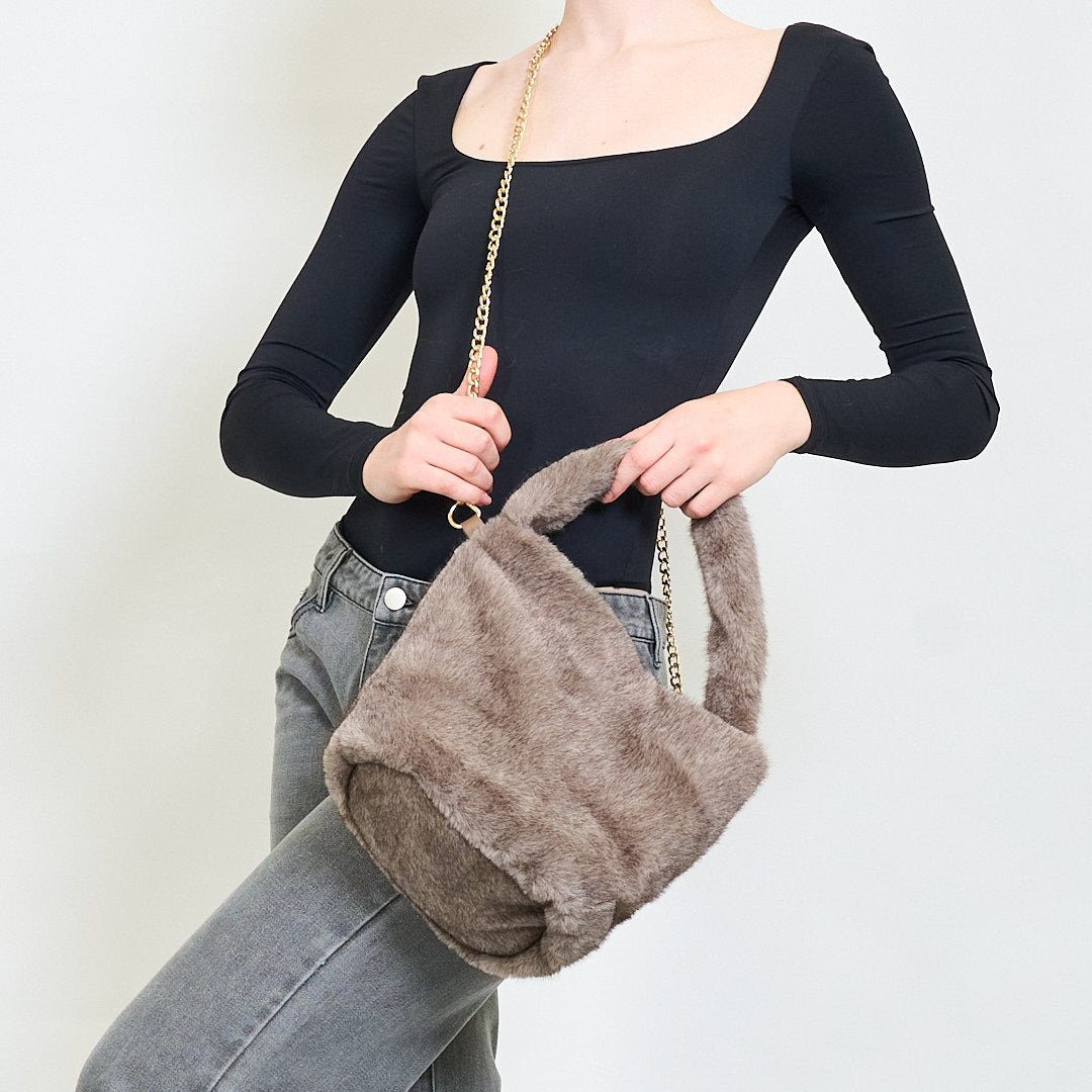 Мини -сумочка с плюшевым фьюром с ремешком с золотой цепью оптом