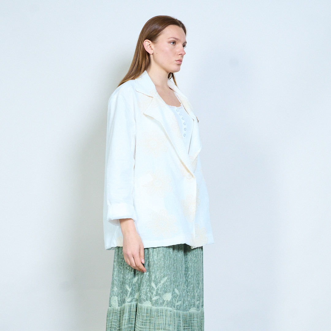 - Легкий пиджак свободного кроя с мягкой посадкой.