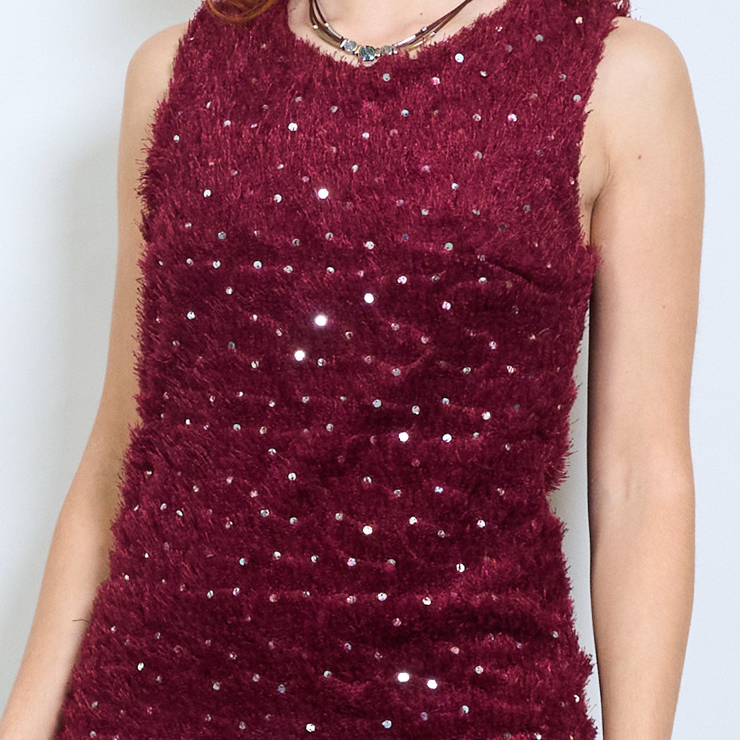 - Элегантное мини-платье без рукавов из мягкой фактурной ткани для шикарного, вневременного образа.