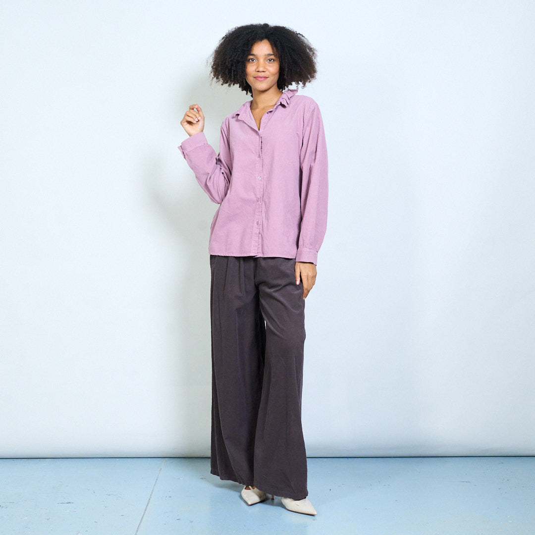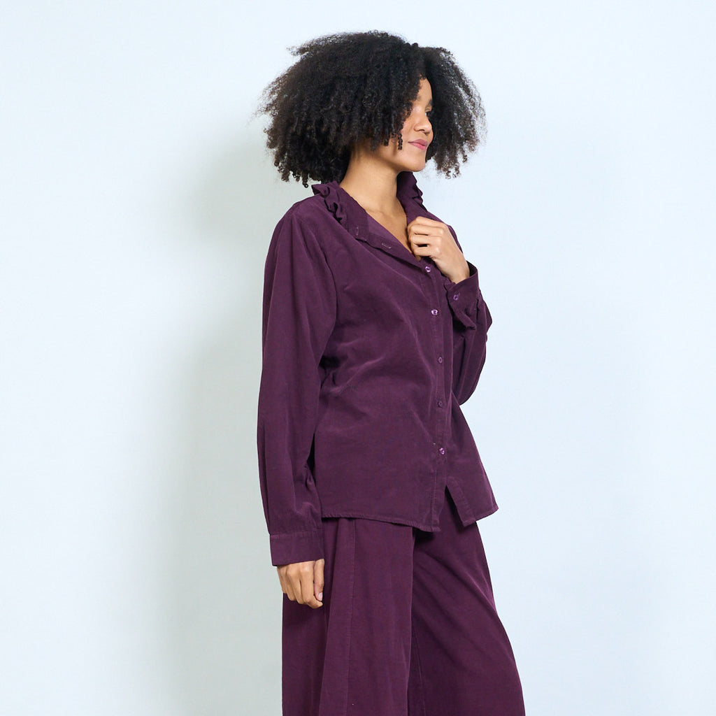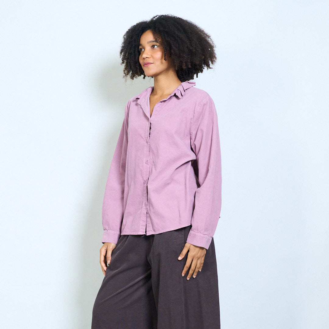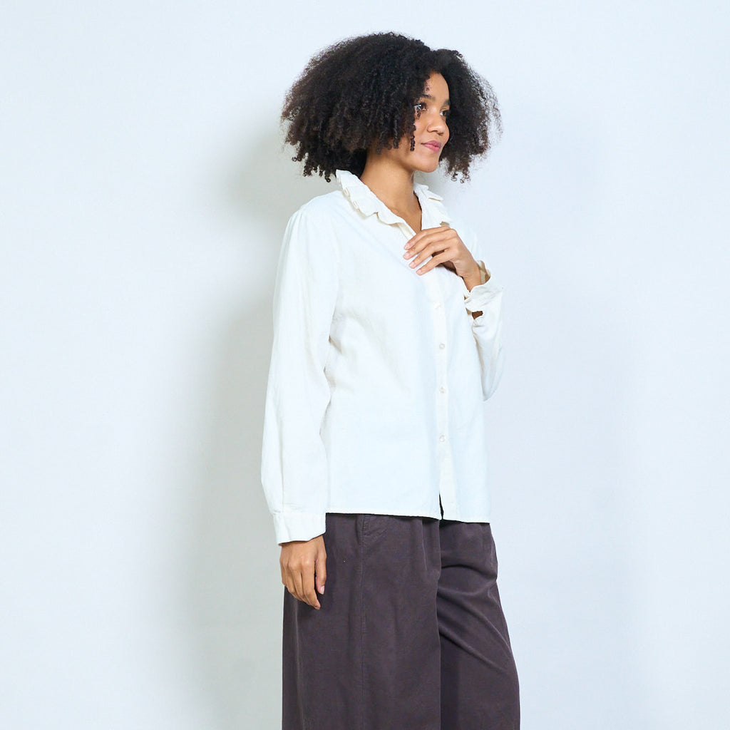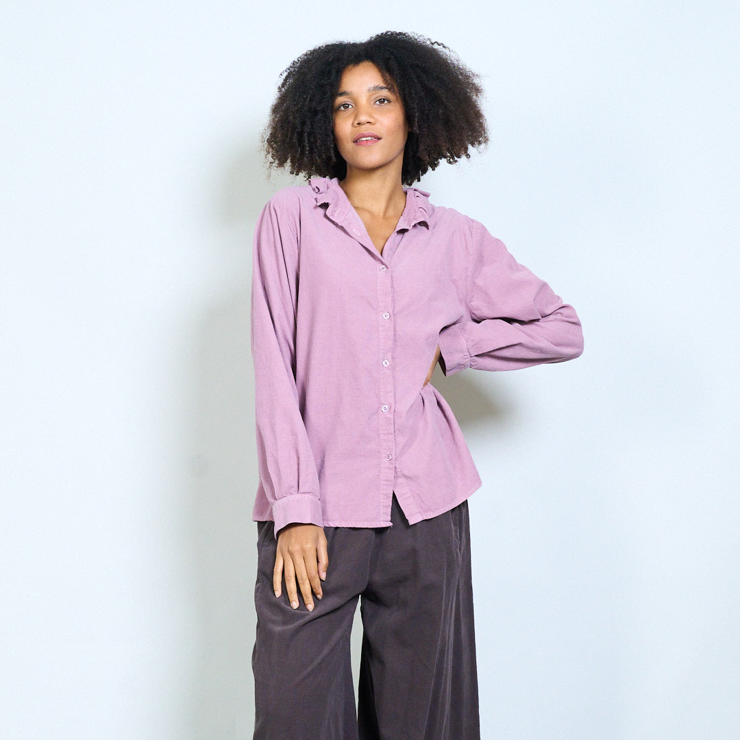 Вельветовая блузка с длинными рукавами и воротником с рюшами на пуговицах оптом